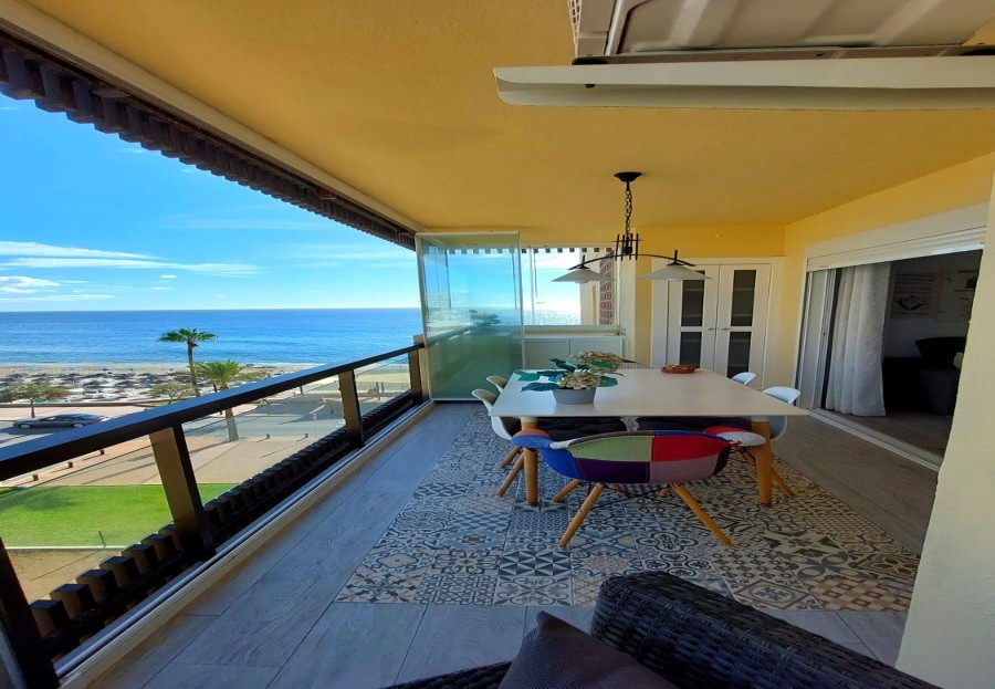 Luxury front line beach flat in Fuengirola. The flat consists of 2 bedrooms, 2 bathrooms, living room kitchen, laundry room, large glazed terrace to enjoy the property both in summer and winter. Absolutely privileged location, with incredible panoramic sea views. Ideal as a retirement home, or as an investment. Unique opportunity to have a real estate asset in one of the safest areas on the Costa del Sol. Fuengirola is a generally flat municipality, with a unique climate and an enviable quality of life. Do not hesitate to contact us to visit this property.