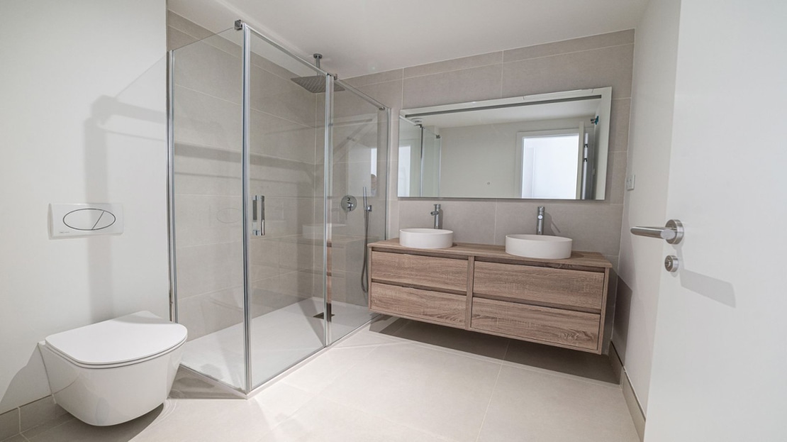 Discover the essence of modern living in this brand-new two-bedroom, two-bathroom apartment, perfectly located in a prime area. Designed for comfort and style, the spacious living area flows seamlessly into an open-plan kitchen, ideal for entertaining. The expansive terrace invites you to bask in the afternoon and evening sun. Centralized AC and underfloor heating in the bathrooms ensure year-round comfort.