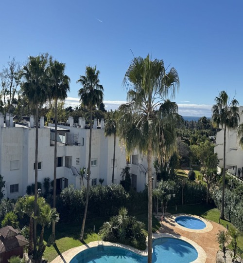 Beautiful apartment, recently refurbished, ready to move into. It is a first floor, south facing, with lovely open views to the beautiful communal garden. The living room, of 50 meters, has a large dining area, as well as living area, with fireplace, surround light system, with access to a bright terrace, about 40 meters, partially covered, which serves as a second living room. The kitchen is fully equipped with laundry area. The flat has 2 bedrooms, very spacious, with two complete bathrooms en suite. The urbanization where is located, is one of the most demanded and exclusive in the area of Guadalmina Baja. It has large gardens, two swimming pools, barbecue area and children's area too. The flat is sold with parking space included.