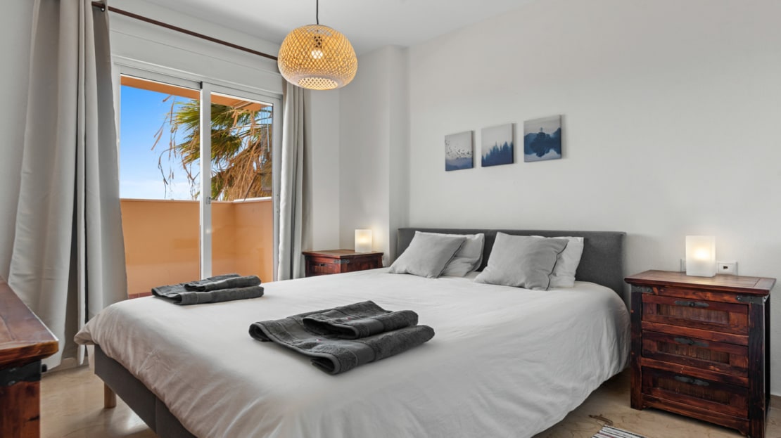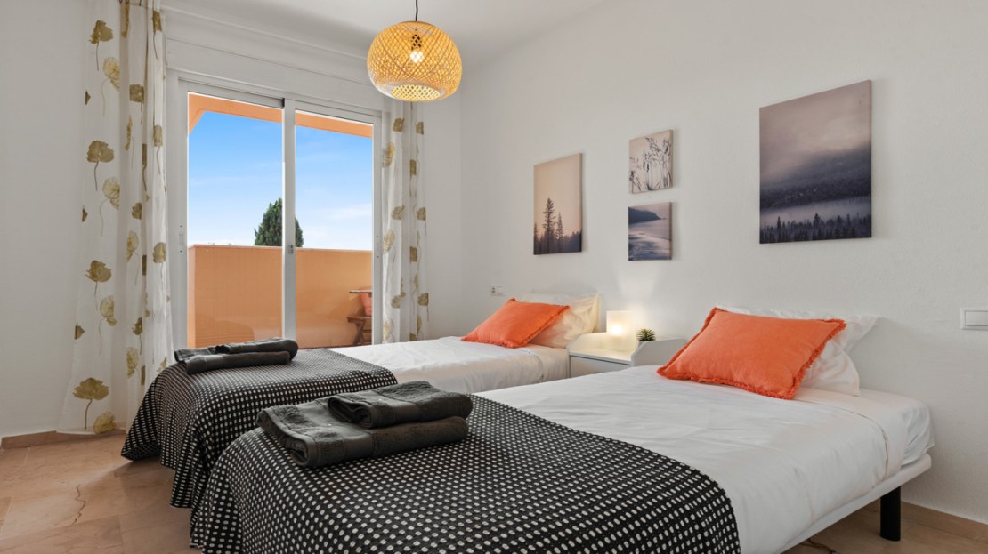 The master bedroom is light and spacious with en suite bathroom, storage and access to the terrace. The second twin bedroom is a good size with good storage and access to the terrace and adjacent to the family bathroom with shower.