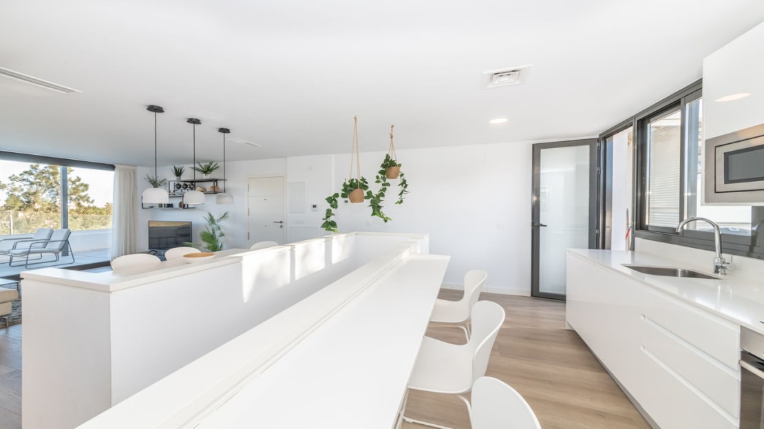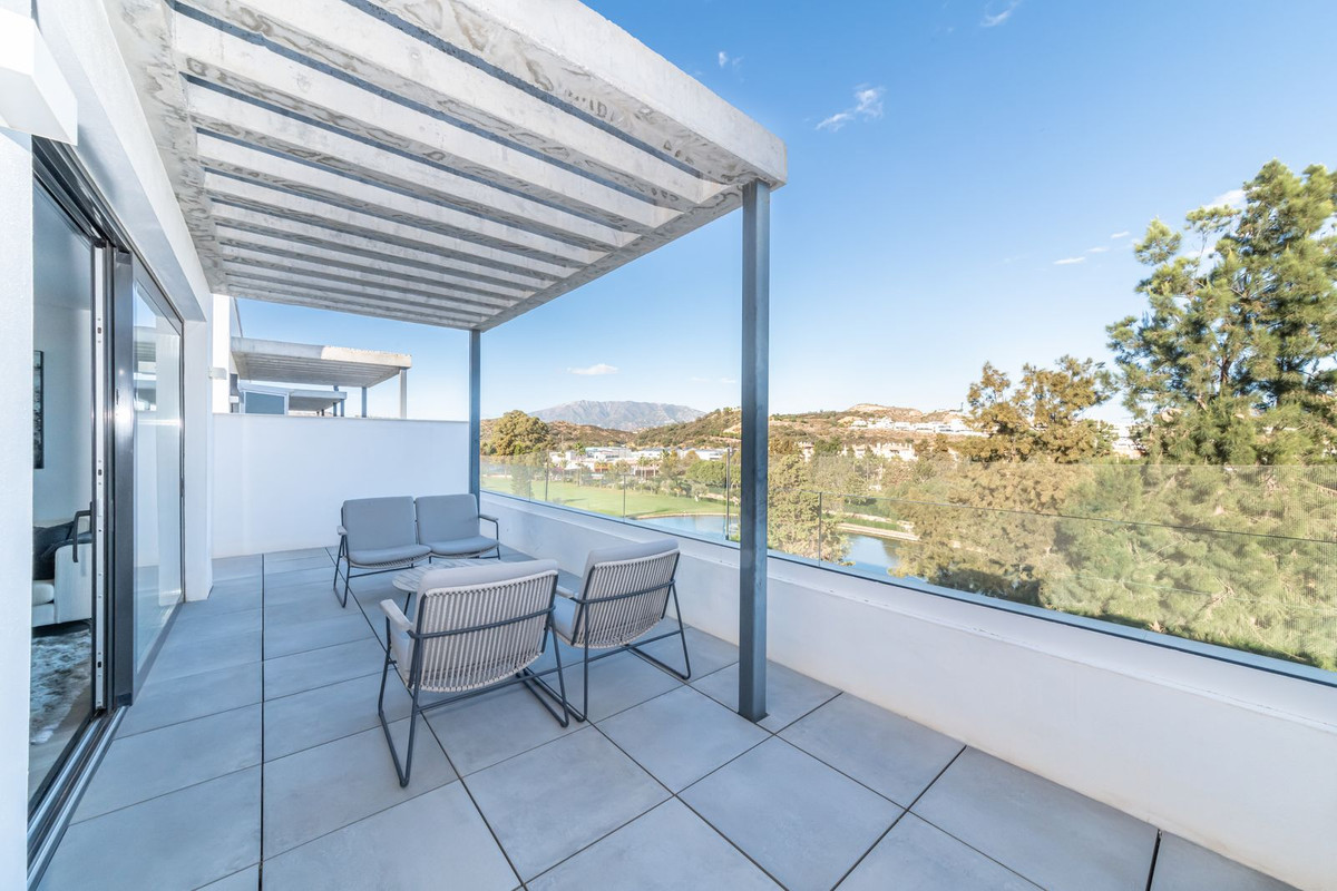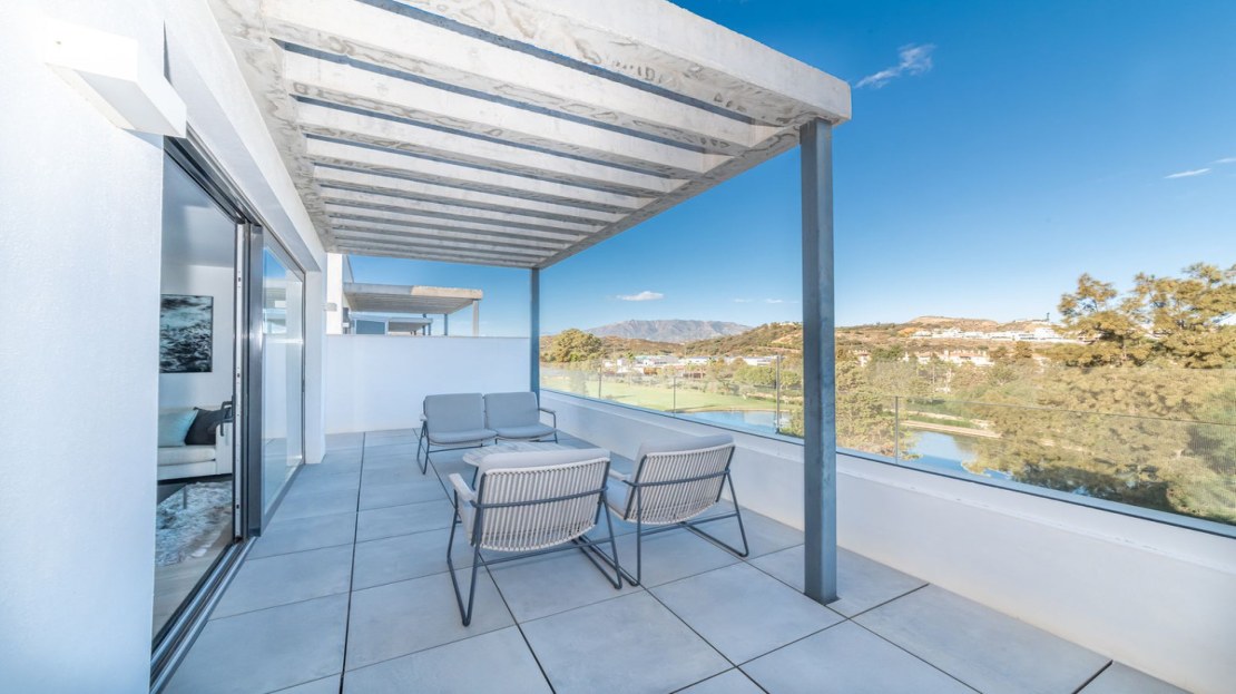 Super bright and modern frontline golf Duplex Penthouse with stunning views over the Lake on La Nuria golf course.