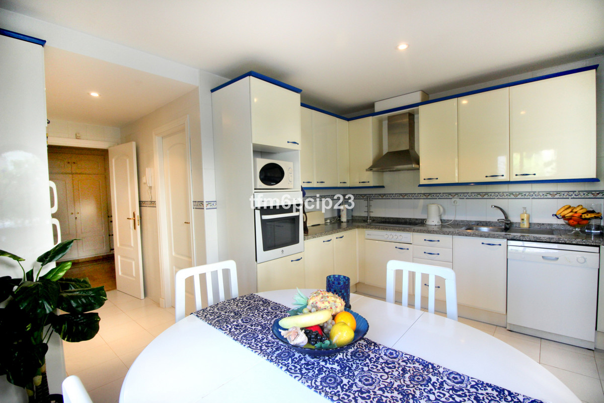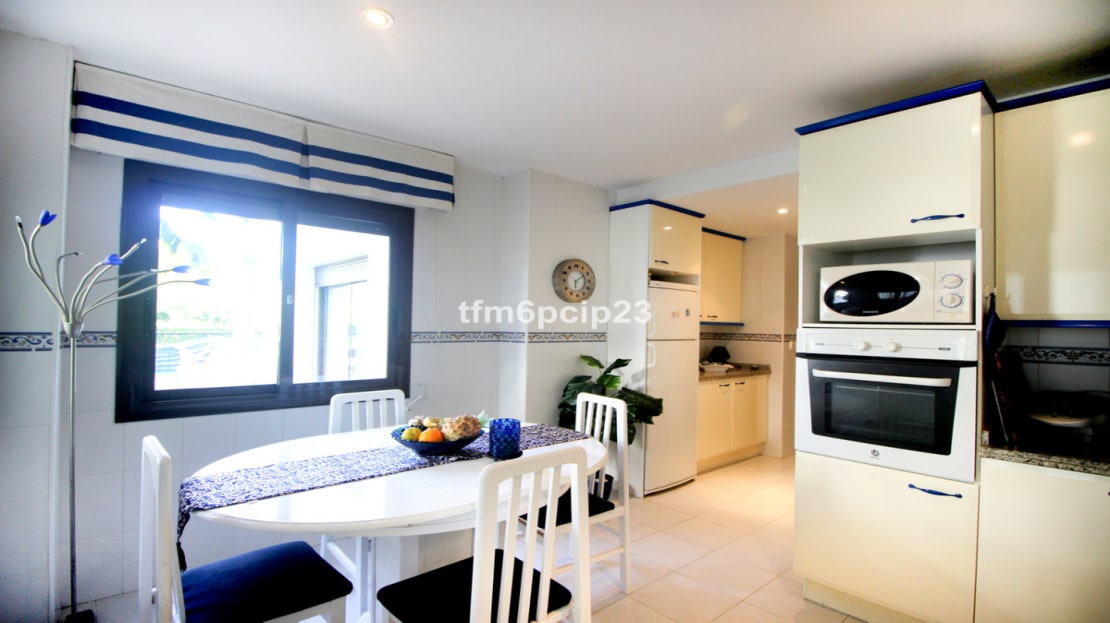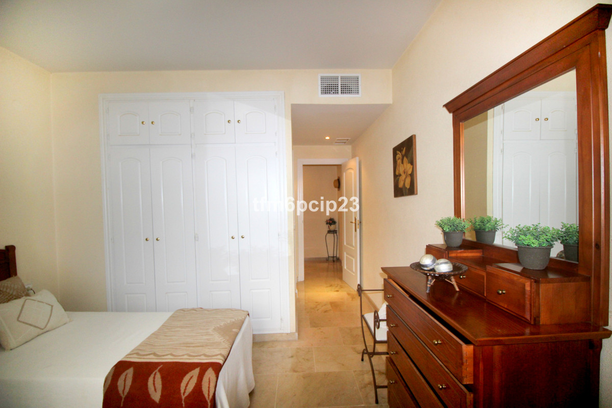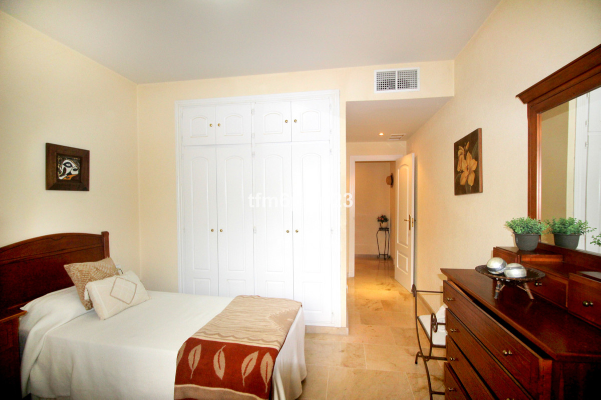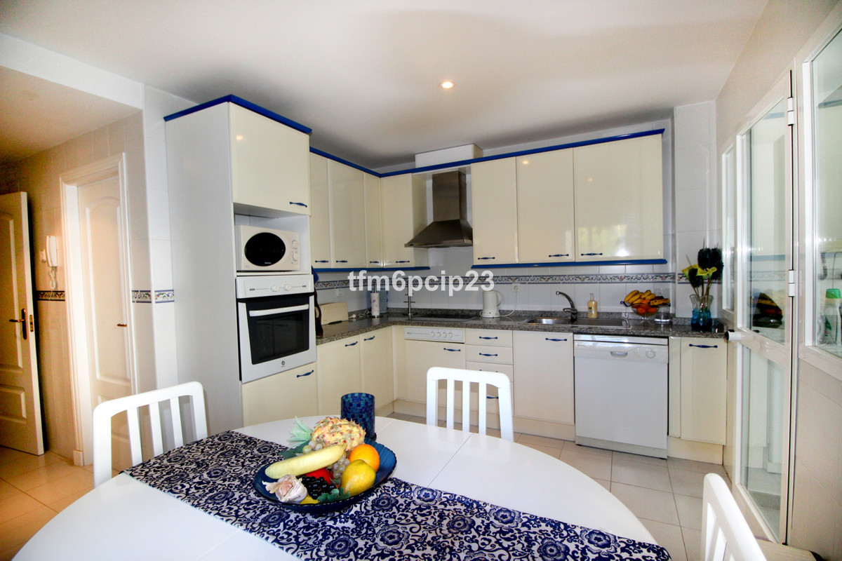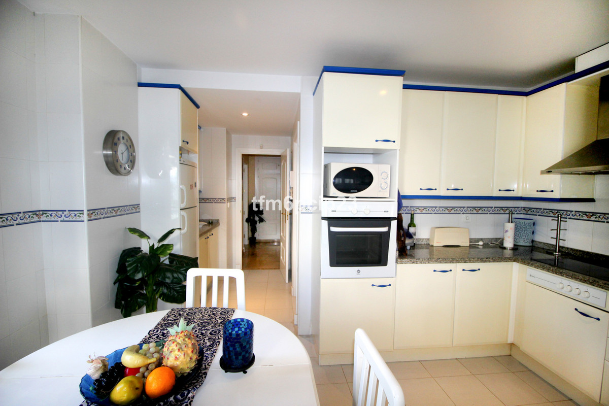 PUERTO DE LA DUQUESA Costa del Sol: 333 days Sunshine. Large ground floor apartment situated close to the port on probably the most sought after developments in the area. LARGE terrace with easy access to the pool. The property is immaculate and used only by the family. LARGE kitchen diner and spacious double bedrooms. Front line beach close to bars, restaurants, nightlife but without the noise. 4 large pools, paddle courts and communal gardens. Private underground garage included. Hig quality furnishings optional.