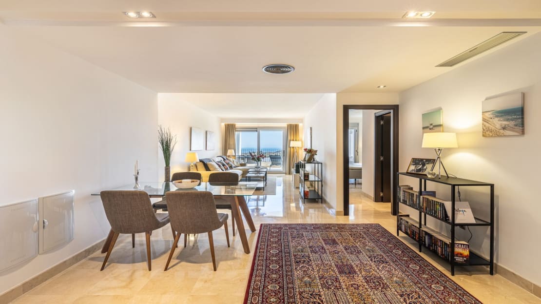 Located in the sought-after area of ​​La Floresta Sur in eastern Marbella, this apartment offers spectacular views of both green areas and the sea. When you step inside, you are immediately greeted by the striking view, which gives a feeling of space and light. The apartment has a modern, open floor plan where the kitchen and living room flow together in a natural way.