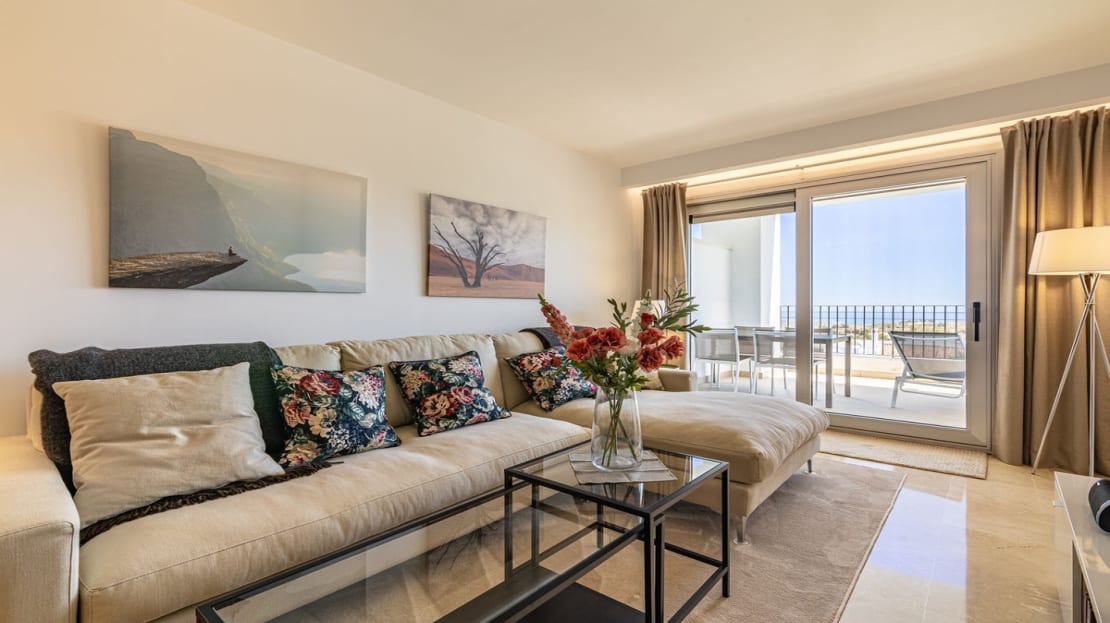 The home has two spacious bedrooms and two bathrooms. From both the living room and the one bedroom you have direct access to the generous balcony where you can enjoy the view and the quiet surroundings.