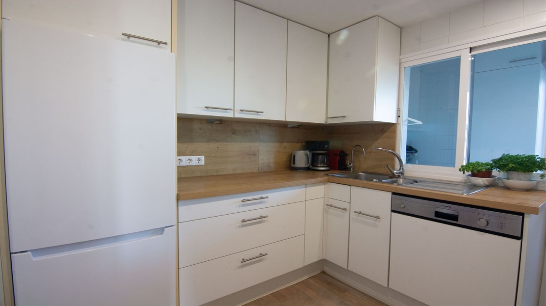 The built area is 122m² with an additional 78m² of terrace. This refurbished apartment includes , 2 bathrooms, a kitchen, new air-conditioning/heating, fiber optic internet, and many other features.
