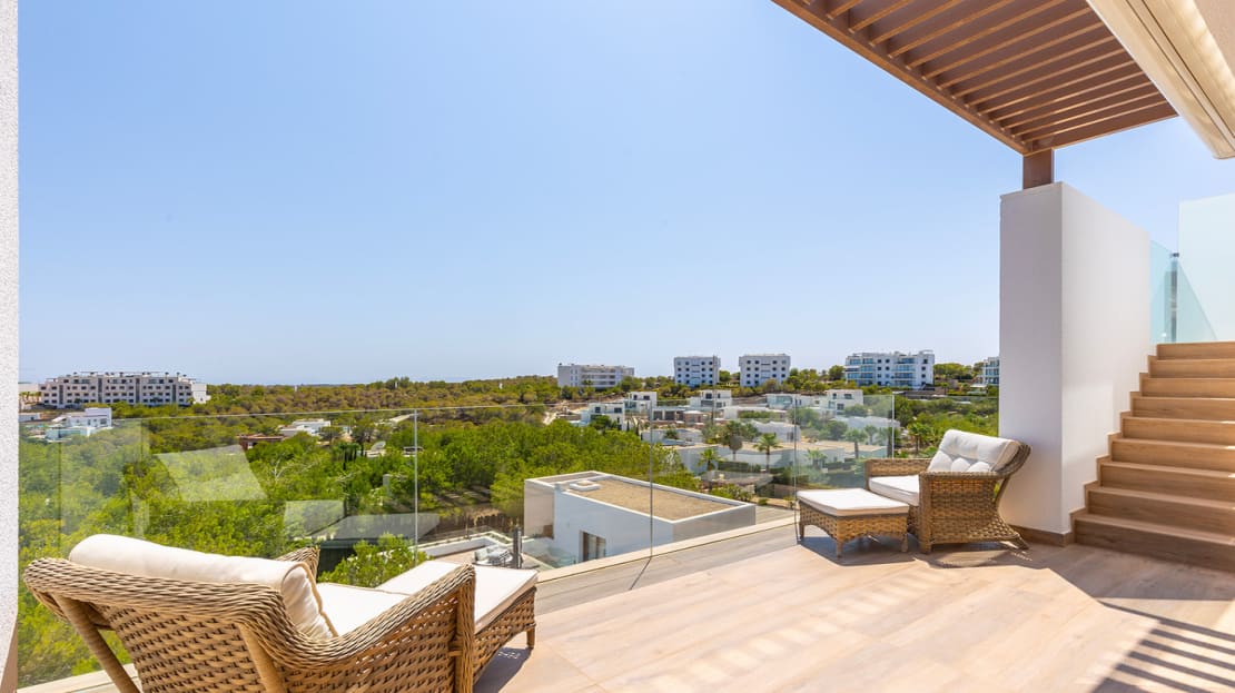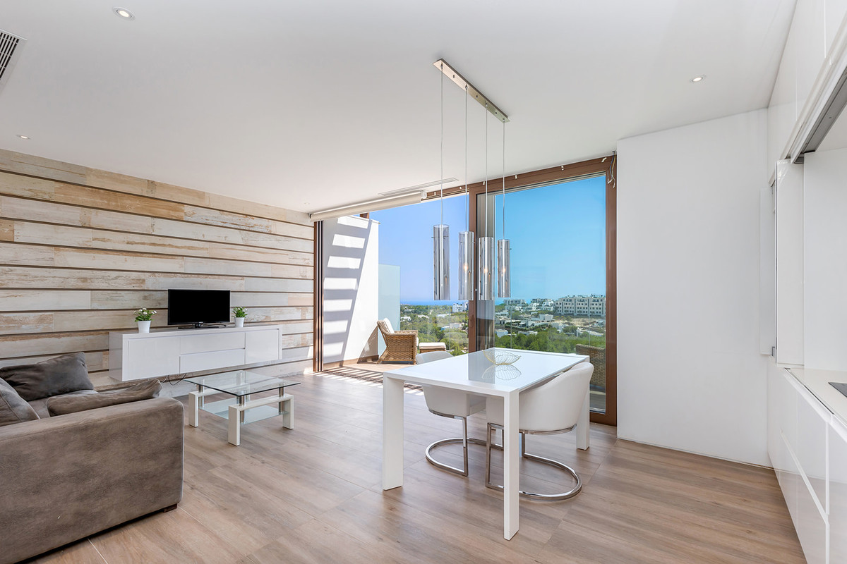 Luxury penthouse in Las Colinas Golf. This stunning top floor apartment offers a spacious living-dining room and open kitchen, fully equipped with appliances along with a terrace overlooking the communal pool and green areas. The property has two bright bedrooms and a private solarium with open kitchen. Included in the apartment comes a parking space and a private storage room in the basement.
