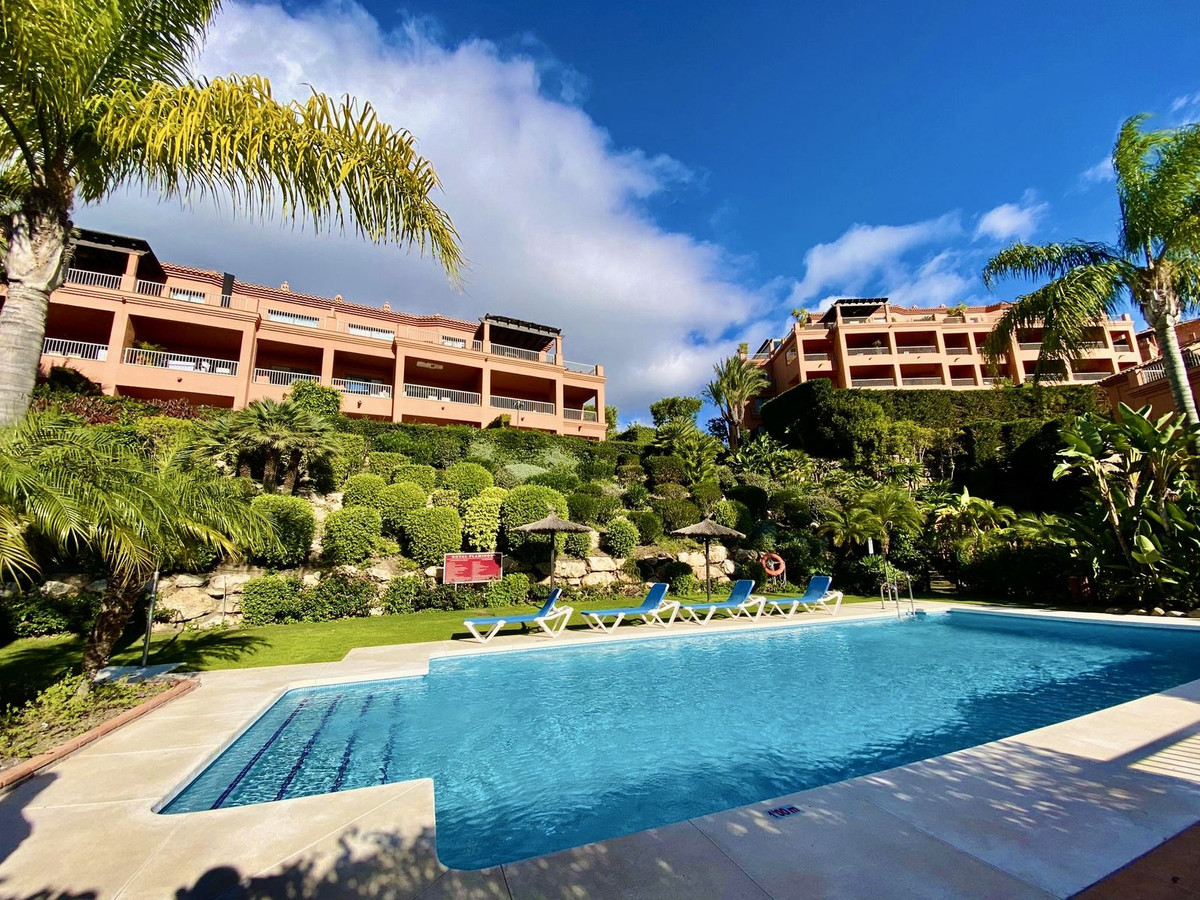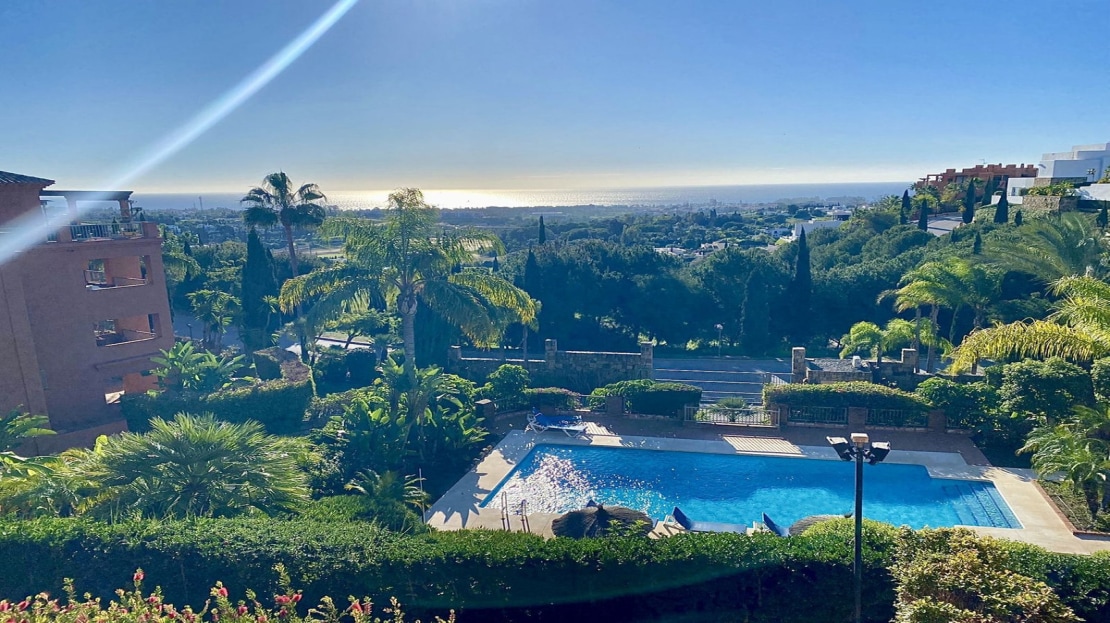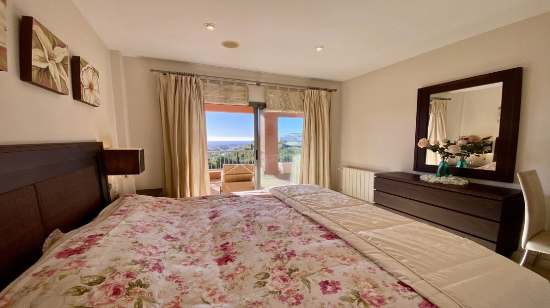 This beautiful apartment boasts breathtaking views of the sea and golf courses. Located in the exclusive Royal Flamingos community, next to the 5-star Villa Padierna Hotel, it features a master bedroom with an en-suite bathroom, a second bedroom with a separate bathroom, and a fully equipped kitchen with a utility room.