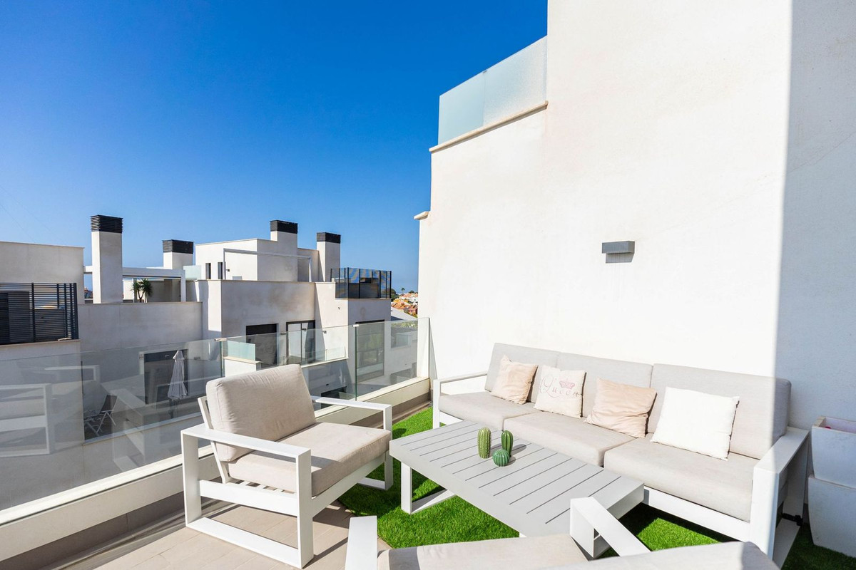 The residential complex boasts exceptional communal areas, including a swimming pool, landscaped gardens, and a comprehensive security system for your peace of mind. Its unbeatable location places you just minutes from a shopping center and sports facilities, with quick access to the motorway, providing excellent connectivity to Málaga and the entire Costa del Sol.
