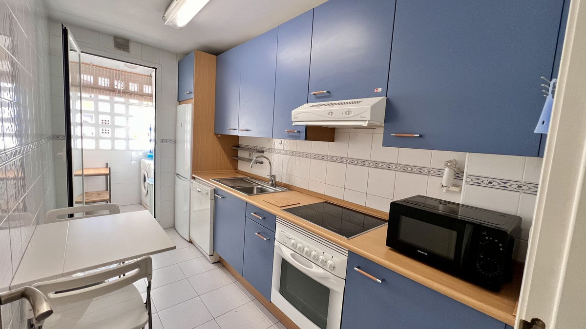 The apartment features two bedrooms, one of them en-suite, and two full bathrooms. The spacious living room opens onto a beautiful terrace with sea views, creating the ideal spot for unwinding. The well-designed kitchen is both functional and efficiently laid out.