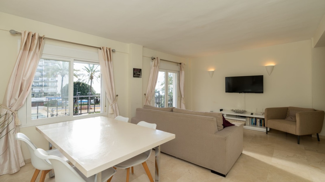This beautifully presented 2-bedroom, 2-bathroom apartment is located in the heart of the coveted Pinterest Plaza on Avenida del Mar, offering an unbeatable beachfront lifestyle. With breathtaking views of the promenade and the sparkling sea, this property is the epitome of coastal living.