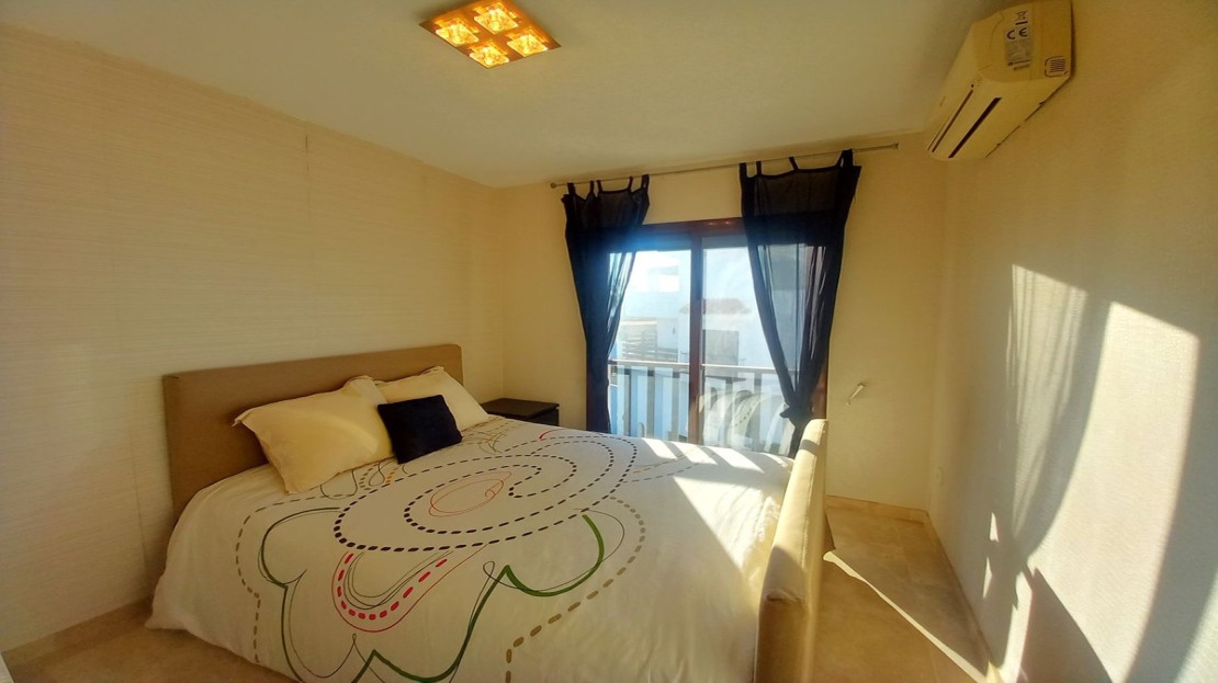 The second bedroom is equally welcoming, with fitted wardrobes and access to a separate bathroom. All rooms have reversible hot/cold air conditioning units.