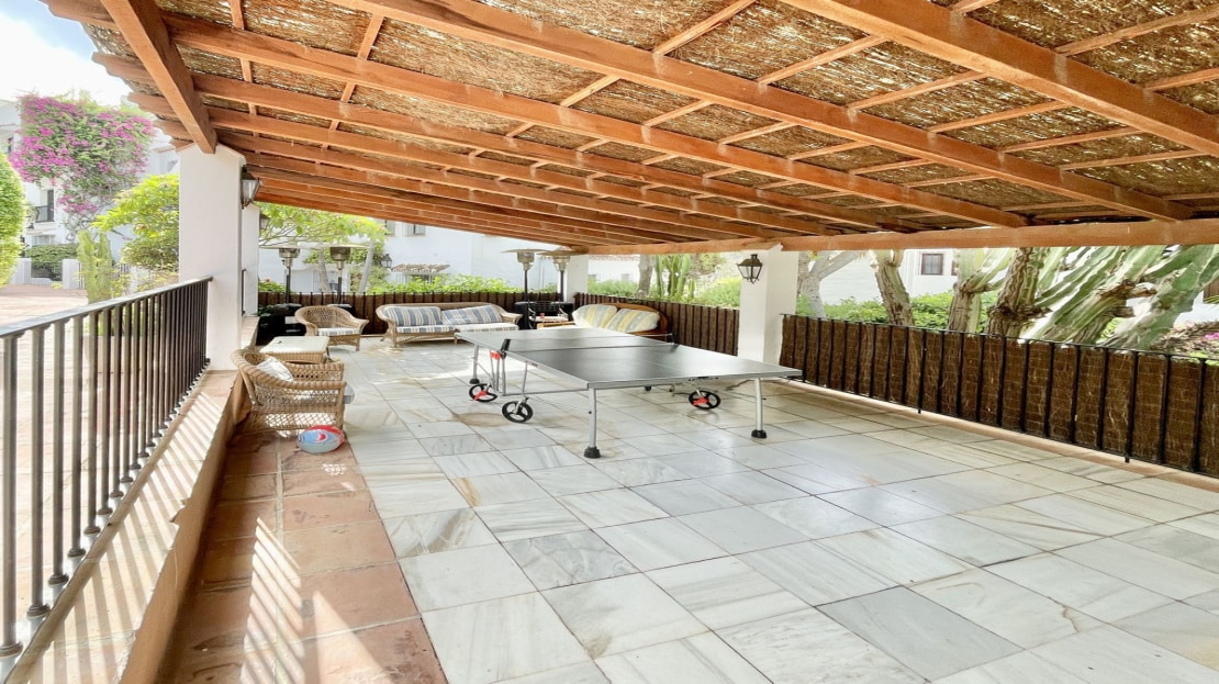 It is an urbanization built in an Andalusian village style, with wonderful gardens and common areas, it has a gym, large swimming pool with solarium area, celebration area with dining room, pingpong table, barbecue, and restaurant next to the pool.