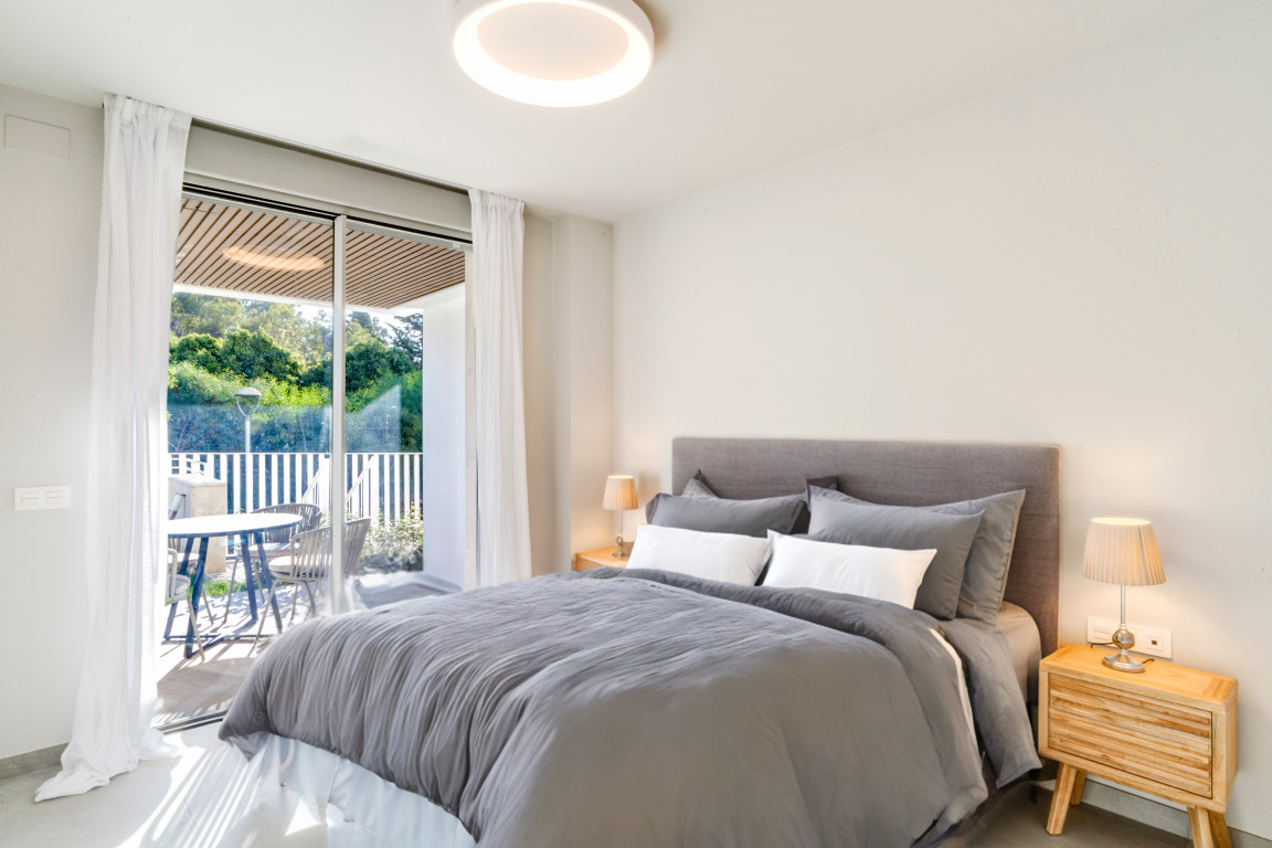 Spectacular two bedroom ground floor apartment in the brand new gated community in Marbella. This beachside community is only 200m from the beach and in a privileged location close to services, leisure facilities, shops and restaurants. The community offers communal swimming pools, a gym and co working area. The property has an open plan living and dining area with access to a private terrace and garden; fully fitted open plan kitchen with laundry area; master suite with access to the terrace; guest bedroom; and a guest bathroom. Other features include a private parking space, storeroom, hot and cold air conditioning, electric blinds and full domotic system.