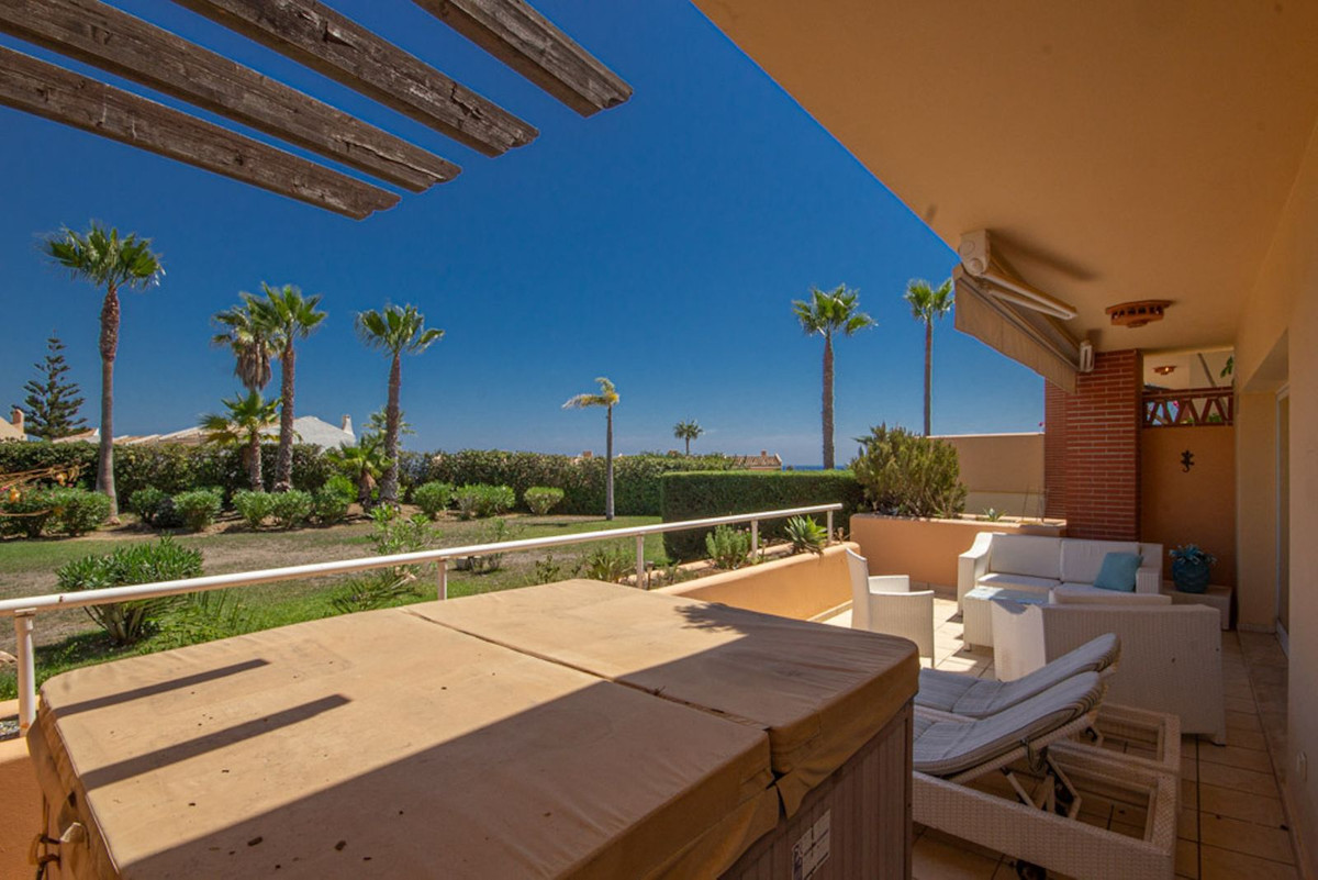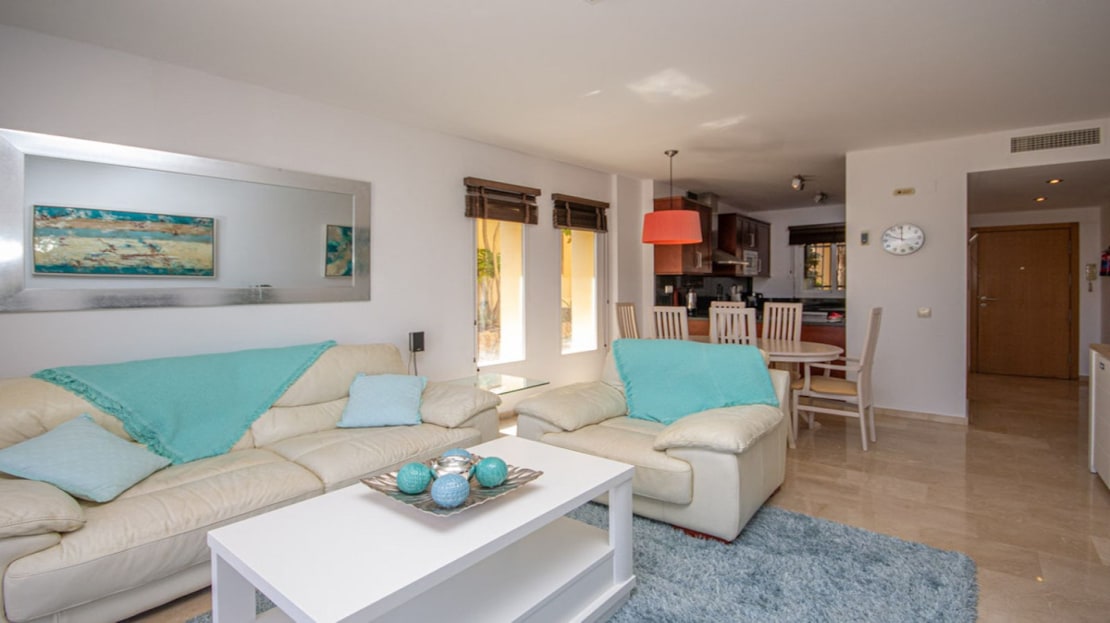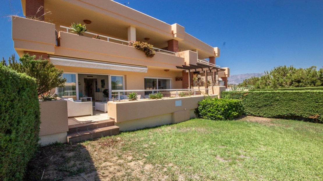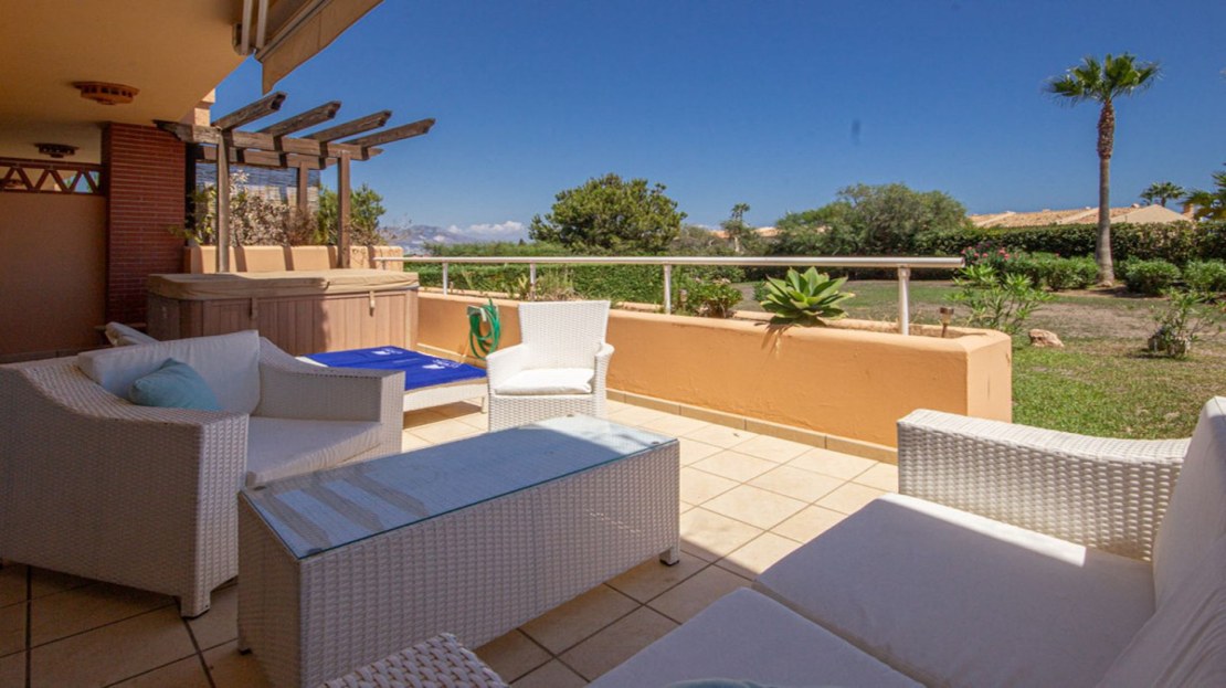 Beautiful bright and large ground floor Apartment in an exclusive and luxurious community offering the best of resort-style living. This stunning 2-bedroom, 2-bathroom apartment spans a spacious 101 m², with an additional large terrace. The terrace, complete with a private Jacuzzi, also provides direct access to the well maintained communal gardens. Being a corner unit, this Apartment has lots of light and privacy.
