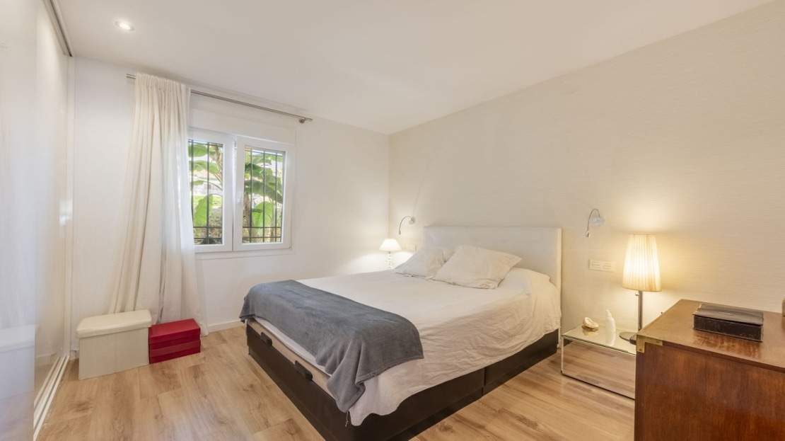 Ground-floor apartment beautifully renovated and located in the prestigious area of Nagüeles, on Marbella's Golden Mile. This exclusive property combines modern design, bright spaces, and a functional layout with 2 bedrooms and 2 bathrooms (main en-suite), an open-plan kitchen, and a living room that opens onto a charming and spacious private terrace, perfect for enjoying the Costa del Sol’s climate. Situated in a community with mature gardens and a pool, it offers a tranquil and elegant setting. Its privileged location ensures proximity to luxury amenities, restaurants, boutiques, the beach, and golf courses. An excellent option both as a permanent residence and as an investment, with high demand and attractive rental yields.