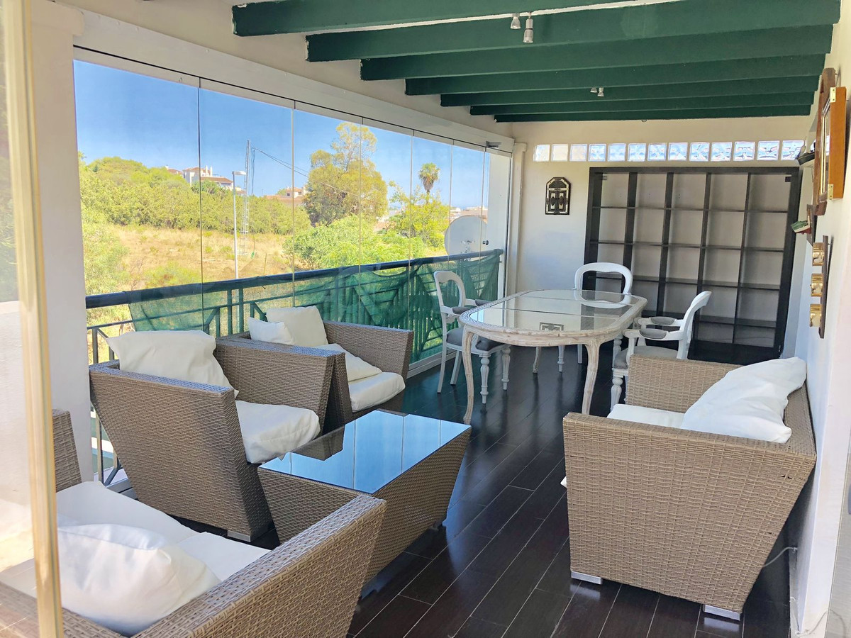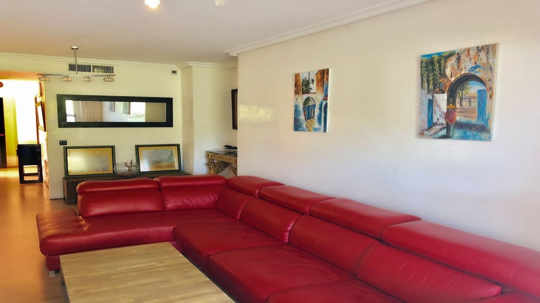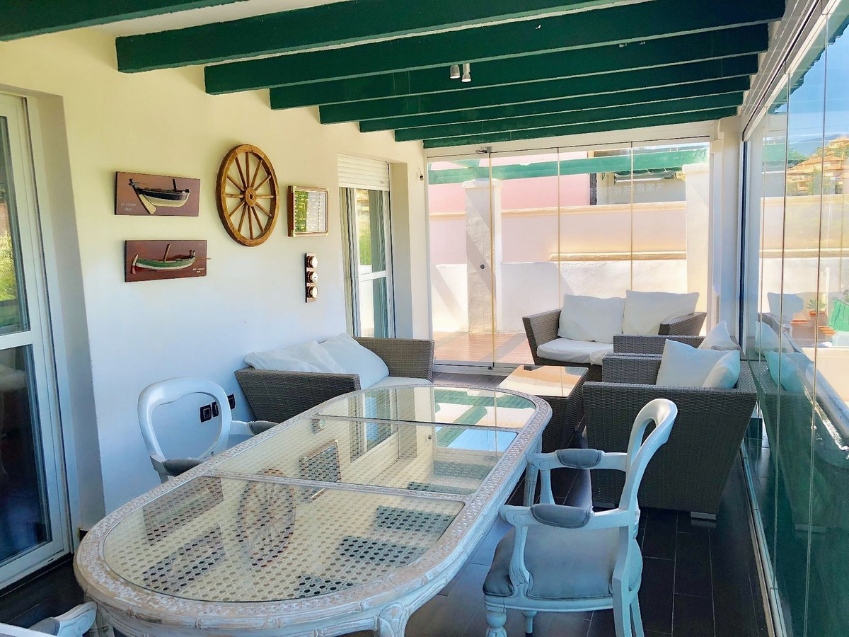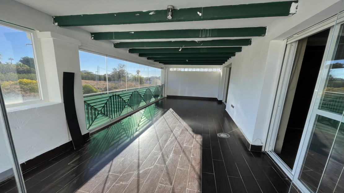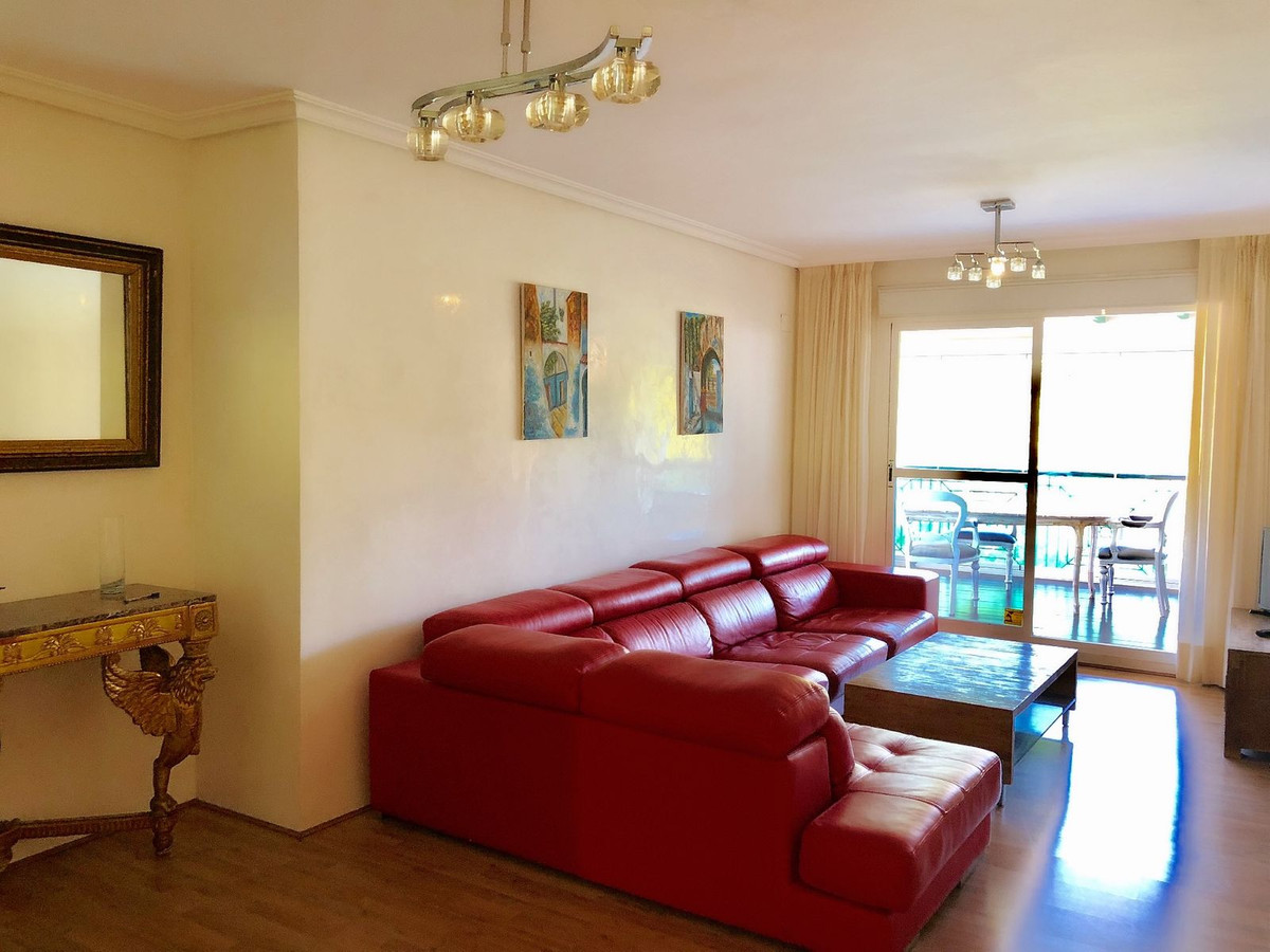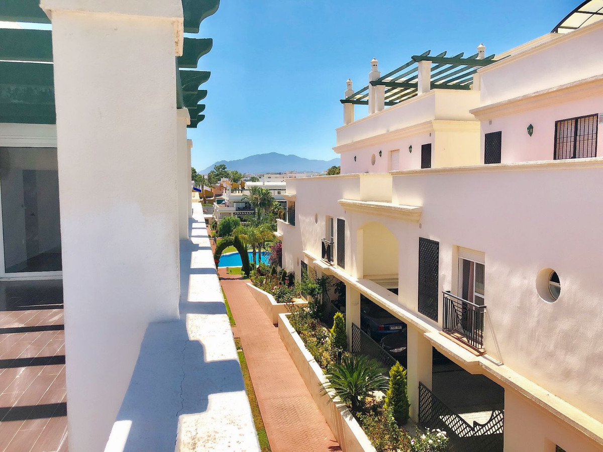 Extra large ample and bright corner apartment in the sought after complex in nueva andalucia just across the road from Puerto Banus. The property has two bedrooms, two bathrooms, living-dining, large kitchen and a full wrap round terrace with views to gardens as well as street. This property offers much potential as is it is corner and larger than the usual two bedroom apartments in the complex, plenty terrace space. Includes alocated garage space inside community just bellow the apartment. The complex has lovely swimming pools and gardens maintained to high standards. Location is superb as you can walk to gym, the beach, restaurants and even has convenient small supermarkets in the neighbourhood. Puerto Banus and the beach at a short walk of 10 minutes away. Schools both public and private less than a 5 minute drive as well as 5 golf courses in the immediate surroundings.