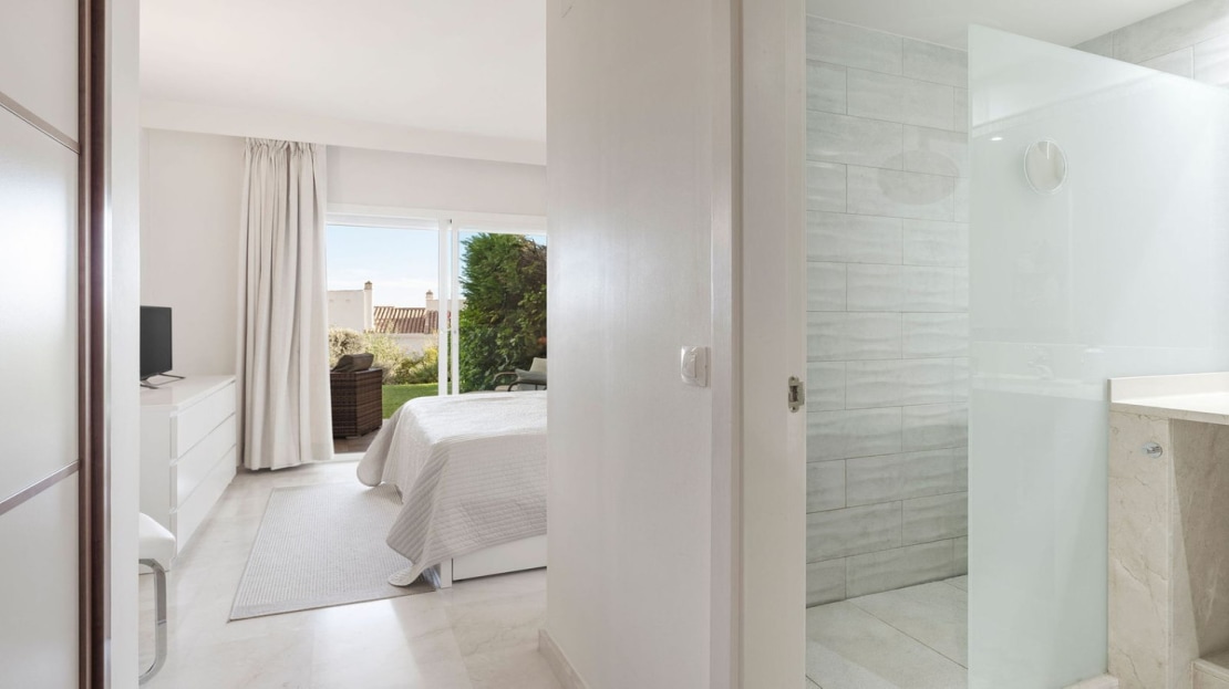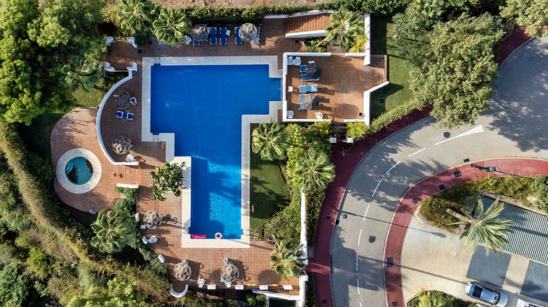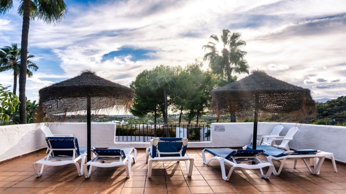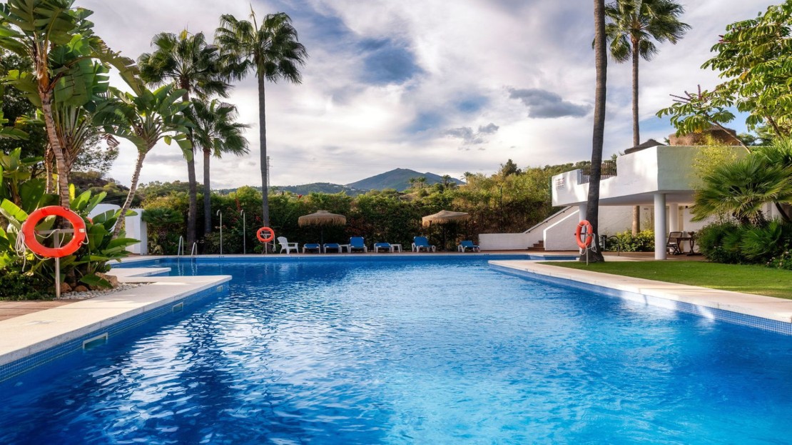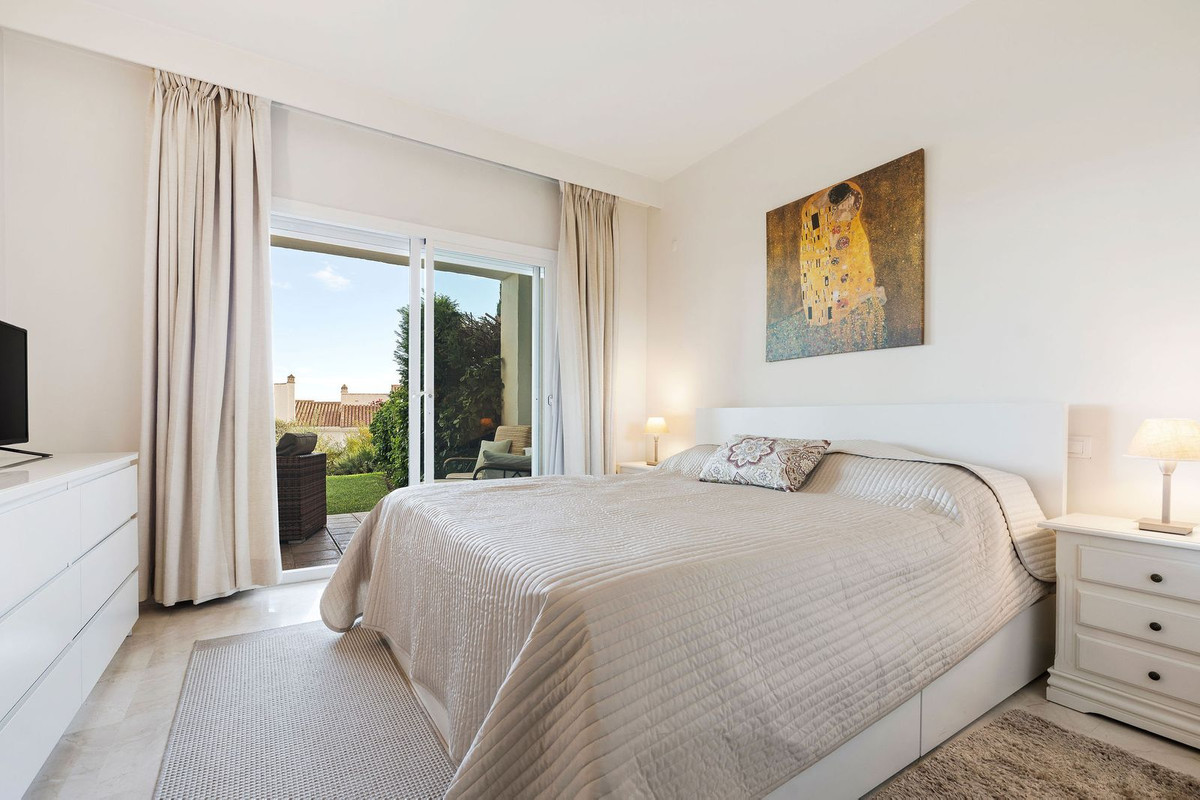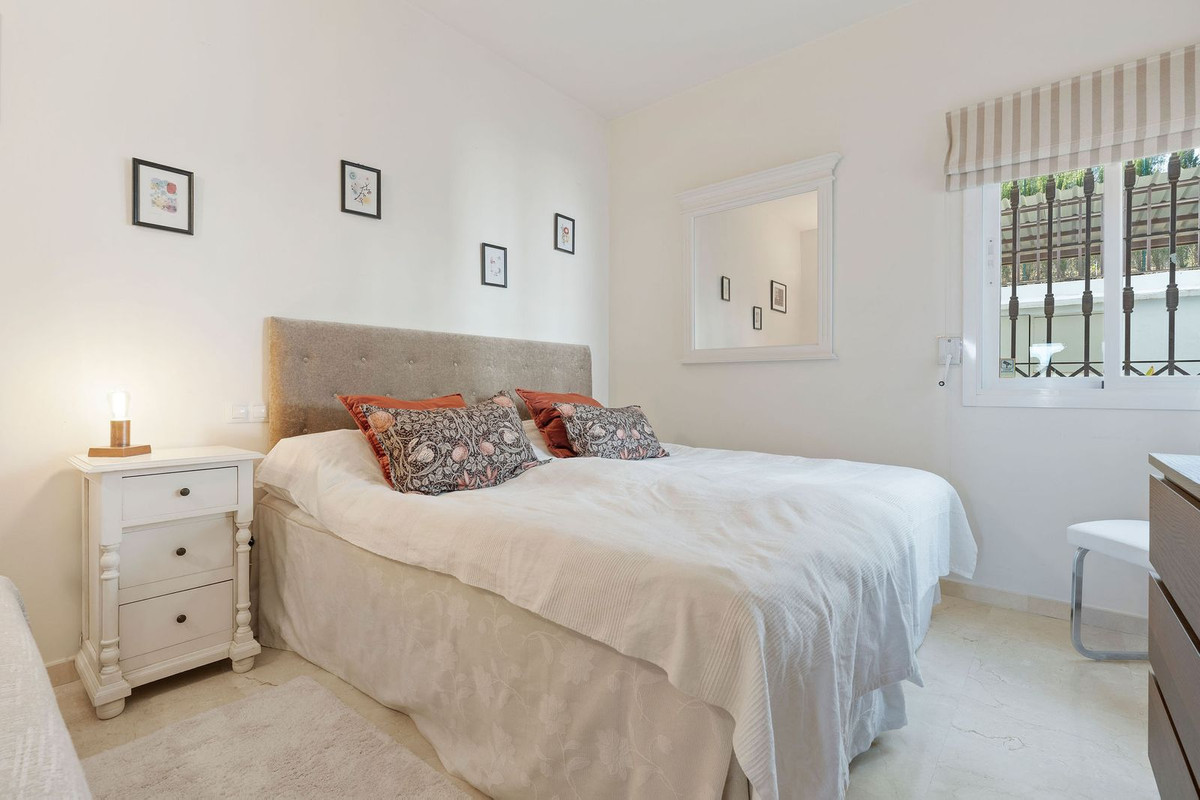 Spacious 2 bedroom ground floor apartment in the popular urbanisation of La Quinta Village. Set in the higher parts of Nueva Andalucia only a few minutes away from Los Naranjos Golf. The spacious layout comprises of 2 bedrooms and 2 bathrooms, the generous sized living and dining room has direct access to the covererd terrace wth sea views as well as a generous garden. Set in a fully gated community you have 2 designated parking spaces just infront of the property. A beautifully well kept communal garden and pool completes this well sized property in a desired area.