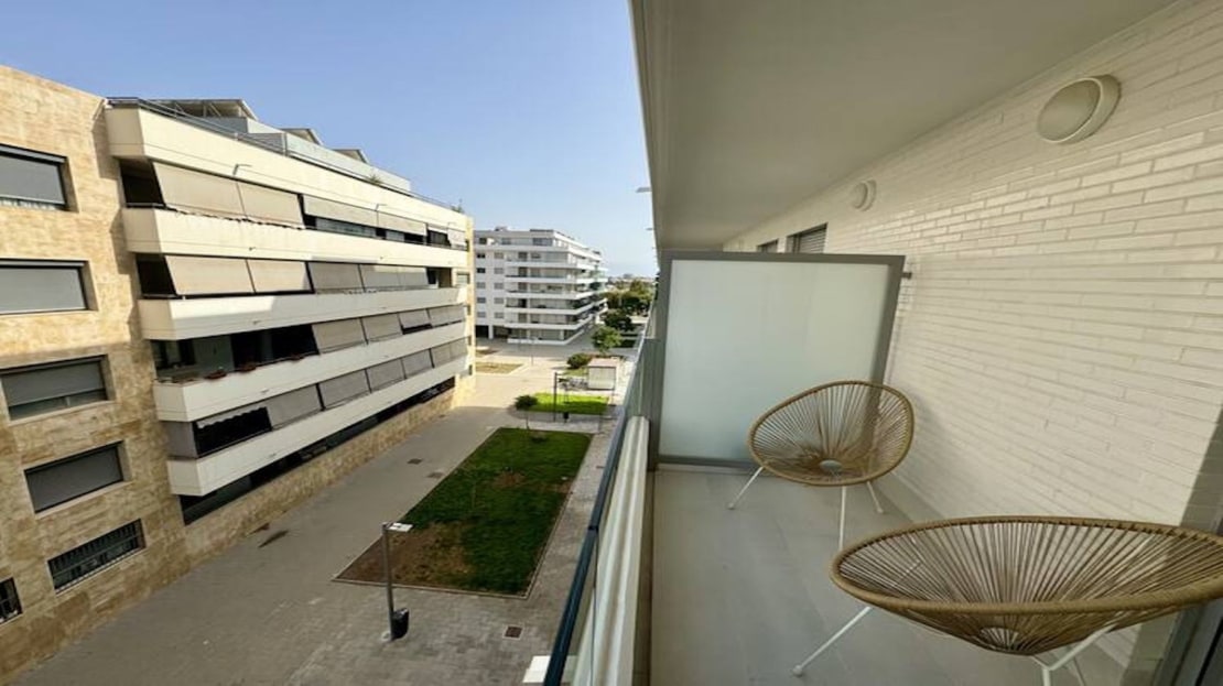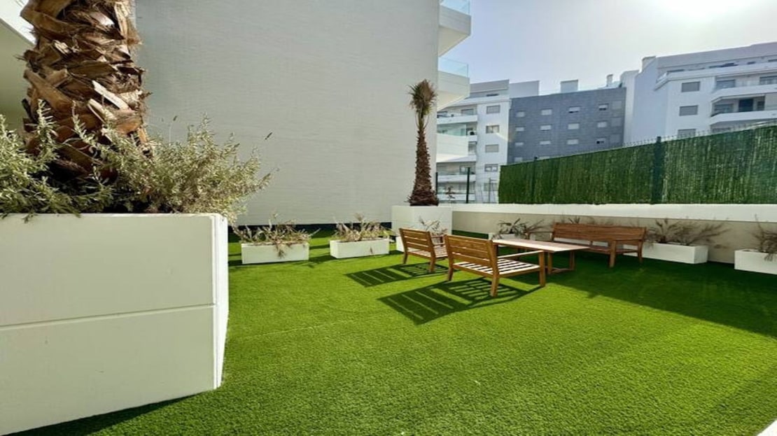 It has two bedrooms, two bathrooms ( one of them onsuite), open kitchen, living room and terraces.