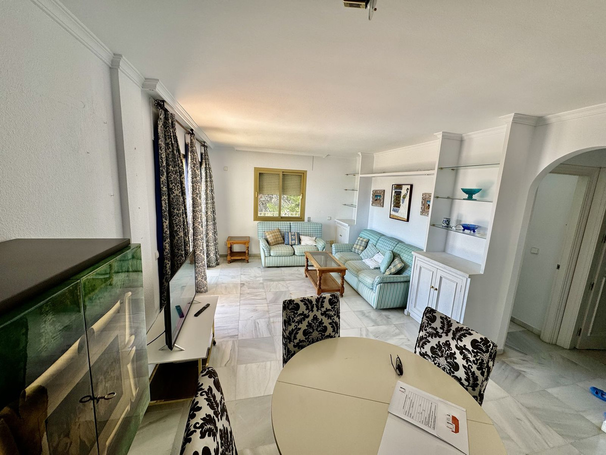 This 2-bedroom apartment in Nueva Andalucía, Marbella, offers a fantastic opportunity to create your ideal living space. Located in a secure gated community, it boasts a peaceful atmosphere thanks to its clever orientation away from the freeway noise. Plus, you're just a 10-minute walk from the heart of Puerto Banús with its shops, restaurants, and nightlife.