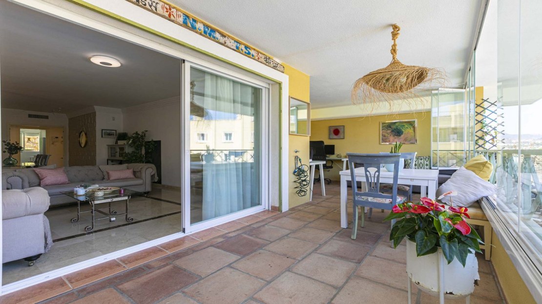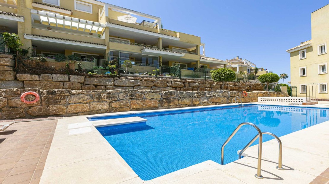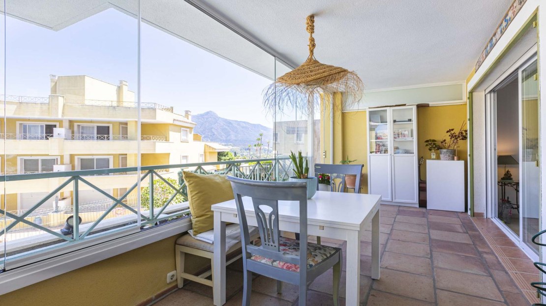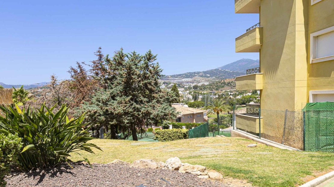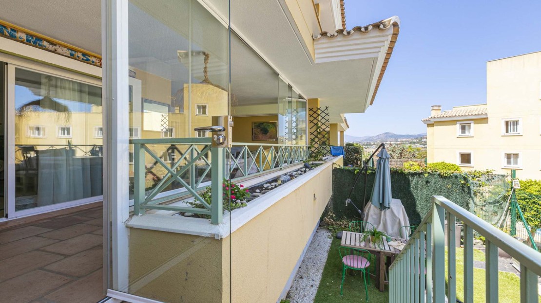 This bright apartment in good condition is surrounded by golf courses and offers mountain and pool views. With 2 large bedrooms with built-in wardrobes, 2 bathrooms, separate kitchen with laundry room and natural light, and a living room with access to a large glazed terrace that can be enjoyed all year round, this place is perfect to relax and enjoy. of outdoor life. In addition, it has a beautiful private garden.