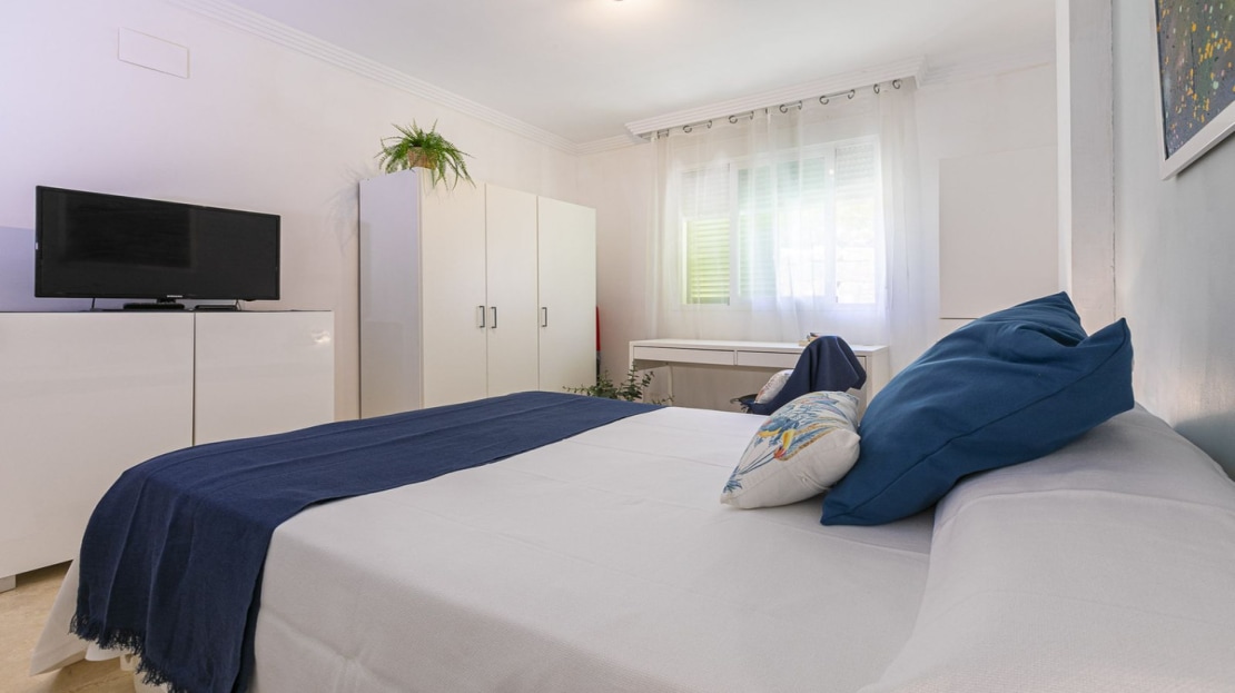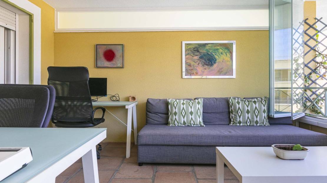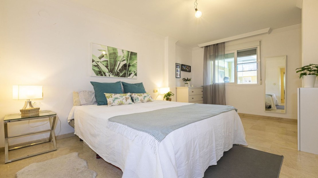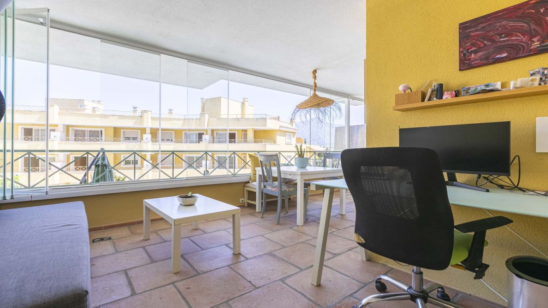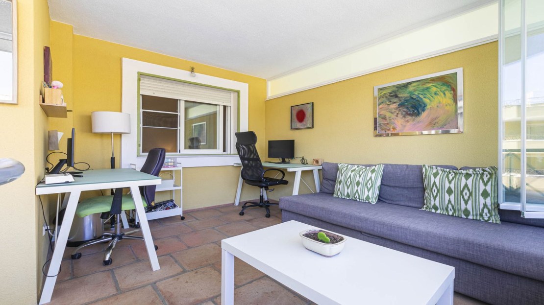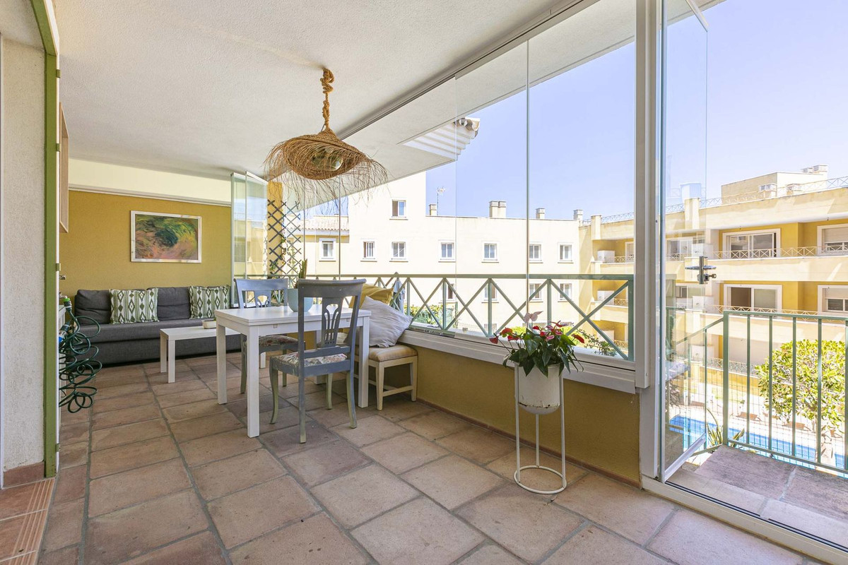 This bright apartment in good condition is surrounded by golf courses and offers mountain and pool views. With 2 large bedrooms with built-in wardrobes, 2 bathrooms, separate kitchen with laundry room and natural light, and a living room with access to a large glazed terrace that can be enjoyed all year round, this place is perfect to relax and enjoy. of outdoor life. In addition, it has a beautiful private garden.