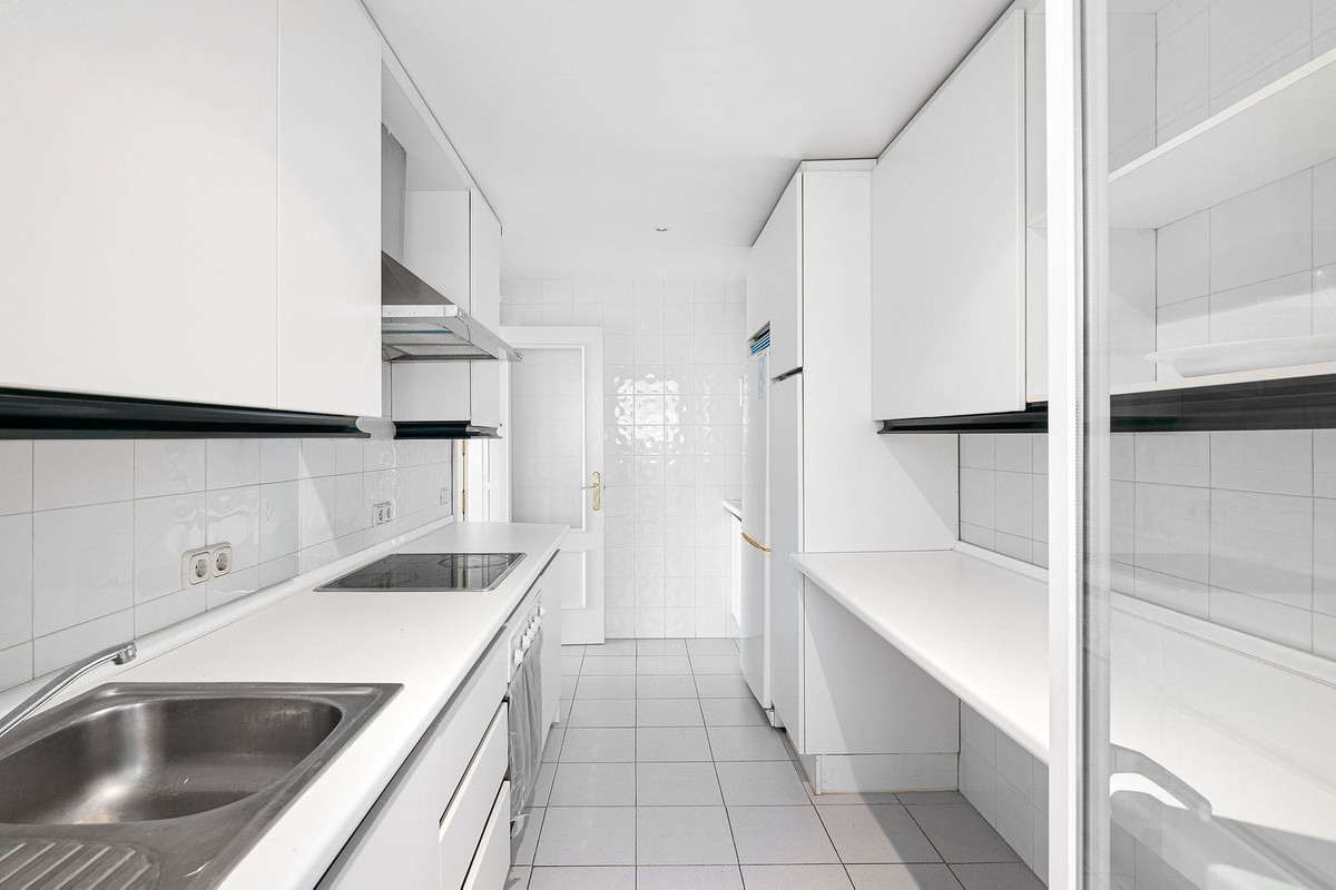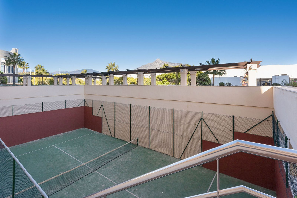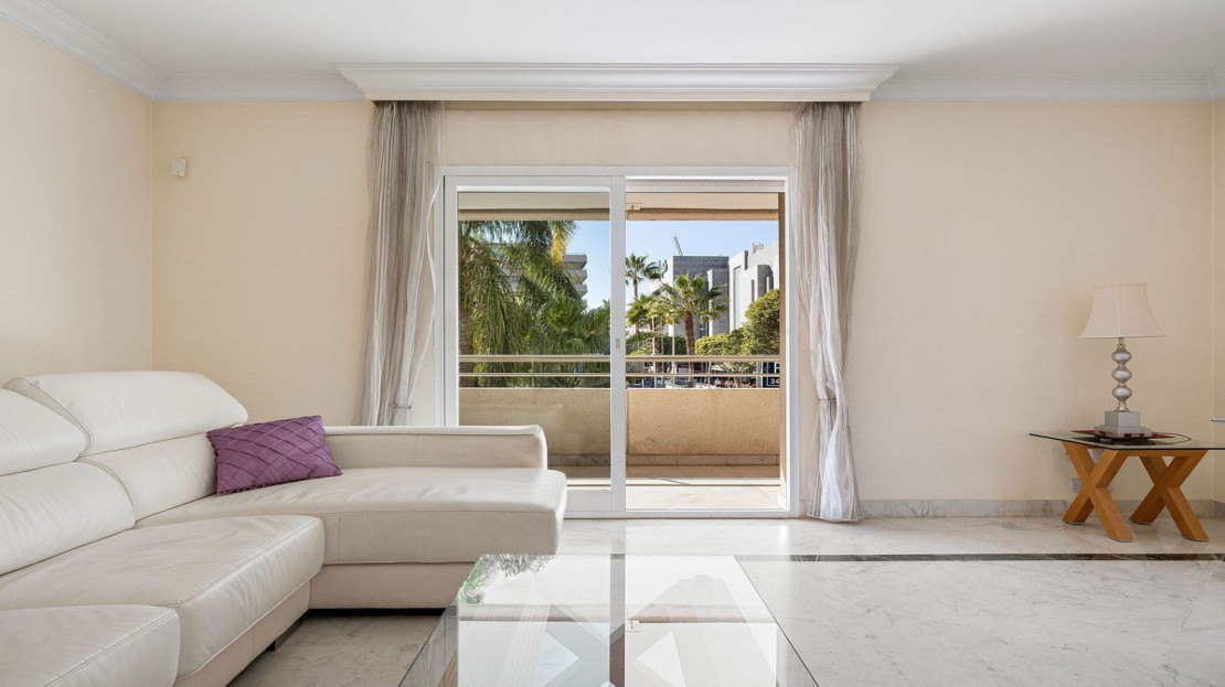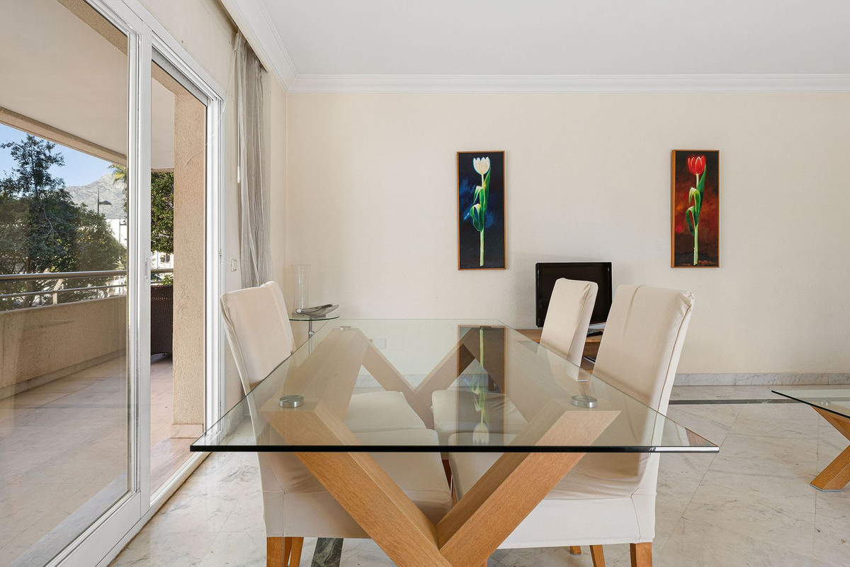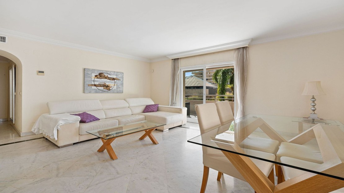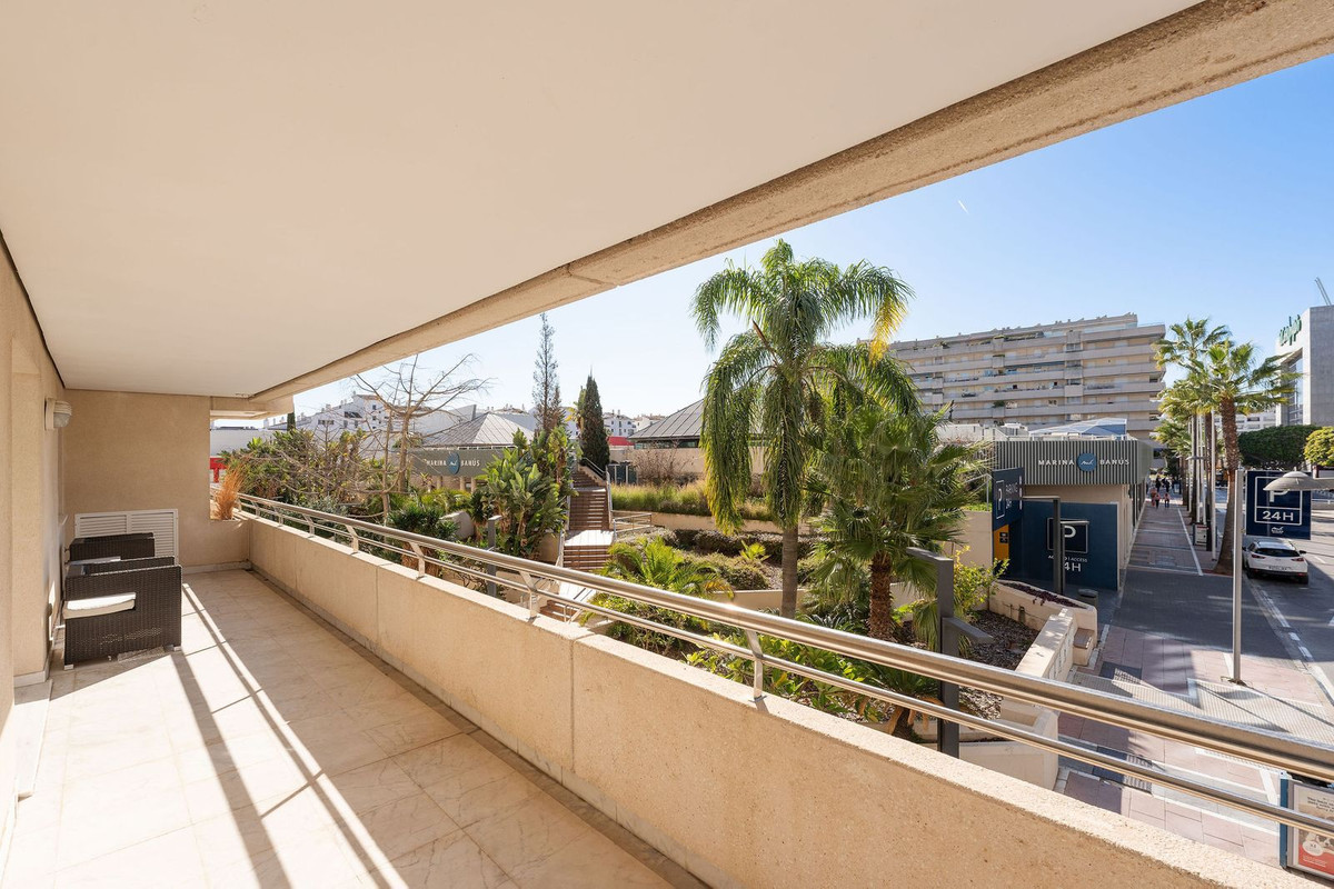Ideally located 2-bedroom, 2-bathroom apartment situated in the popular urbanisation of Marina Banus. Being situated on a corner you have a wraparound terrace and plenty of light. The convenient access to the apartment is either through the garage or pedestrian main entrance. The complex has 24-hour security, a nice communal pool area and a padel court. If you are looking for a centrally located apartment in a safe and well-run community, this is it.