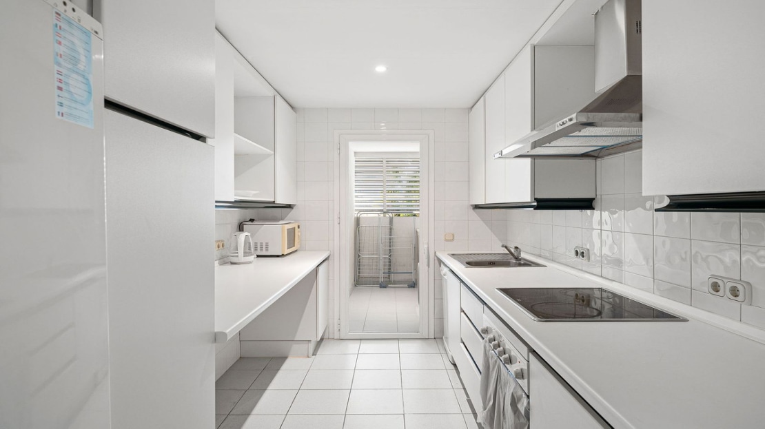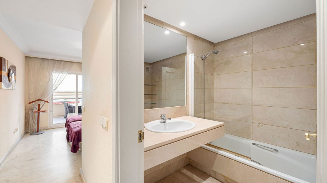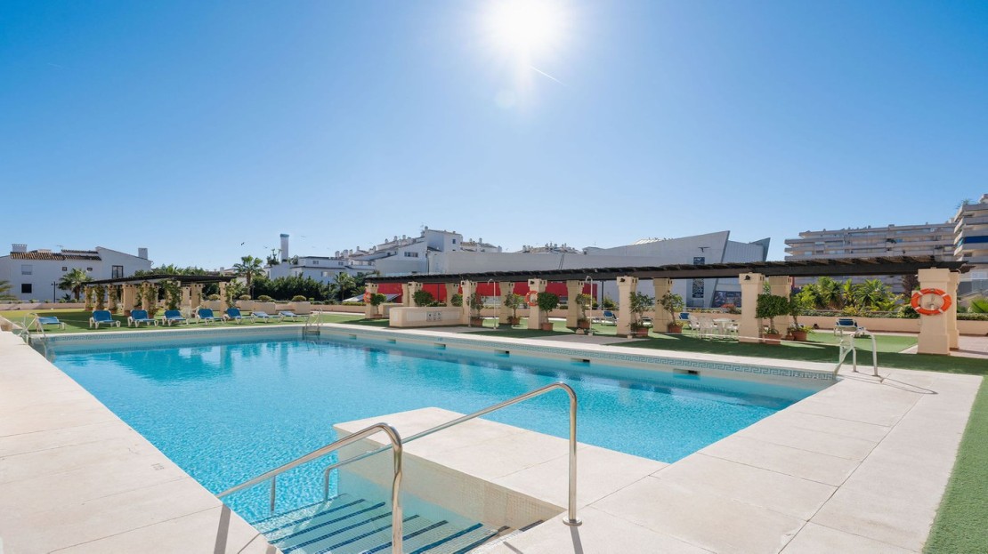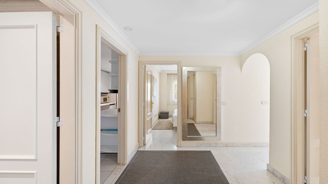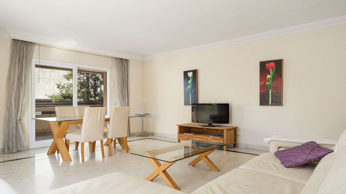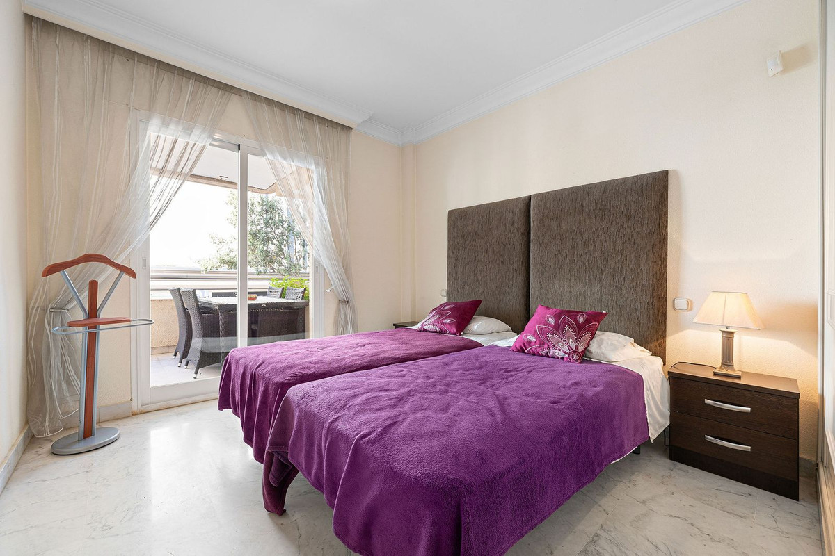 Ideally located 2-bedroom, 2-bathroom apartment situated in the popular urbanisation of Marina Banus. Being situated on a corner you have a wraparound terrace and plenty of light. The convenient access to the apartment is either through the garage or pedestrian main entrance. The complex has 24-hour security, a nice communal pool area and a padel court. If you are looking for a centrally located apartment in a safe and well-run community, this is it.