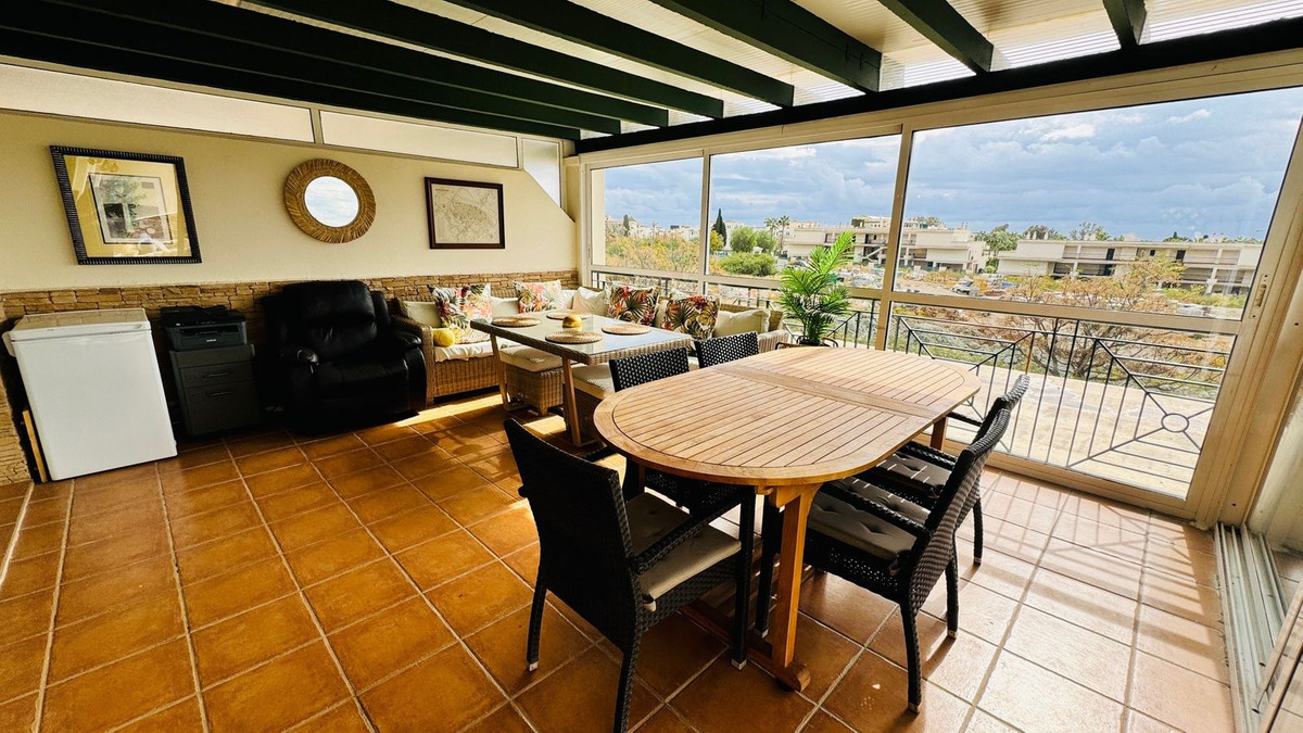 It is in one of the most demanded complexe in the area of Puerto Banus for its beautiful well maintained gardens and superb large pools. The apartment features a 50 m terrace, of which 25m have been closed with glass curtains to create an extention to the salon/dining area. The other 25 m have been left open to create a space for barbecue parties and relaxing days in the sun.