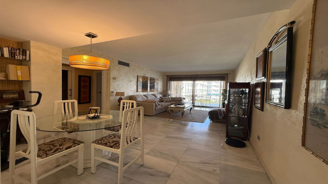 Situated within the sought-after Jardines del Puerto development, this property is surrounded by lush tropical gardens, four swimming pools, and a paddle tennis court, offering an oasis of tranquility in one of the most vibrant areas of Marbella.