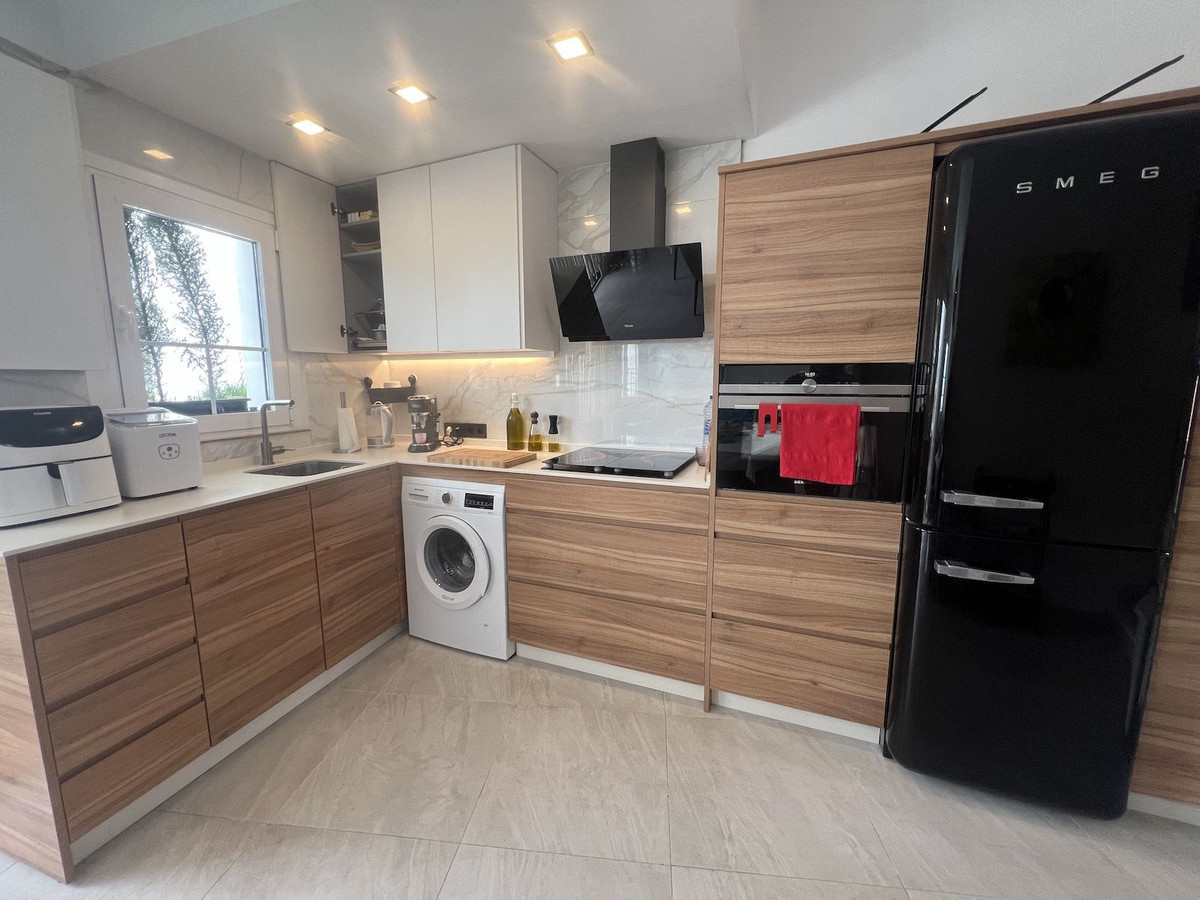 The apartment has been recently renovated, with a modern and fully equipped kitchen.