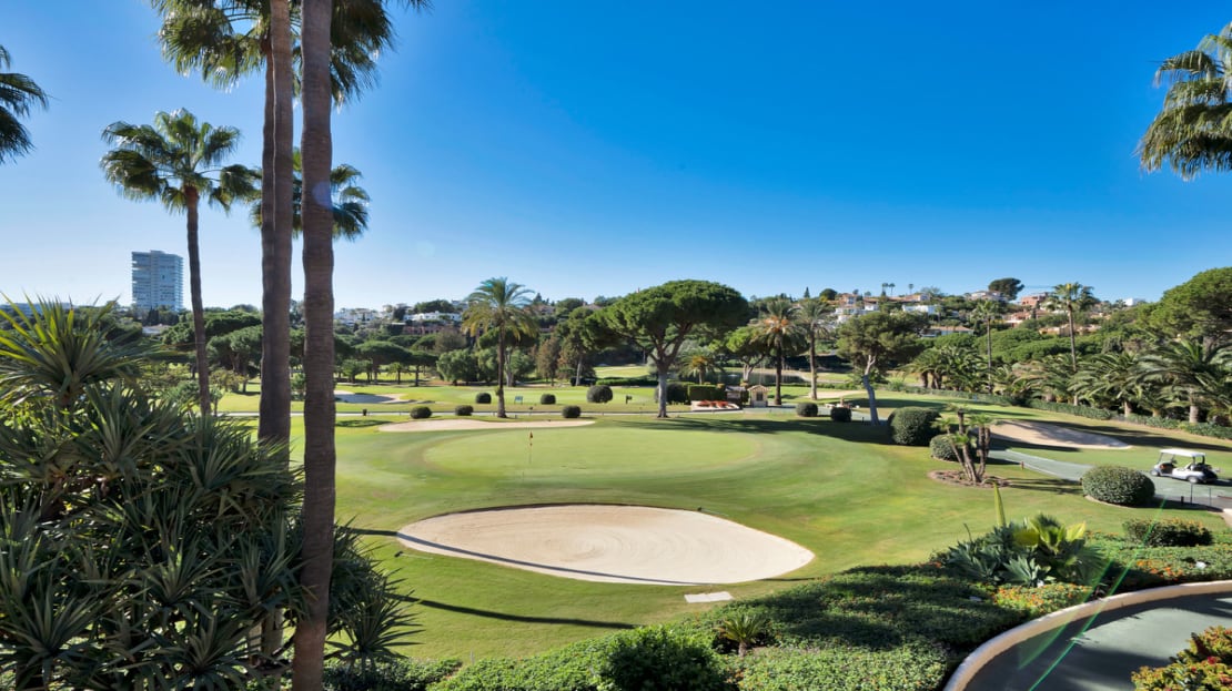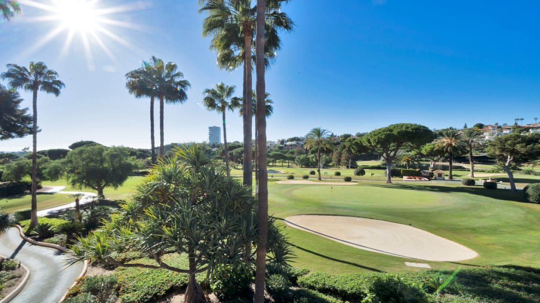 It also has a beautiful south facing terrace, where you can enjoy a wonderful peacefulness, privacy, and panoramic views of the golf course, making the best use of the sun all day long.