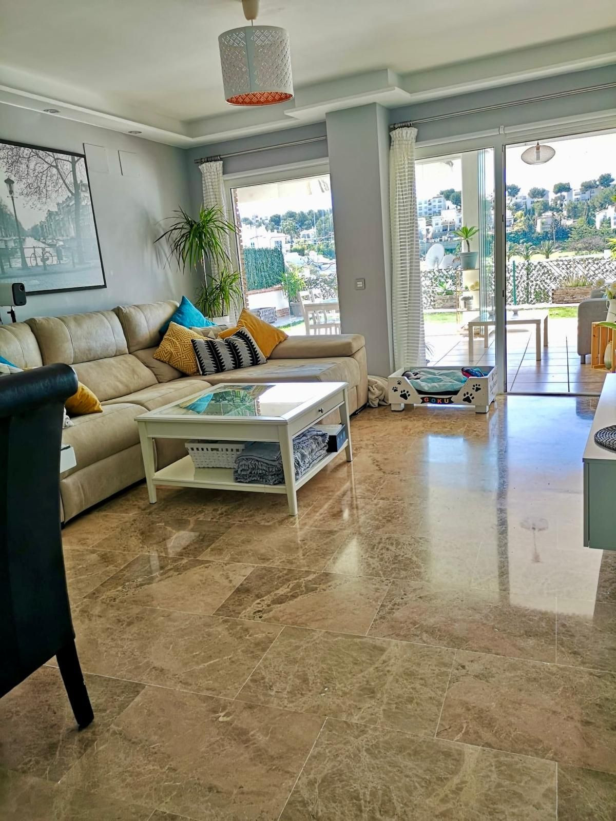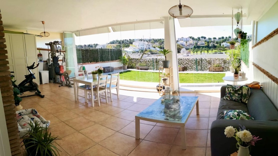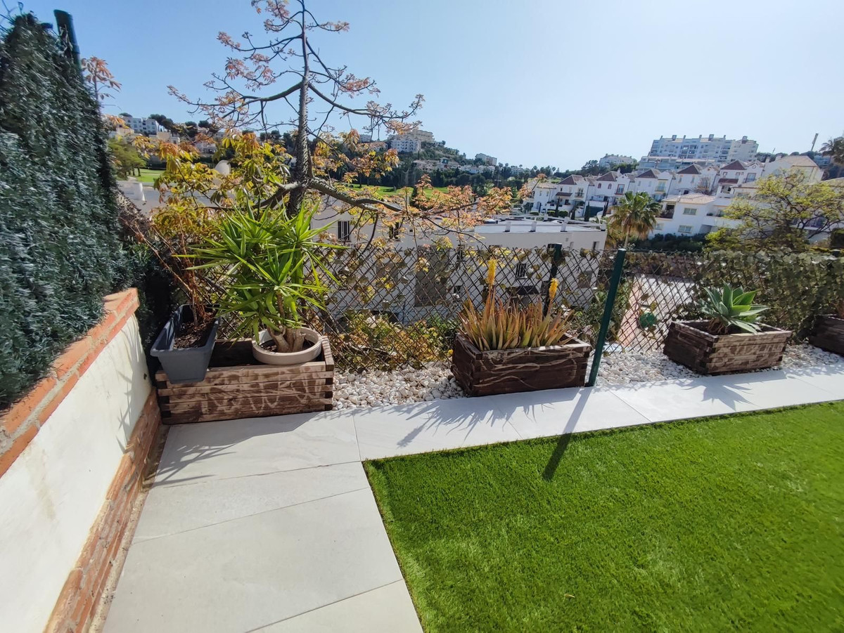 Nestled in the serene community of Riviera del Sol, this well-maintained ground floor apartment spans a comfortable 120 square meters. Featuring two bedrooms and two bathrooms, this property is perfect for those seeking a blend of convenience and tranquility. The apartment boasts a spacious open-plan kitchen, fitted with necessary appliances and benefitting from a large, bright window that fills the space with natural light. Adjacent to the kitchen is the living room, which also enjoys ample brightness, making it an inviting space for relaxation and gatherings.