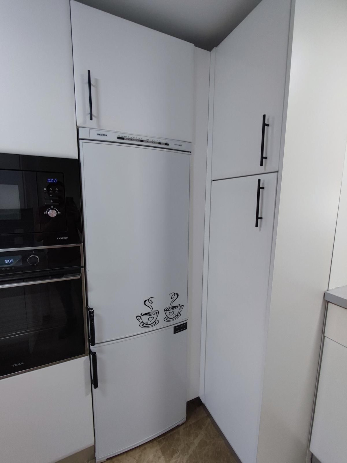 The bedrooms come with fitted wardrobes, providing adequate storage space and maintaining the clean lines of the room's design. The property offers two bathrooms, one equipped with a shower and the other with a bathtub, catering to varied preferences.