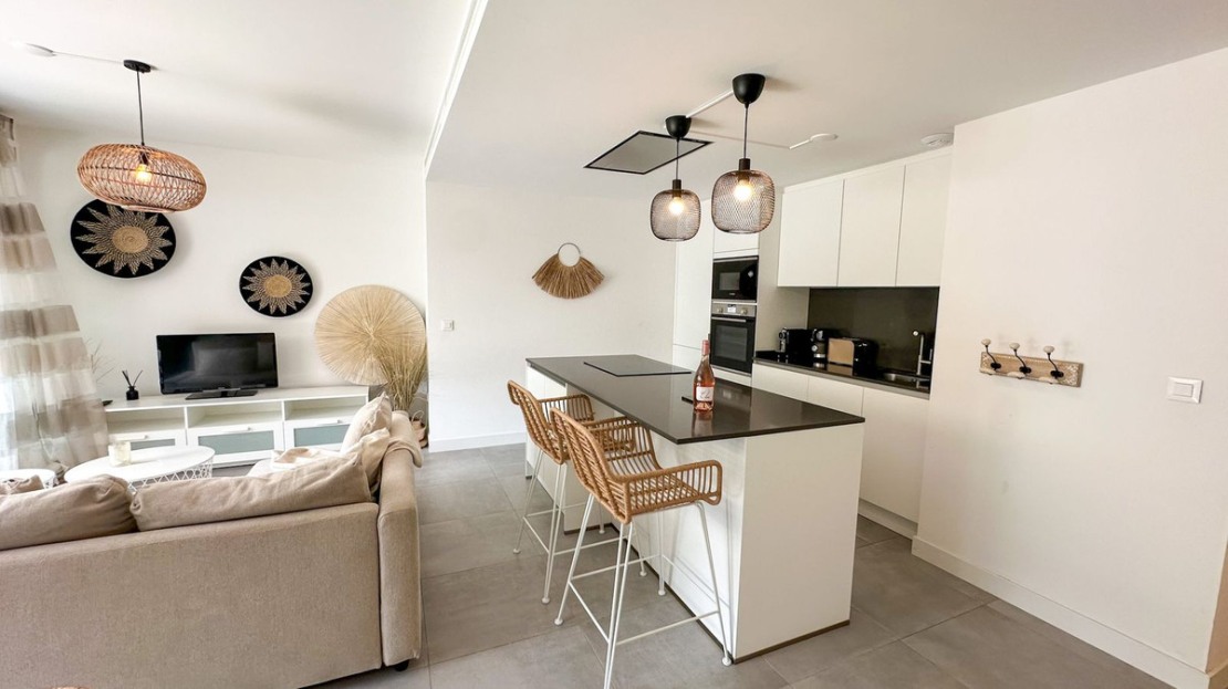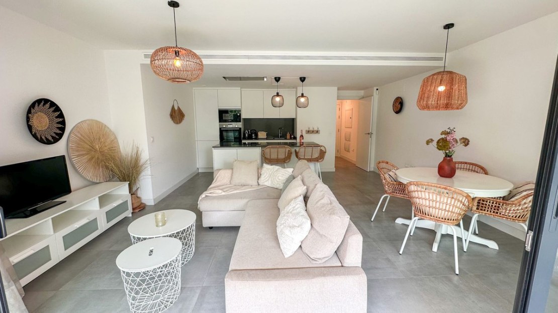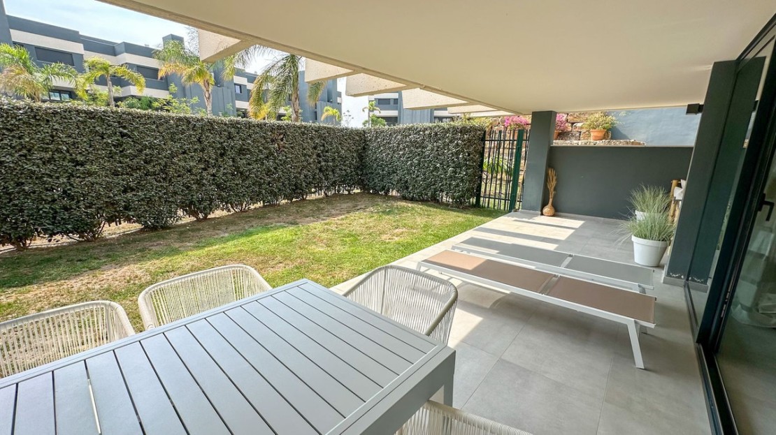 Discover your dream home in Estepona—a luxurious ground-floor two-bedroom, two-bathroom apartment designed to provide both comfort and style. This modern gem, crafted by renowned architect Joaquín Torres, boasts sleek, designer interiors and comes fully furnished with top-quality, contemporary furniture in pristine condition.