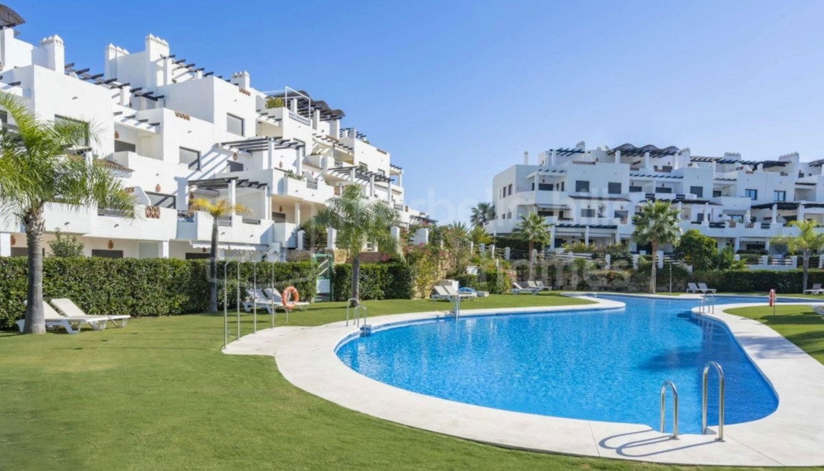 Large windows fill the apartment with natural light, while the private terrace provides direct access to a beautifully landscaped Mediterranean garden. Enjoy breathtaking views of the mountains and surrounding areas. The development boasts lush gardens, a communal pool, and sunbathing areas, perfect for relaxation. Conveniently located near the beaches, restaurants, and shops of Estepona, and just a short drive from Marbella and Puerto Banús.