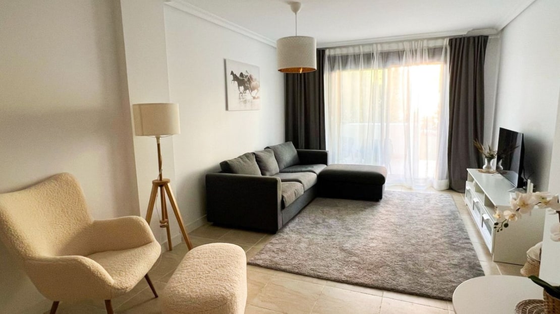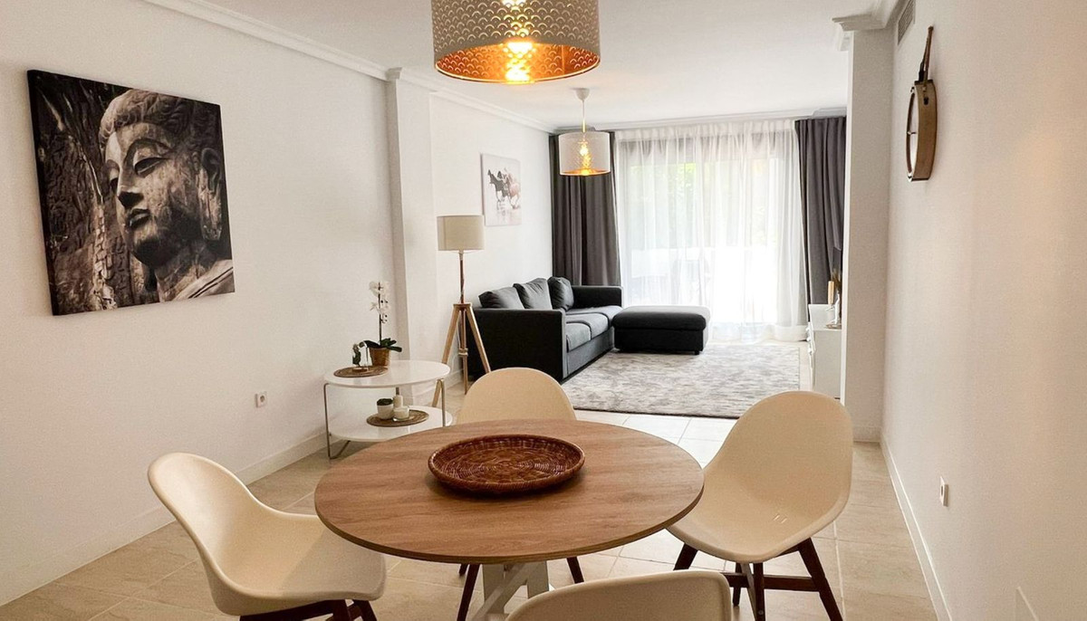 Discover the perfect blend of contemporary elegance and Mediterranean charm in this stunning ground floor apartment located in Sunset Golf development in Selwo, Estepona. With 119 m² built and 89 m² of living space, this home offers an open-plan living and dining area that seamlessly connects to a fully equipped kitchen. The two well-appointed bedrooms and modern bathrooms ensure comfort and style for you and your family.