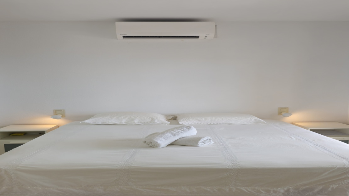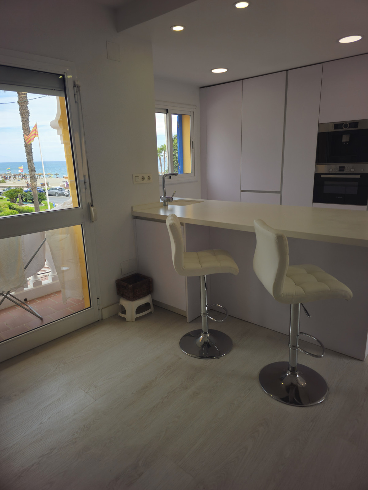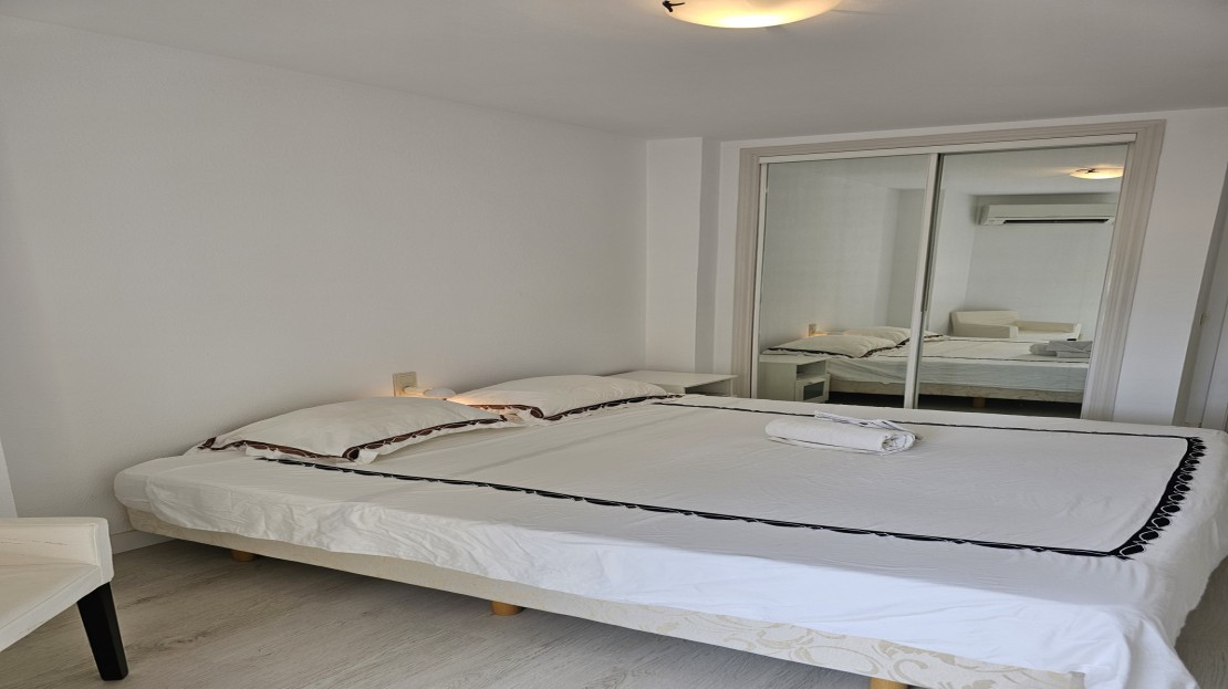 Both bedrooms are good sized, with large windows offering plenty of light and sea breezes. The master bedroom benefits from direct access to the terrace, allowing you to wake up to the sound of the waves. The apartment also includes a full bathroom.