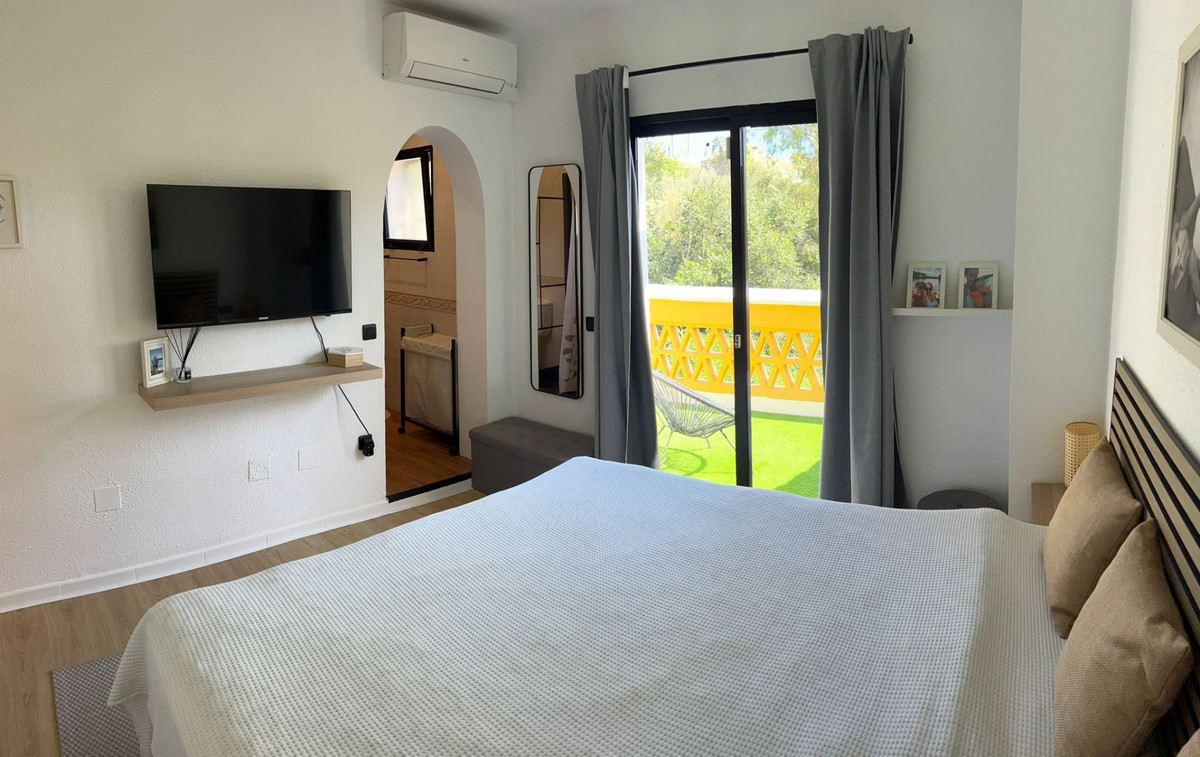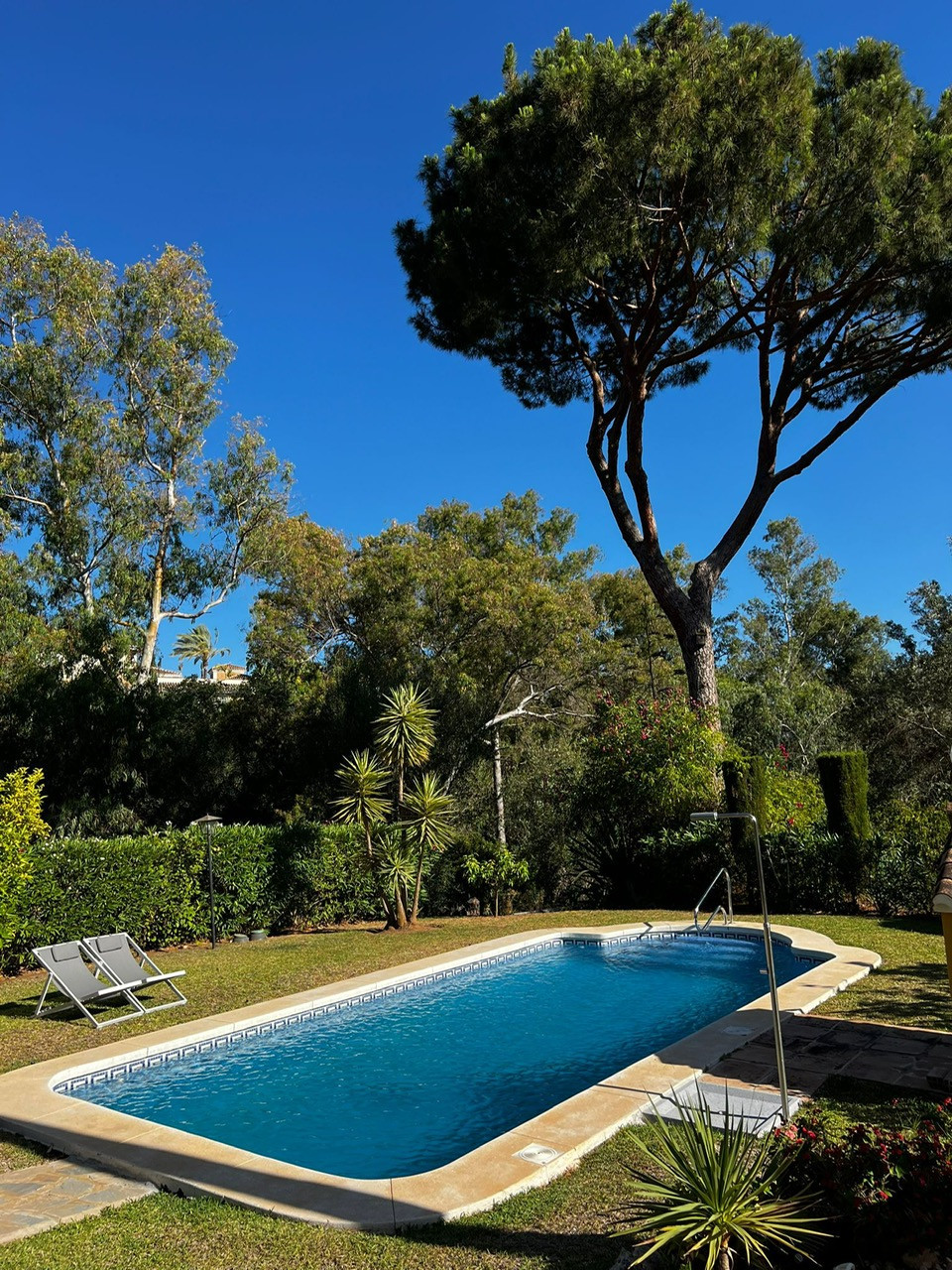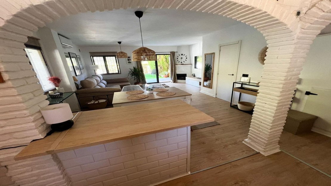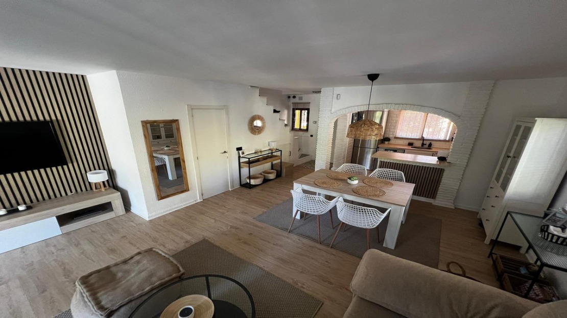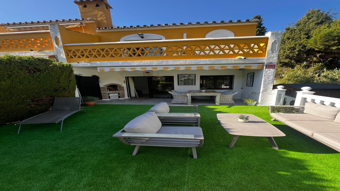 Town House for sale in , Mijas Costa with 2 bedrooms, 2 bathrooms, 1 on suite bathroom, 1 toilet and with orientation south, with communal swimming pool and communal garden. Regarding property dimensions, it has 103 m² built, 160 m² plot and 45 m² terrace. Has the following facilities amenities near, transport near, air conditioning, fully furnished, fully fitted kitchen, fireplace, jacuzzi, guest room, storage room, solarium, double glazing, guest toilet, private terrace, living room, parquet floors, country view, mountain view, internet – wi-fi, fitted wardrobes, garden view, pool view, close to children playground, close to sea / beach, close to golf, uncovered terrace, excellent condition, close to shops, close to town, close to schools and pets allowed.
