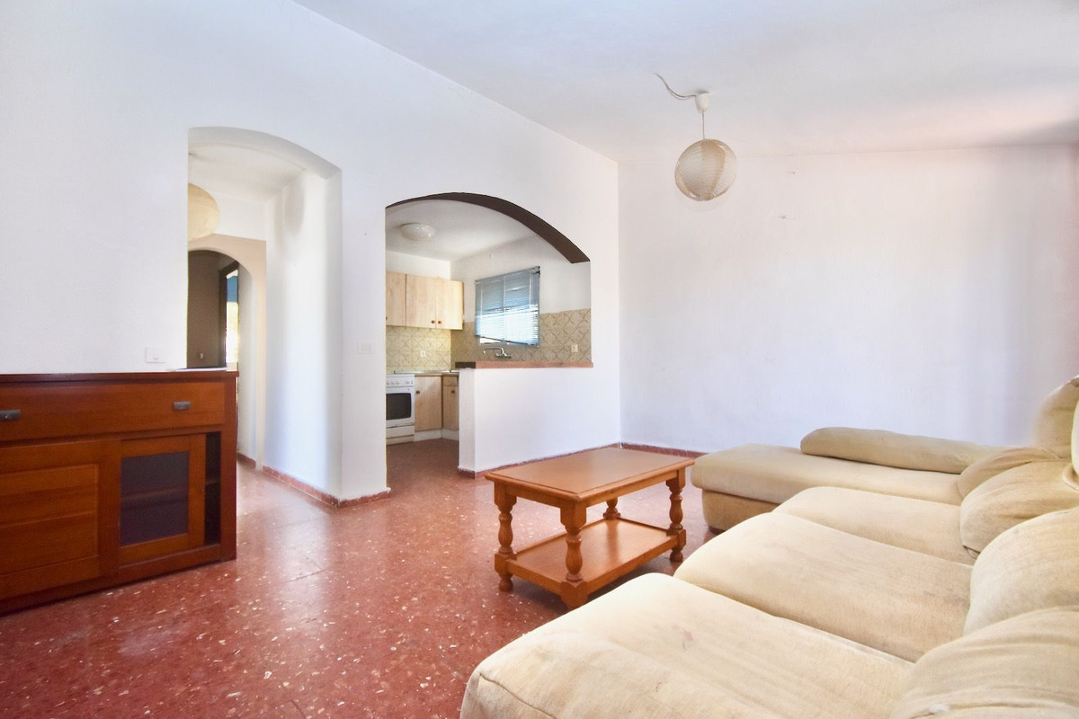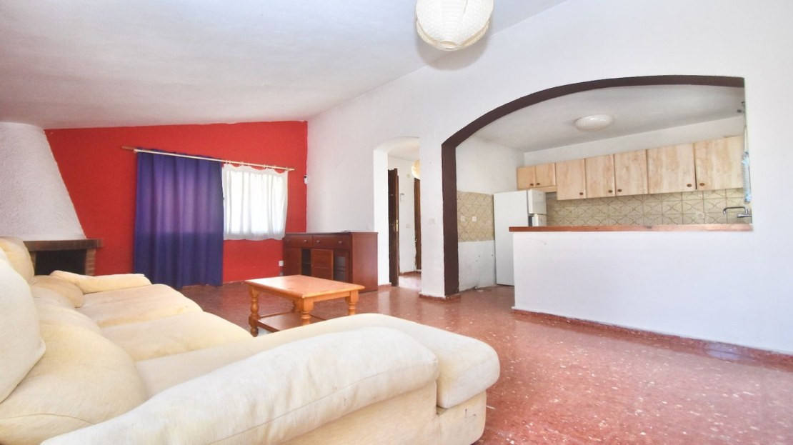 This property has 800 meters of plot ideal to continue building or carry out a new project. Right now it has 83 meters built with 2 bedrooms, 1 bathroom, living room – dining room, kitchen, several terraces and private garage. Perfect location next to the community pool of the urbanization, close to restaurants and shops….
