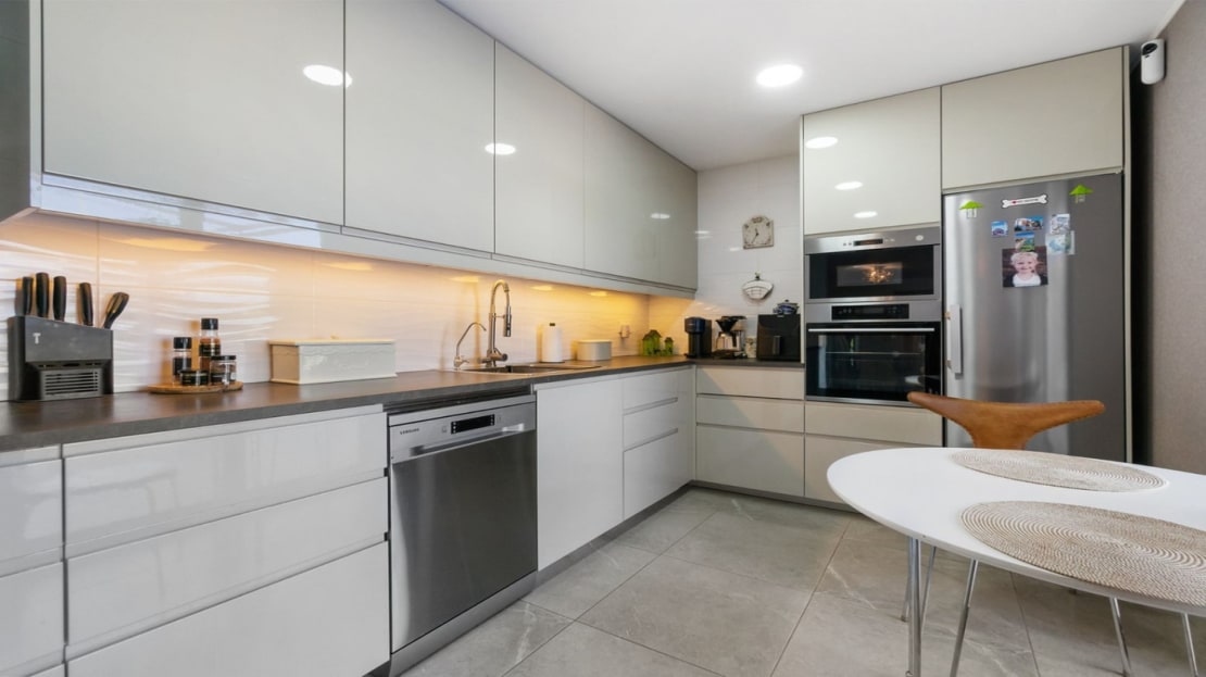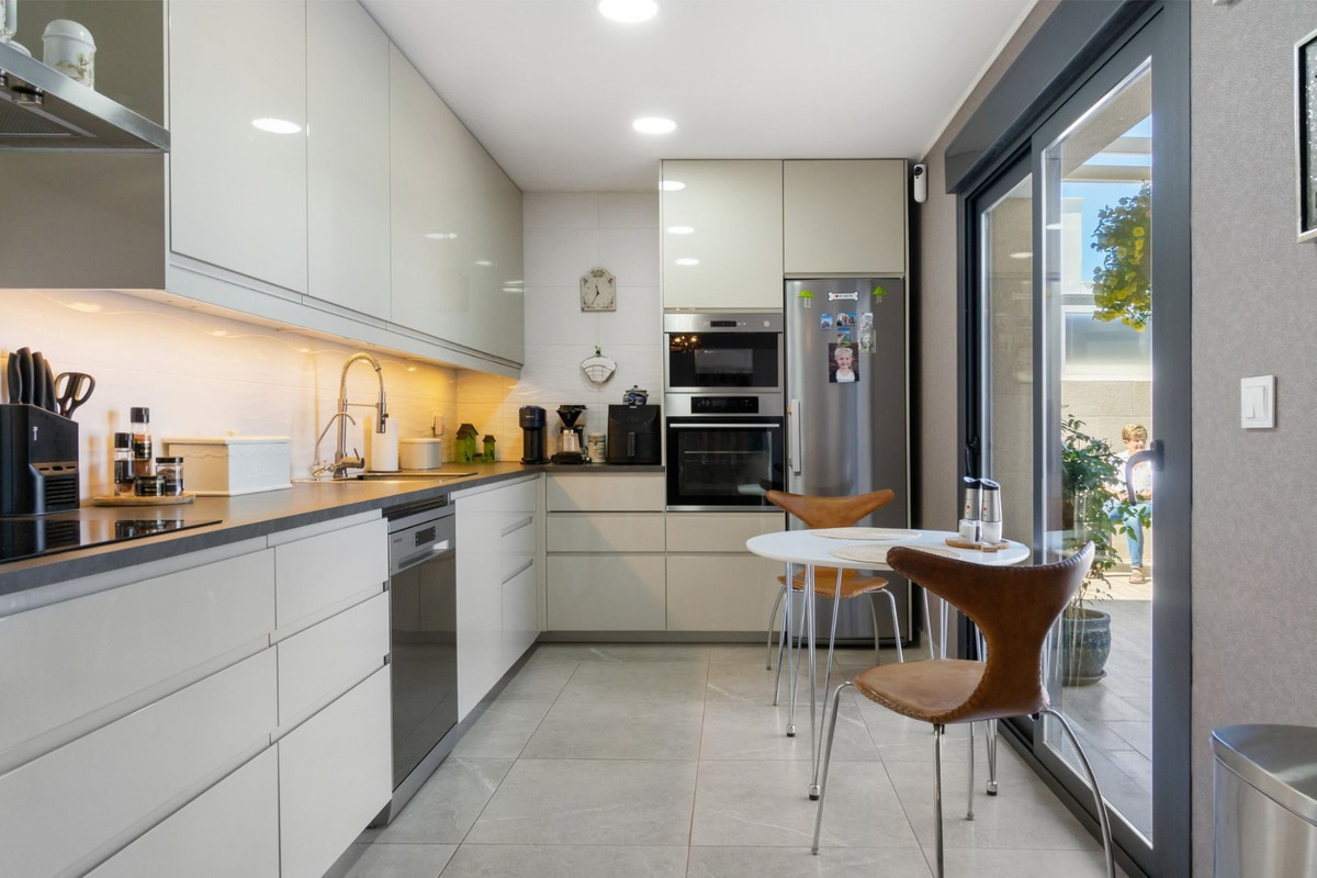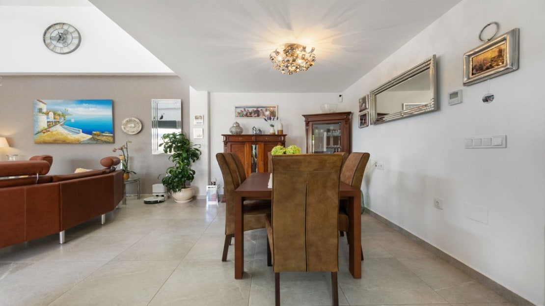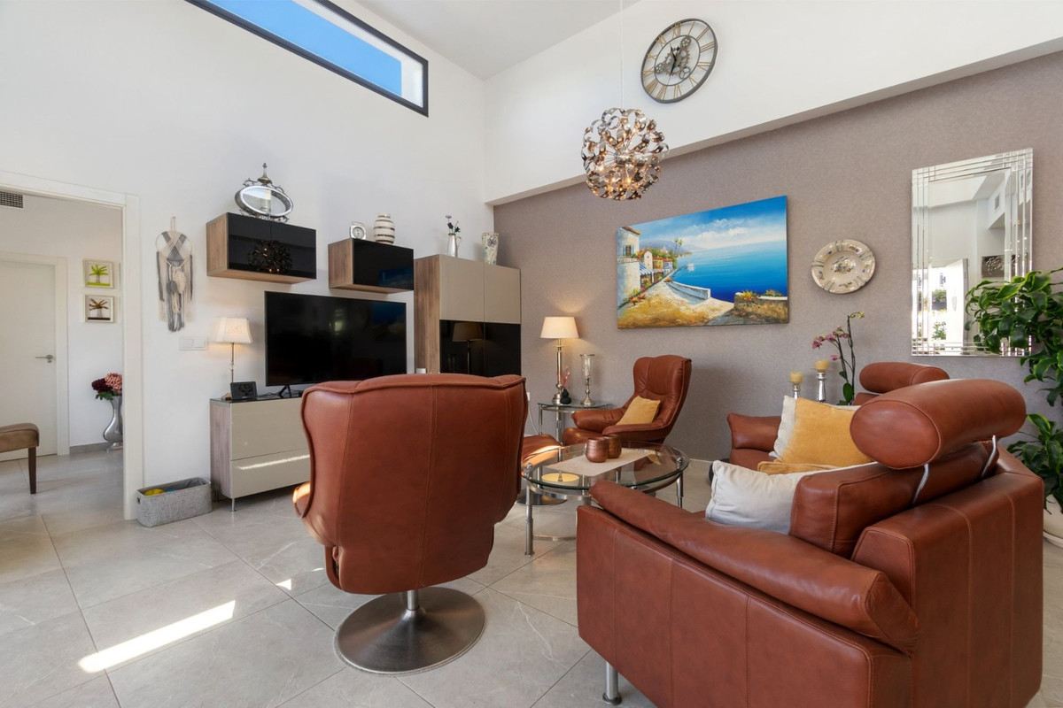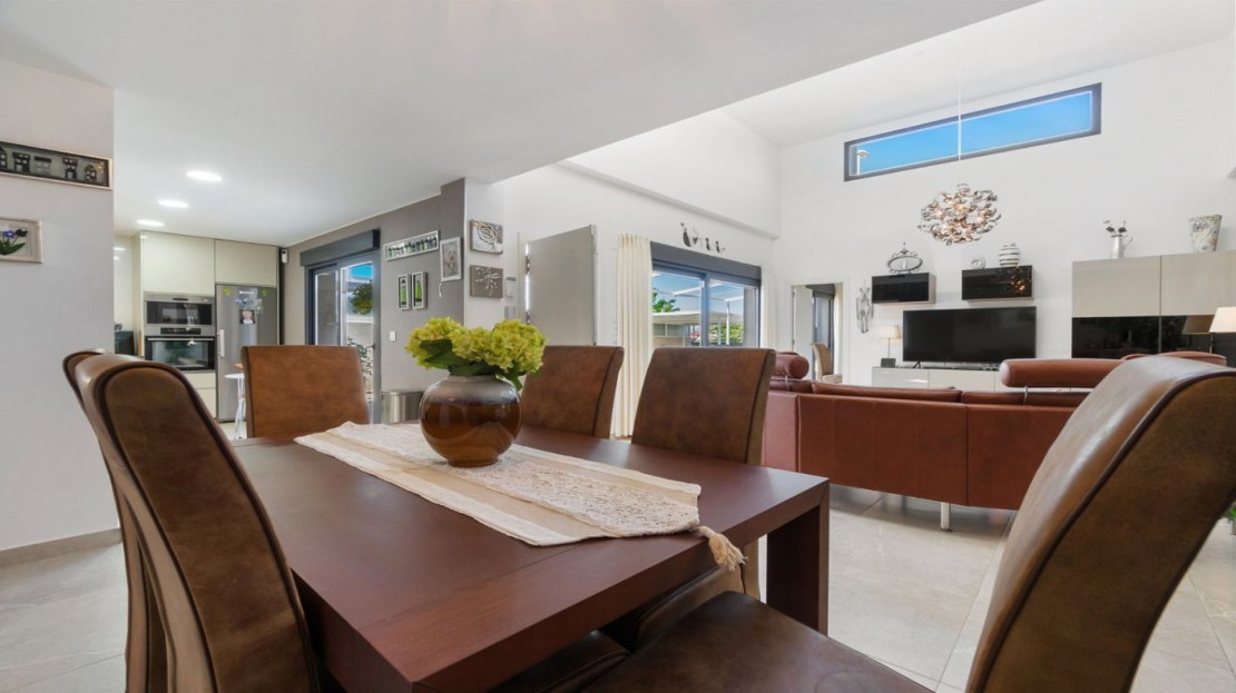 When you enter this wonderful villa, you are greeted by a spacious and bright living room, tastefully decorated with modern furniture and large windows that allow plenty of natural light to flood the space. The open floor plan seamlessly connects the living room with the dining room and the modern kitchen, creating an inviting space to gather family and friends.