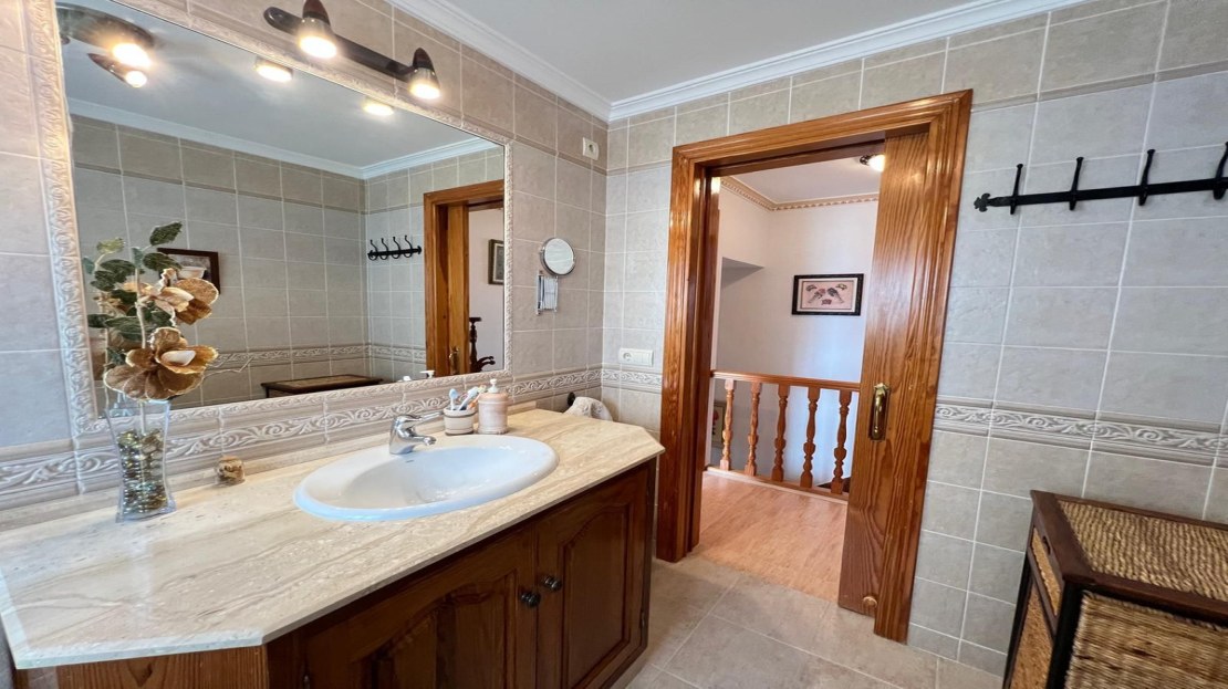 First floor with 2 bedrooms, with the possibility of dividing one of the bedrooms and making 3, dressing room, beautiful bathroom with bathtub. Built-in wardrobes in both rooms, in one you enjoy a beautiful balcony with sea views, and in the other The room has a large patio where it leads to a staircase to go up to the roof.