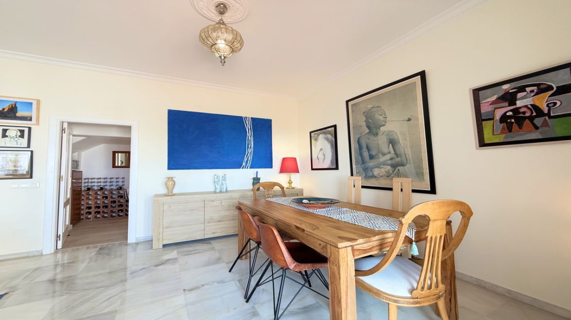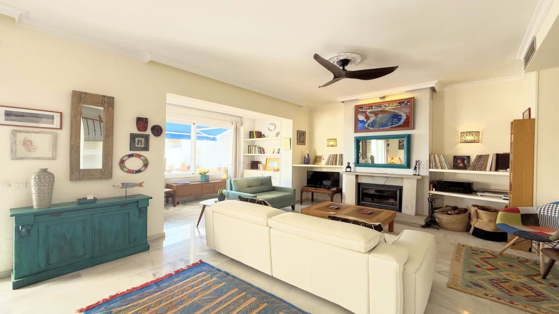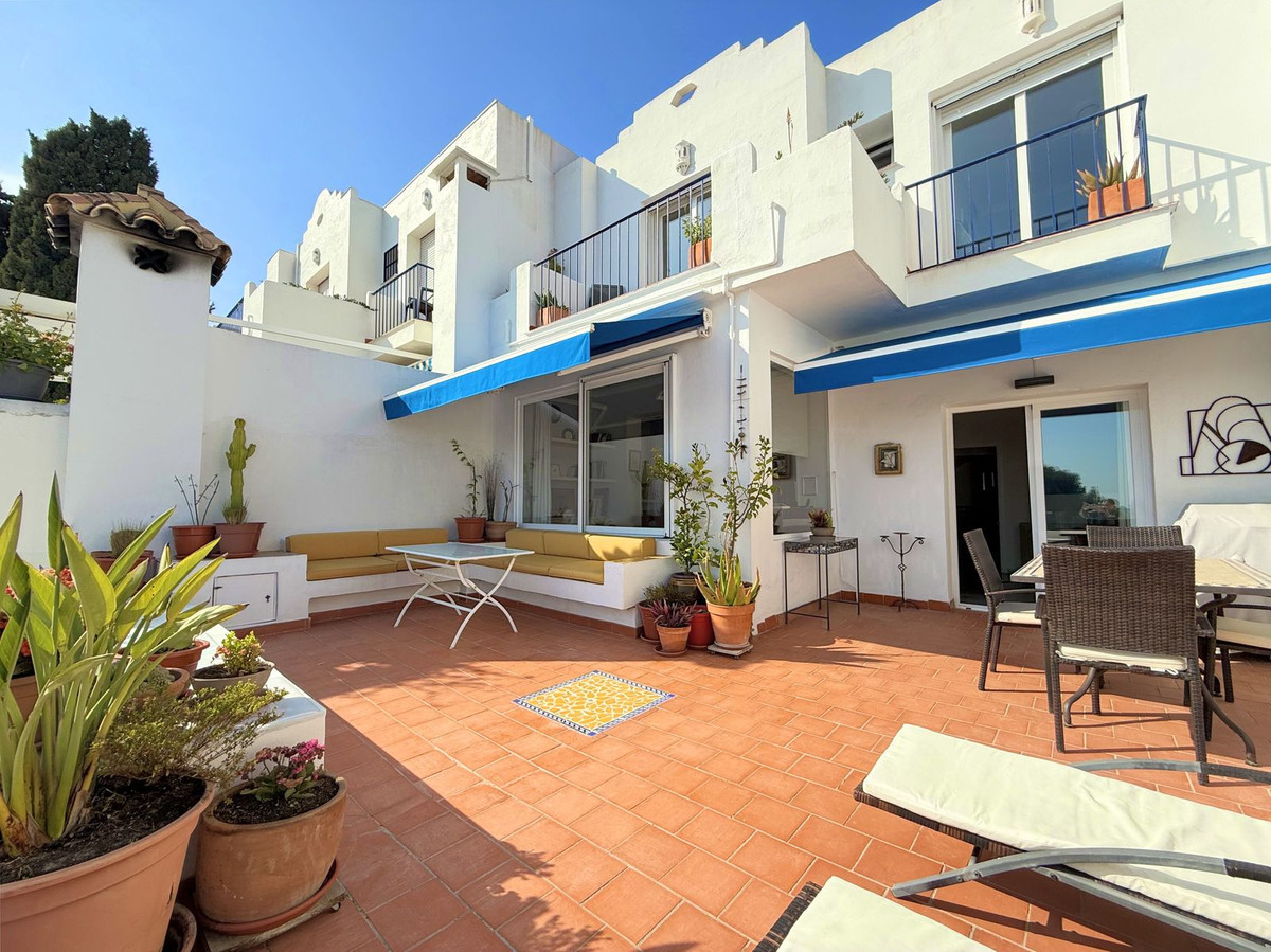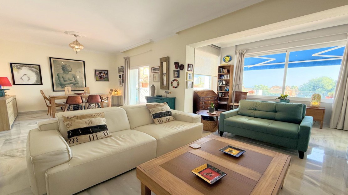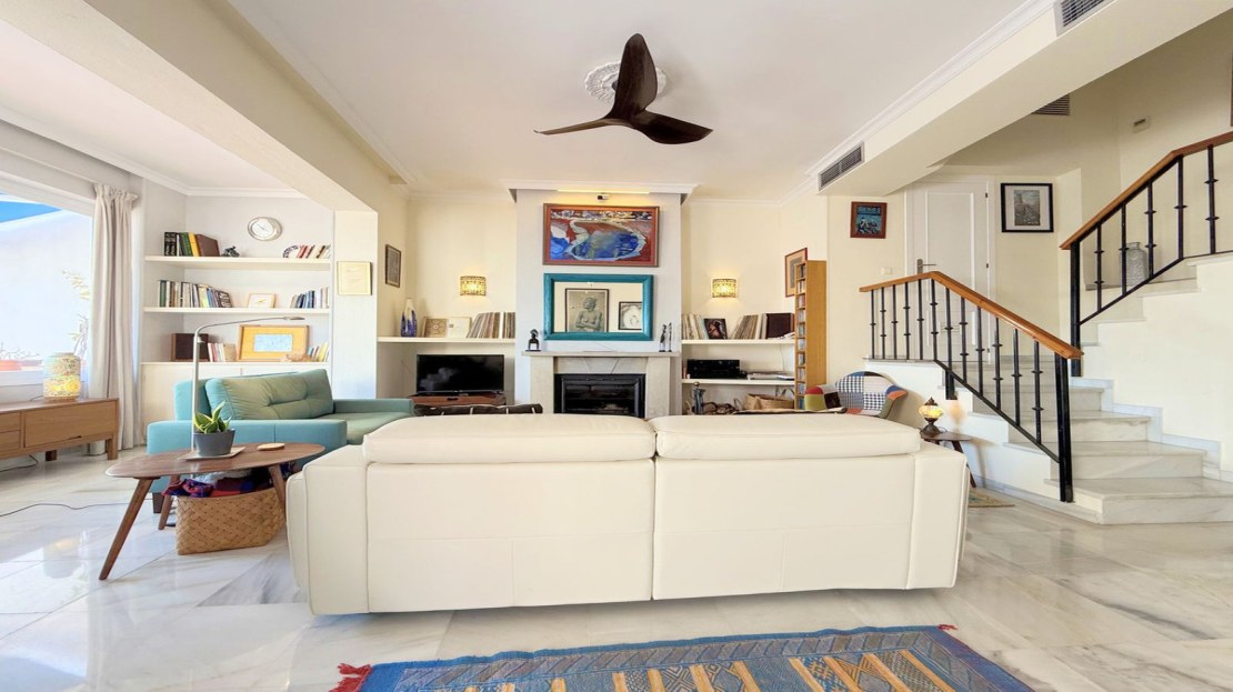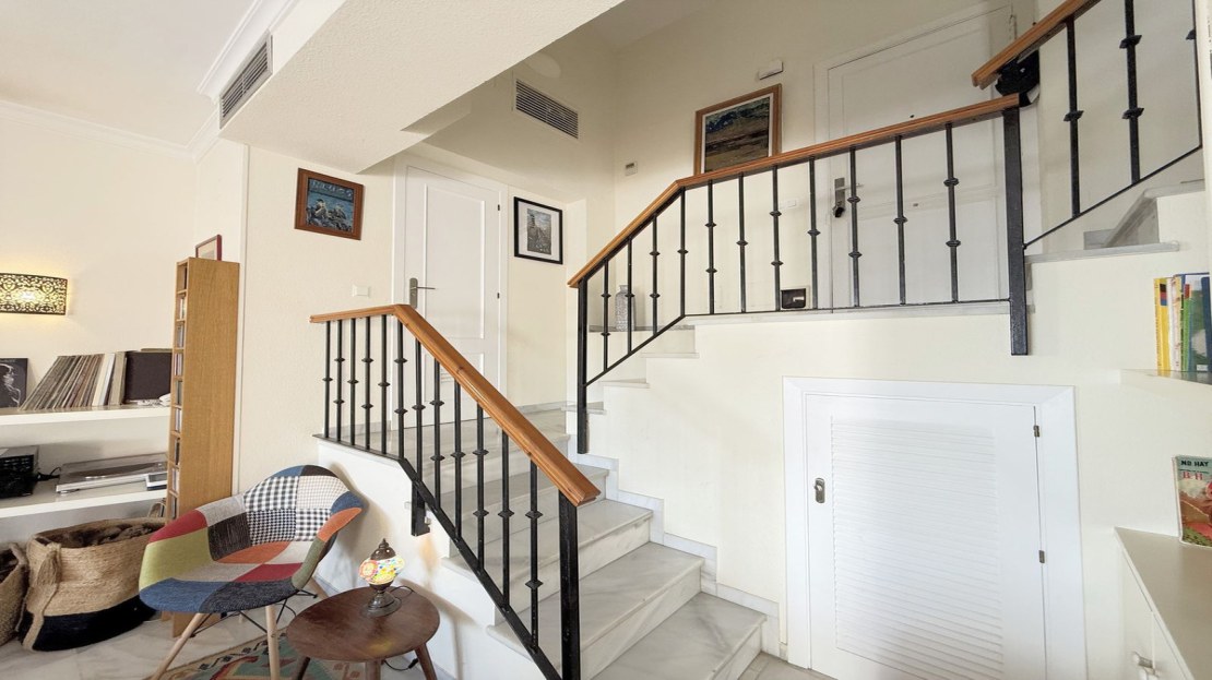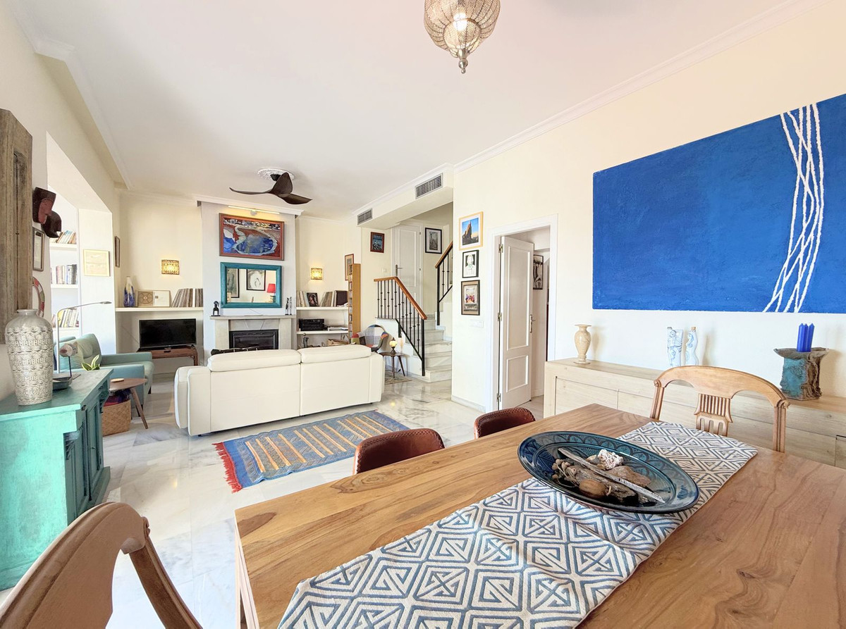 This exclusive SEMIDETACHED HOUSE, completely renovated and in excellent condition, is located in a well-maintained urbanization with low community fees, strategically situated on the outskirts of Estepona but within the town center. Its location is unbeatable, with a bus stop just a minute’s walk away and a bus frequency every 30 minutes. It is also 10 minutes walking from the Marina, where you will find a wide range of commercial and leisure options, and 2 km from the town center, easily accessible by bike, taxi, or on foot. The beach is directly across, just a 5-minute walk away, and nearby there is a service station with a supermarket for added convenience. The access to the highway is located next to the urbanization, facilitating mobility. The property stands out for its brightness, with large windows that allow natural light to enter, and its south-facing orientation, ensuring privacy and a sunny environment. Its spectacular terrace, equipped with electric awnings and an elegant chill-out area, offers stunning views of the sea, Gibraltar, and the coast of Africa. Inside, the living-dining room with high ceilings and a fireplace adds distinction and warmth, while the spacious and modern kitchen, only three years old, offers ample storage capacity. Additionally, it has a guest toilet and spacious bedrooms with walk-in closets and designer bathrooms, with terraces that offer even more impressive views. The urbanization has communal parking and a pool with well-maintained gardens, ideal for relaxation. With authorized vacation rental, this property represents an excellent opportunity both for permanent residence and as an investment. We invite you to visit and discover everything that this magnificent duplex penthouse has to offer.