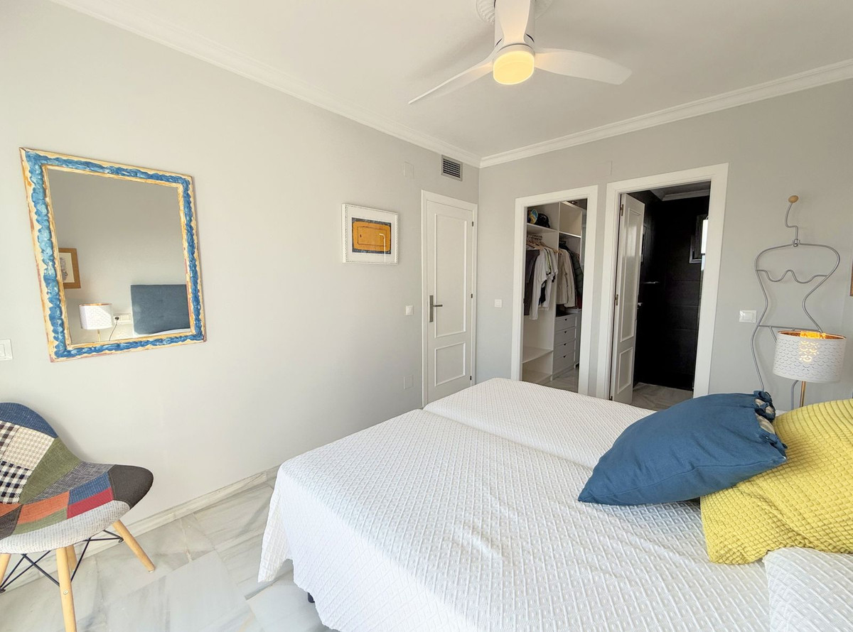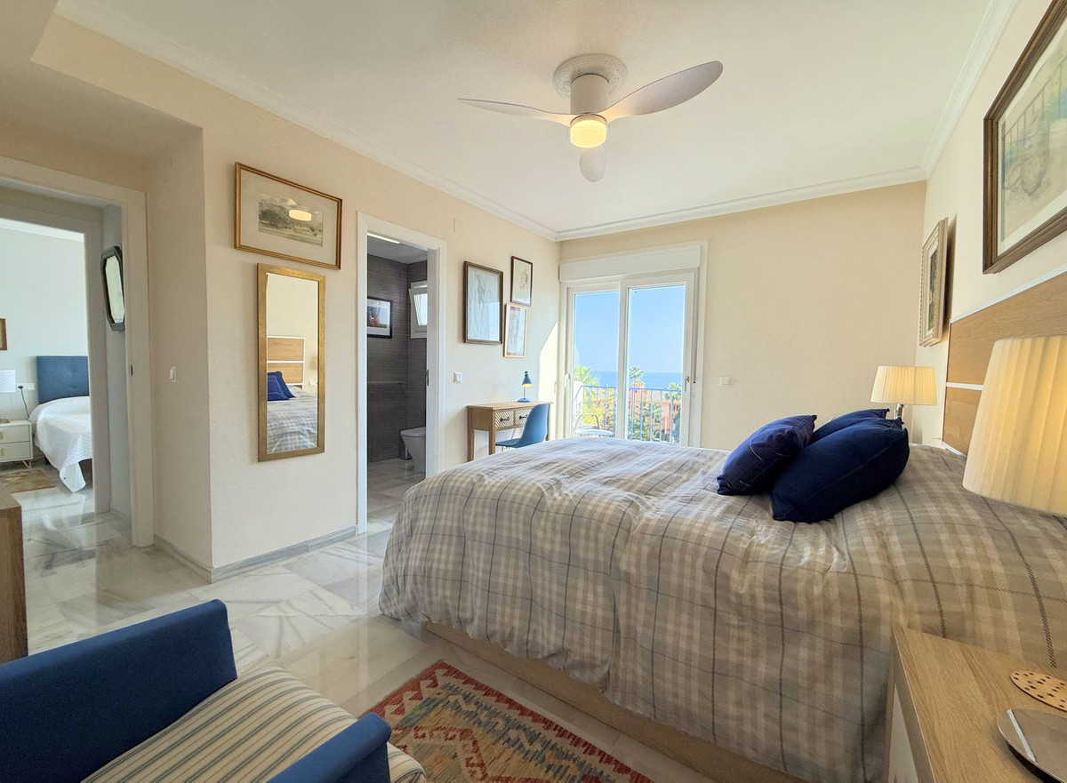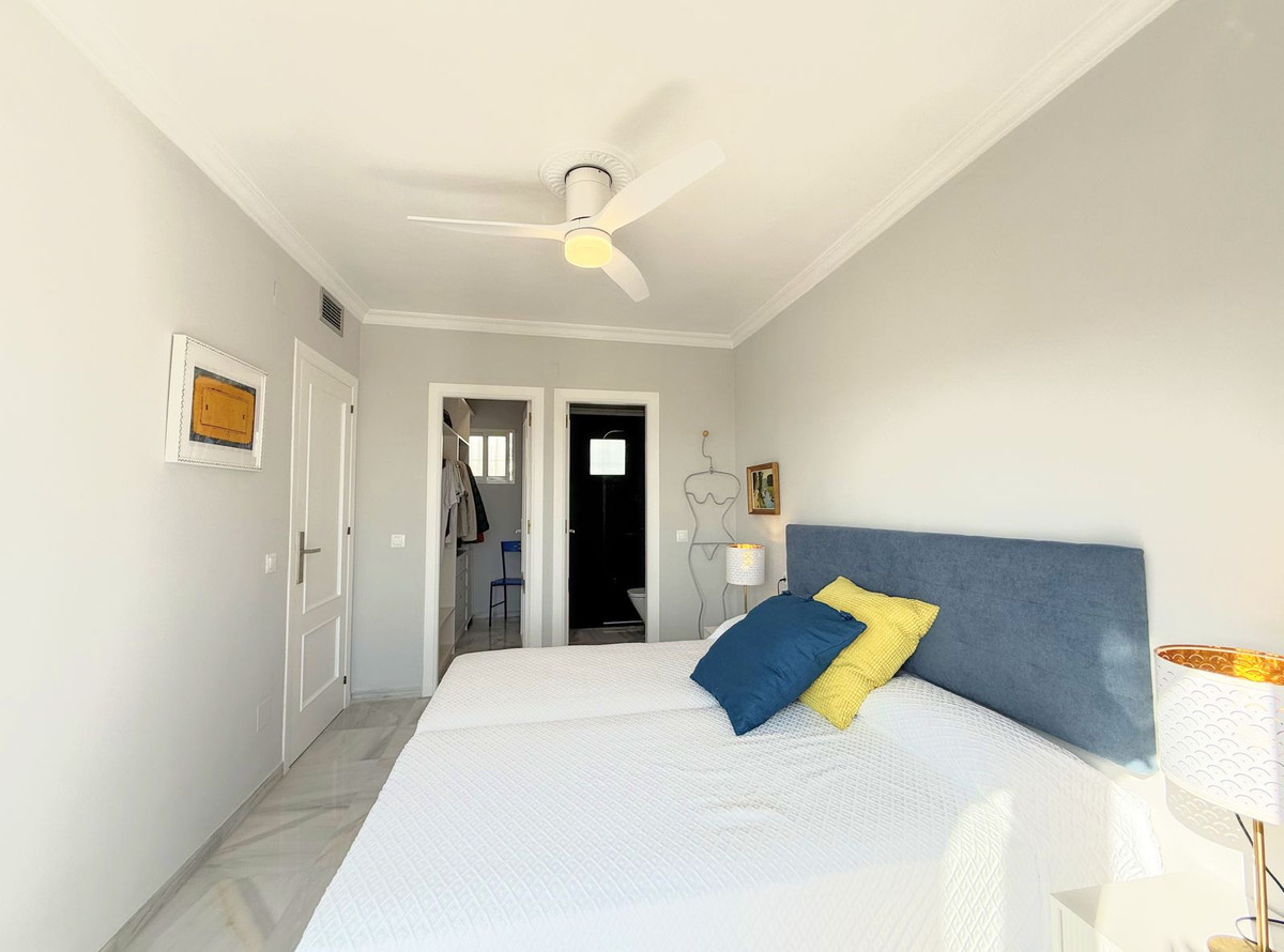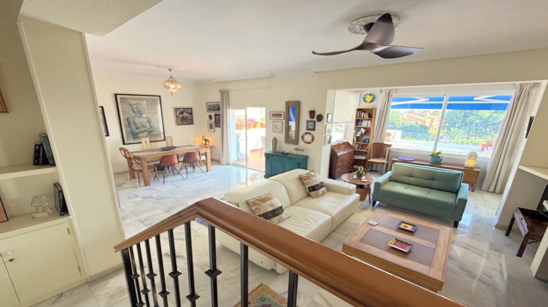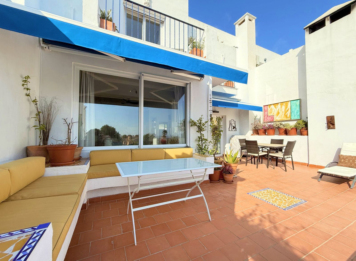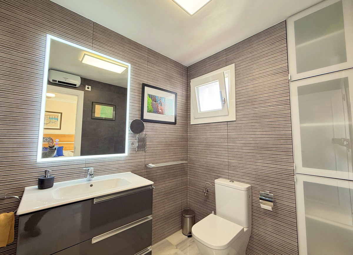This exclusive SEMIDETACHED HOUSE, completely renovated and in excellent condition, is located in a well-maintained urbanization with low community fees, strategically situated on the outskirts of Estepona but within the town center. Its location is unbeatable, with a bus stop just a minute’s walk away and a bus frequency every 30 minutes. It is also 10 minutes walking from the Marina, where you will find a wide range of commercial and leisure options, and 2 km from the town center, easily accessible by bike, taxi, or on foot. The beach is directly across, just a 5-minute walk away, and nearby there is a service station with a supermarket for added convenience. The access to the highway is located next to the urbanization, facilitating mobility. The property stands out for its brightness, with large windows that allow natural light to enter, and its south-facing orientation, ensuring privacy and a sunny environment. Its spectacular terrace, equipped with electric awnings and an elegant chill-out area, offers stunning views of the sea, Gibraltar, and the coast of Africa. Inside, the living-dining room with high ceilings and a fireplace adds distinction and warmth, while the spacious and modern kitchen, only three years old, offers ample storage capacity. Additionally, it has a guest toilet and spacious bedrooms with walk-in closets and designer bathrooms, with terraces that offer even more impressive views. The urbanization has communal parking and a pool with well-maintained gardens, ideal for relaxation. With authorized vacation rental, this property represents an excellent opportunity both for permanent residence and as an investment. We invite you to visit and discover everything that this magnificent duplex penthouse has to offer.