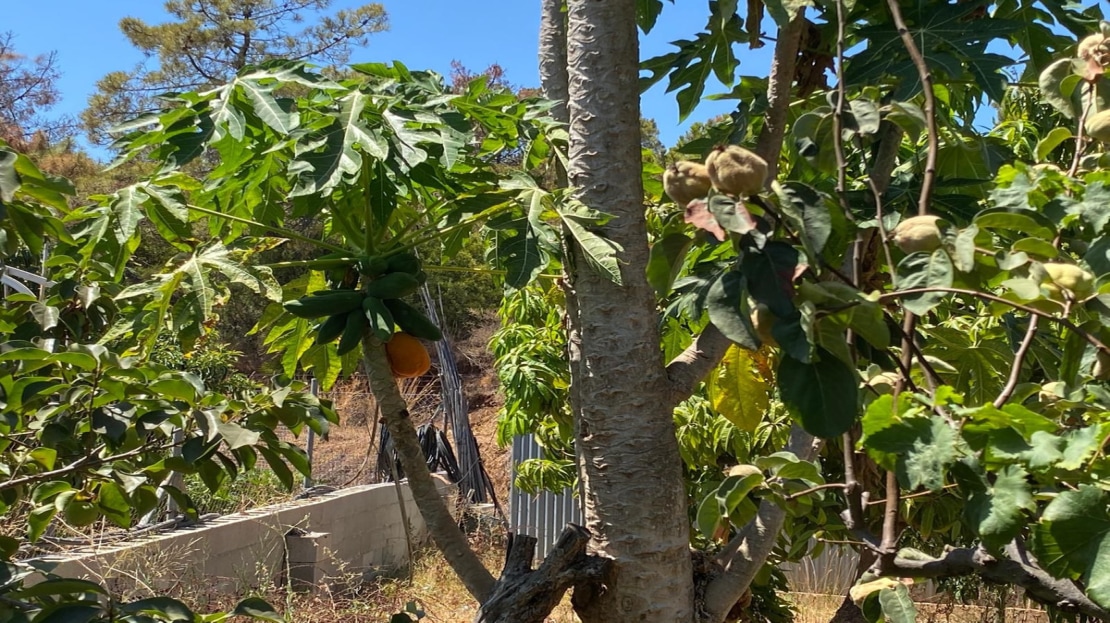 The expansive garden is a true highlight, with a variety of mature fruit trees such as avocado, mango, papaya, lemon, orange, figs, and grapevines. This lush landscape not only adds to the charm of the property but also offers the potential for fresh, home-grown produce.