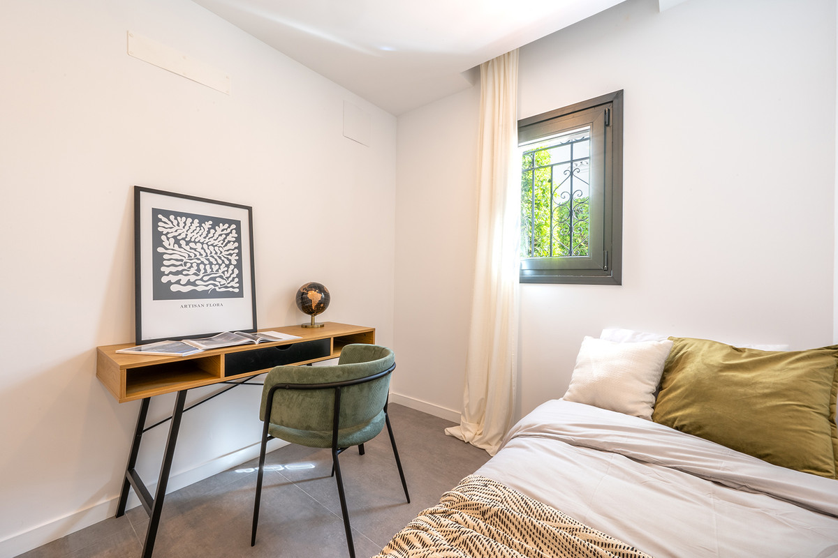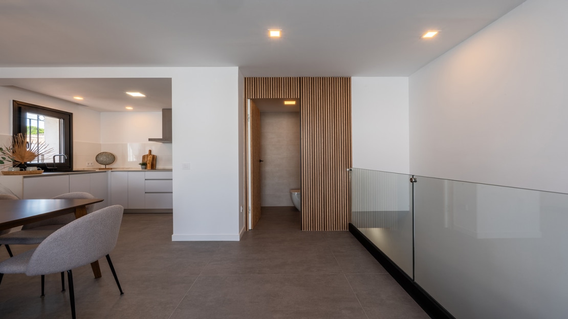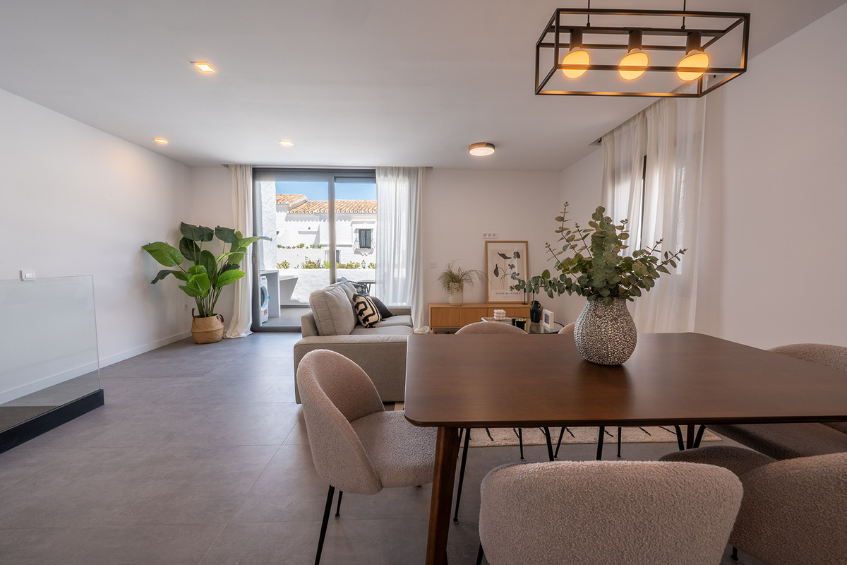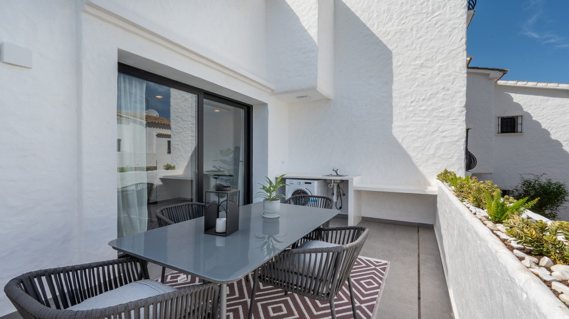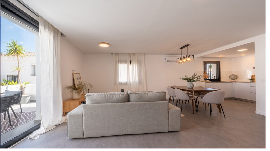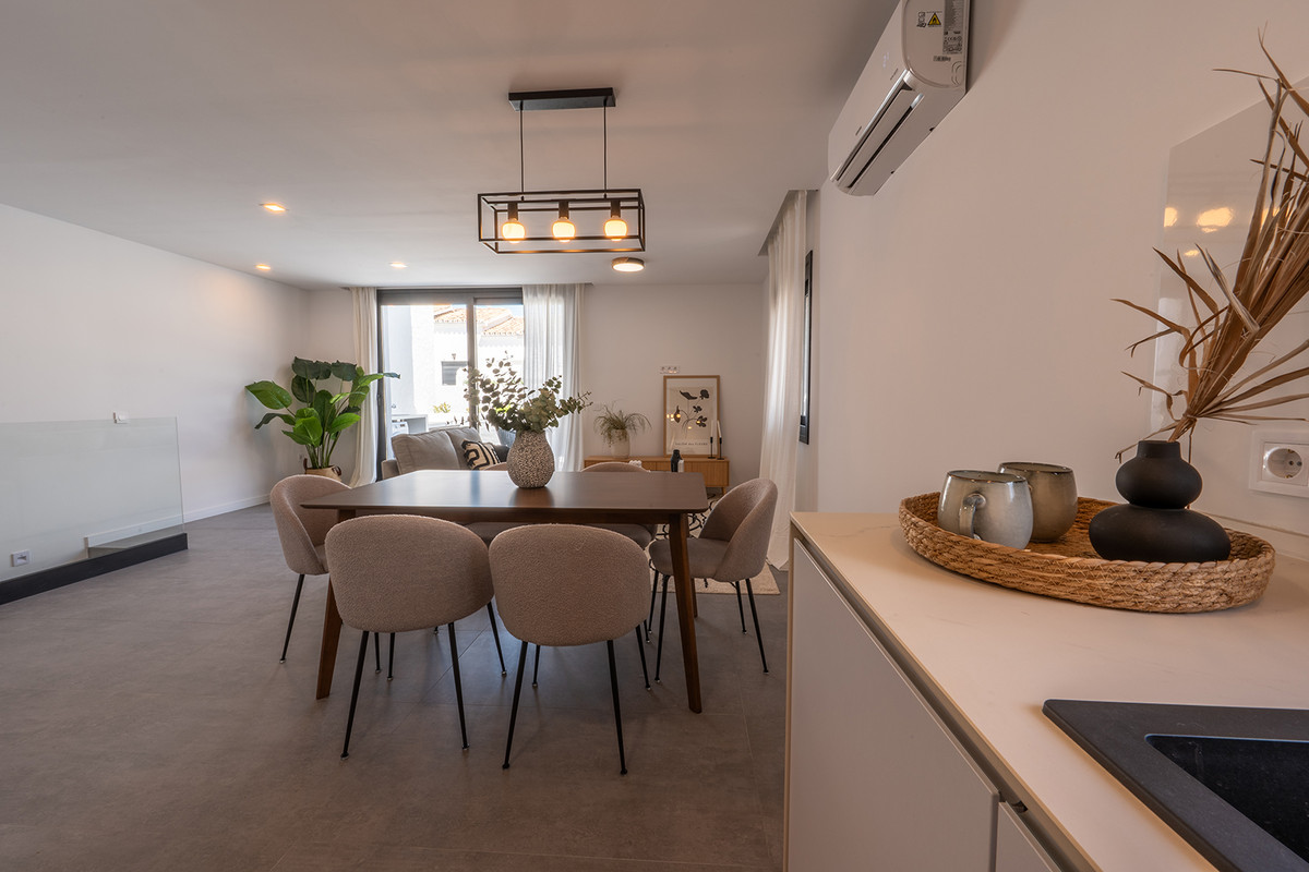 On the upper floor we will find a modern and fully equipped kitchen that integrates with the living-dining room, creating a perfect space for entertainment and daily living. From here you can access a charming 19 m² terrace where you can enjoy the unbeatable climate of the Costa del Sol.