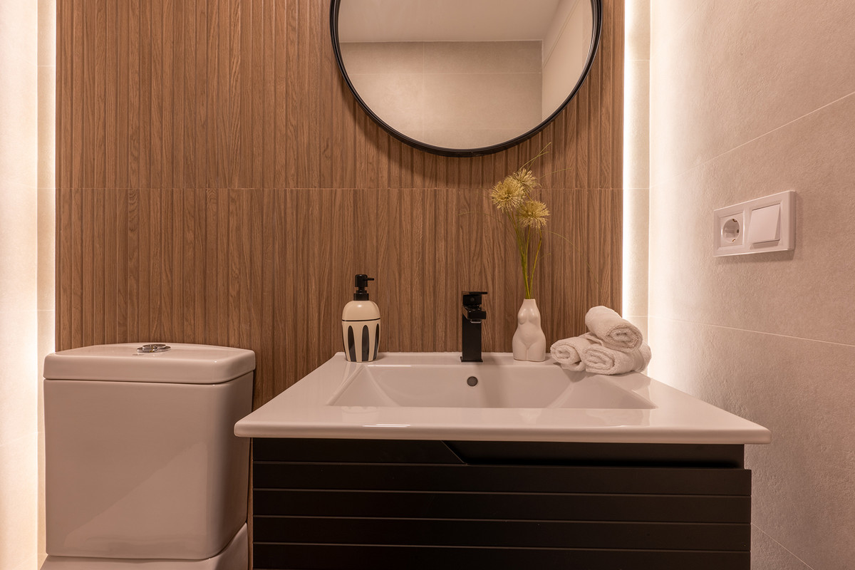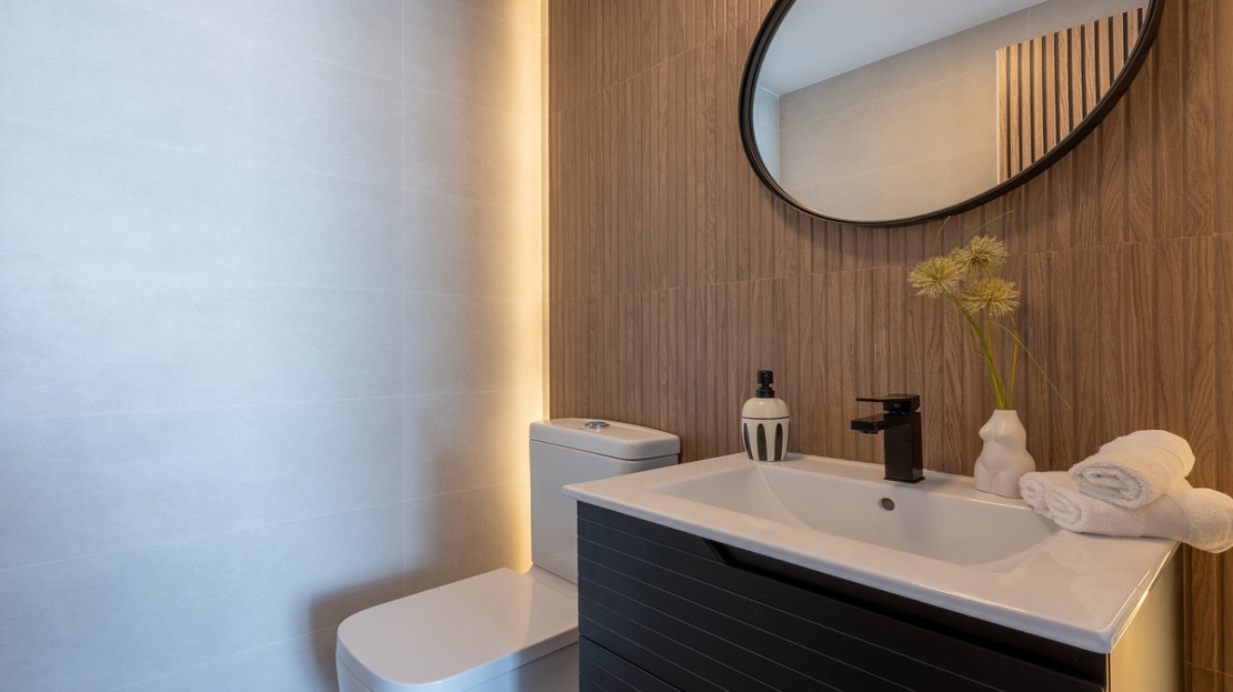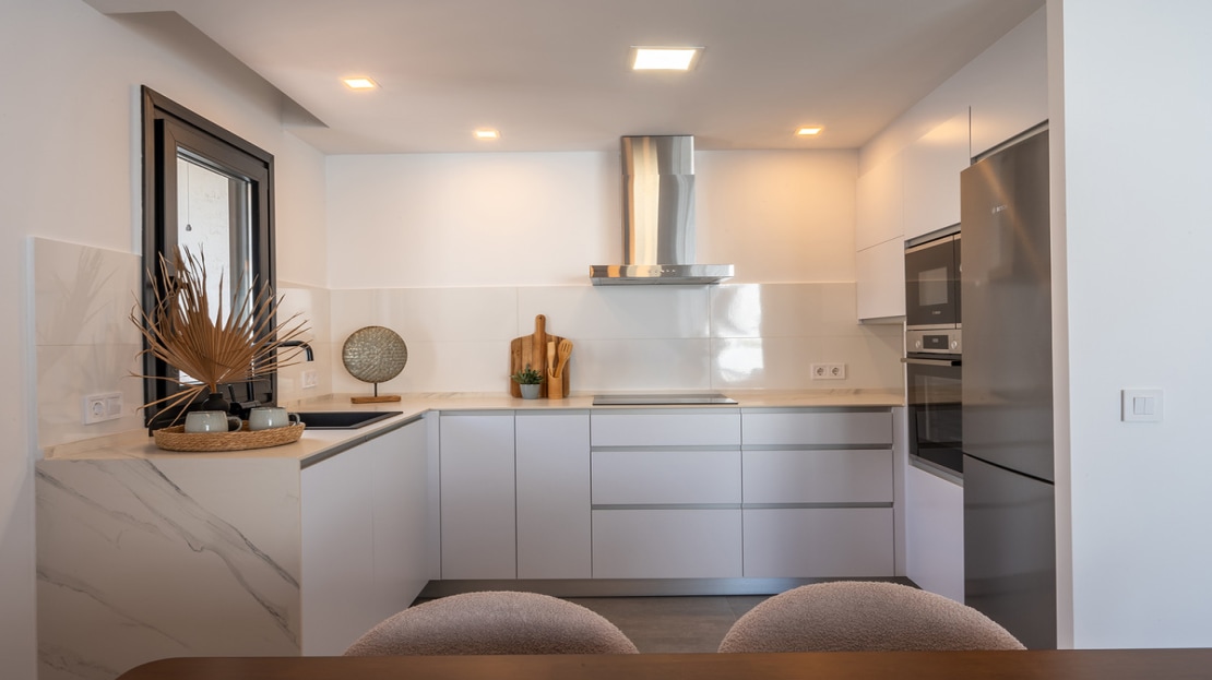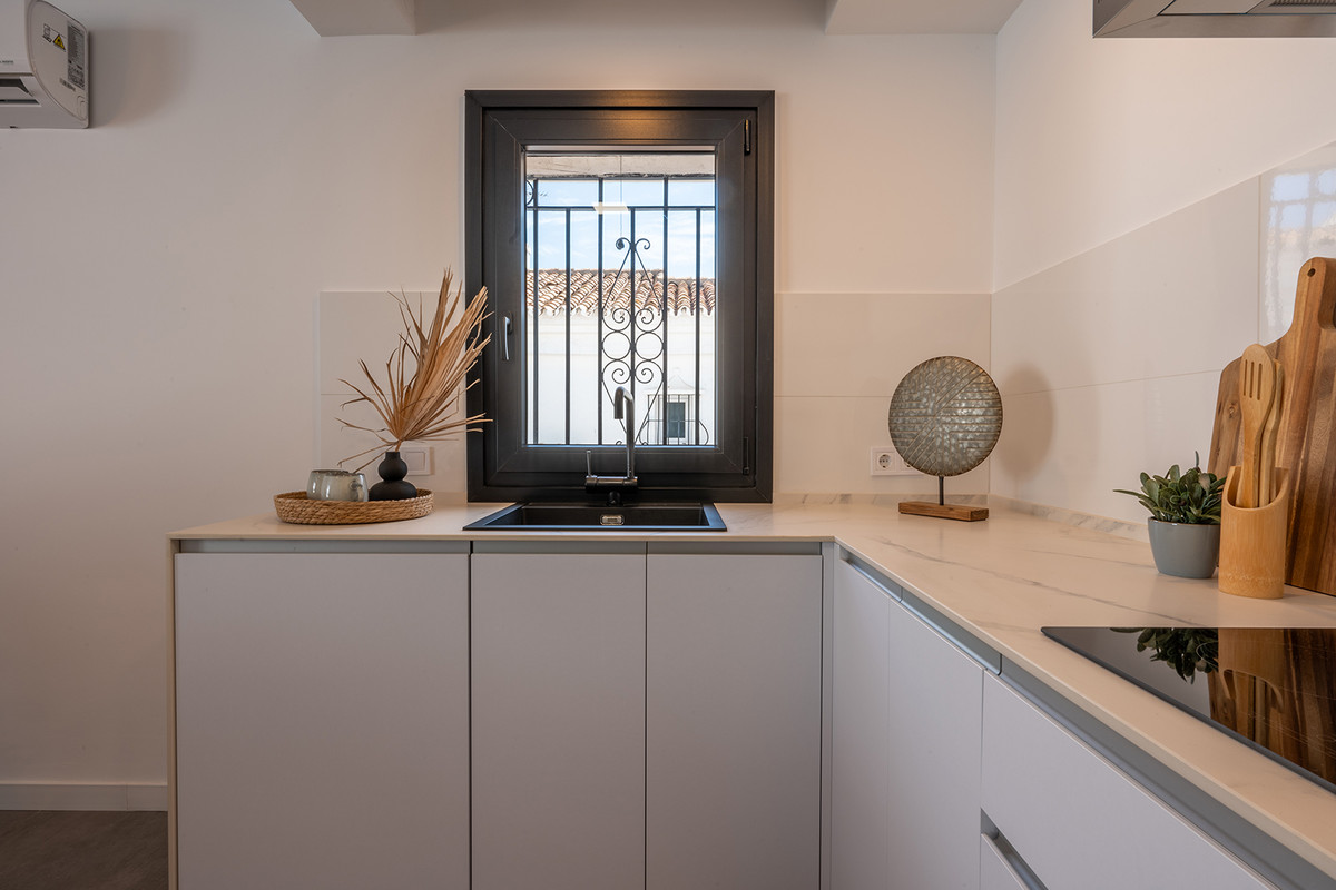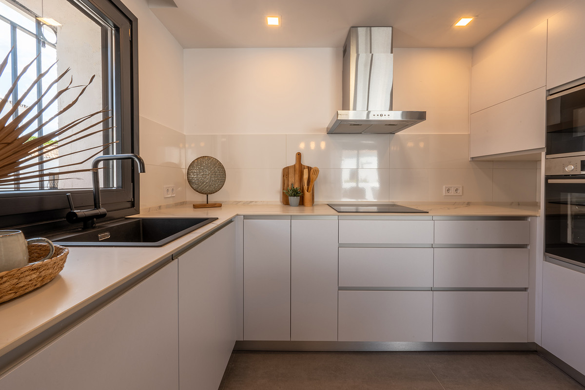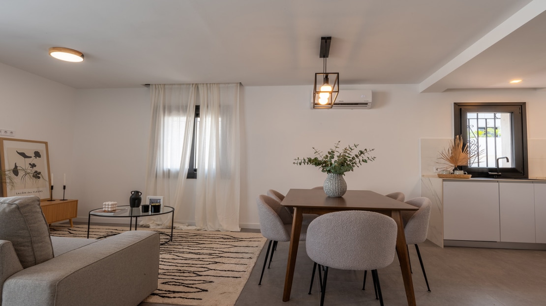 On the upper floor we will find a modern and fully equipped kitchen that integrates with the living-dining room, creating a perfect space for entertainment and daily living. From here you can access a charming 19 m² terrace where you can enjoy the unbeatable climate of the Costa del Sol.