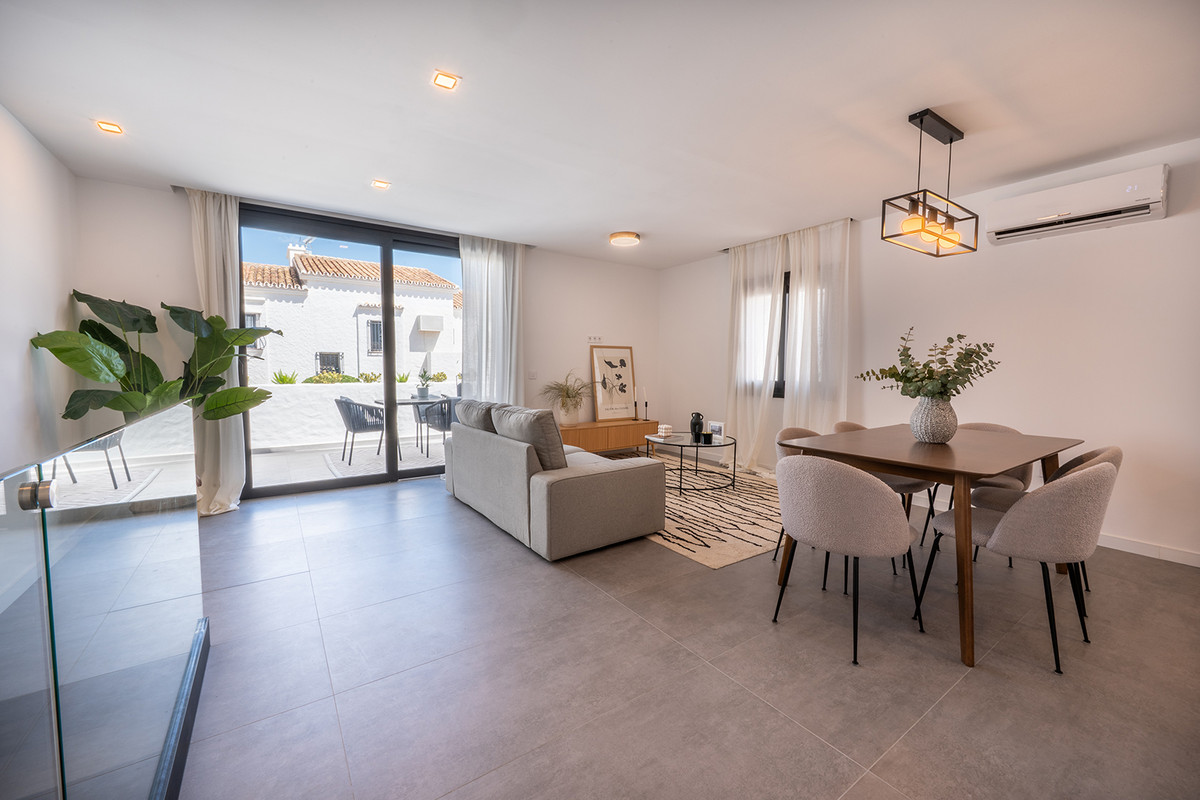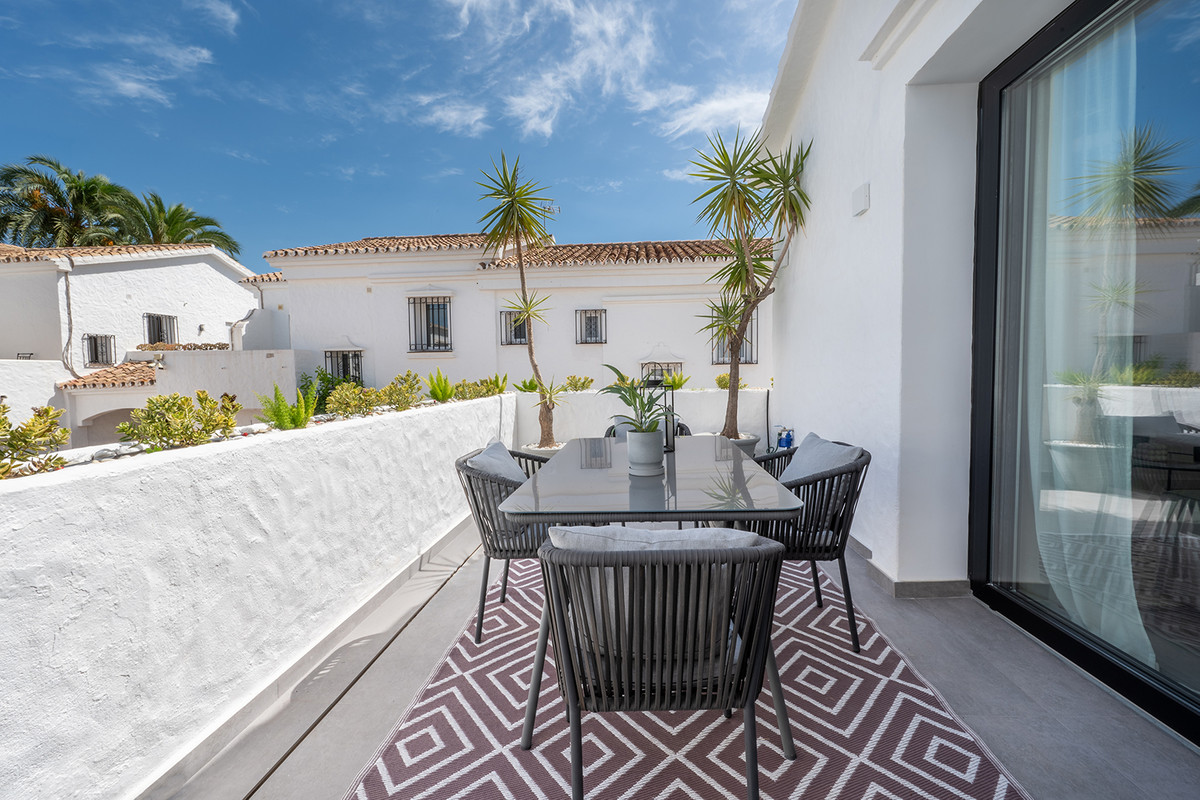 Welcome to this wonderful semi-detached house located in one of the quietest and most exclusive areas of Nueva Andalucía, Marbella. With a constructed area of 111 m² and 93 m² of usable space,