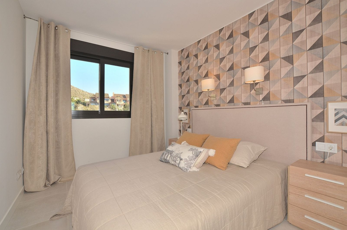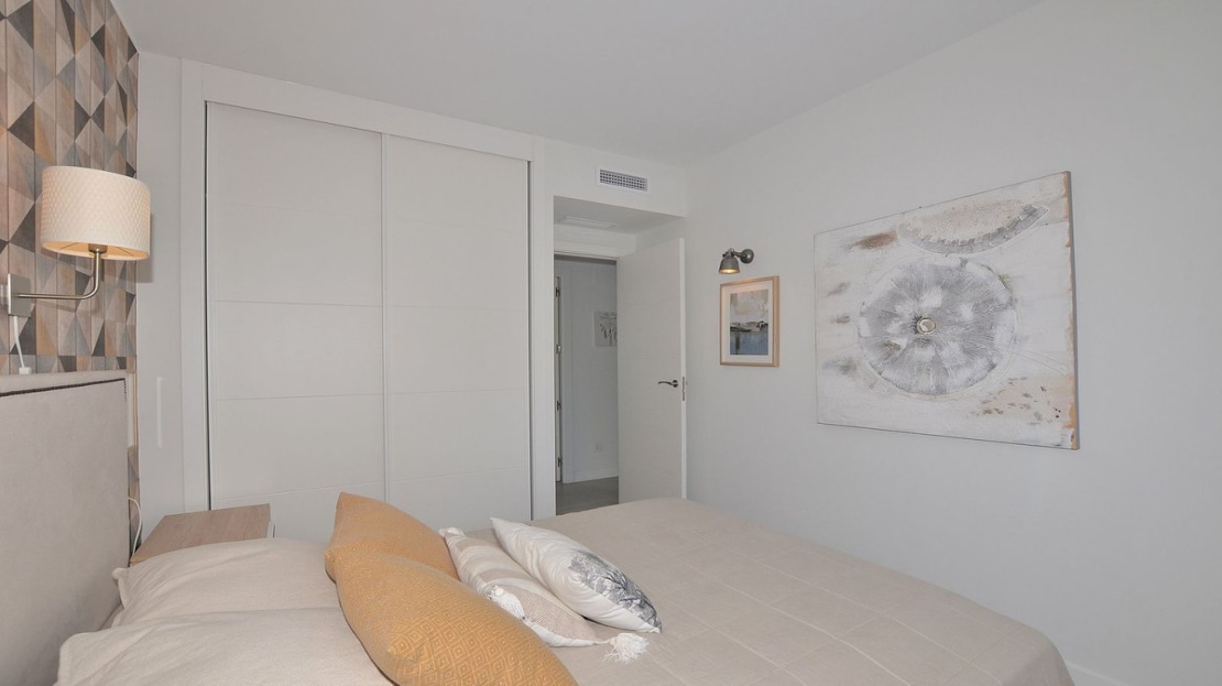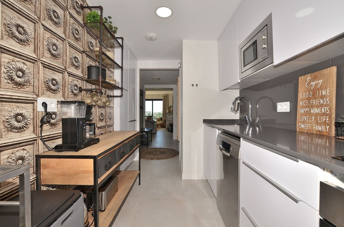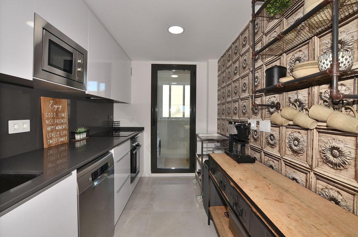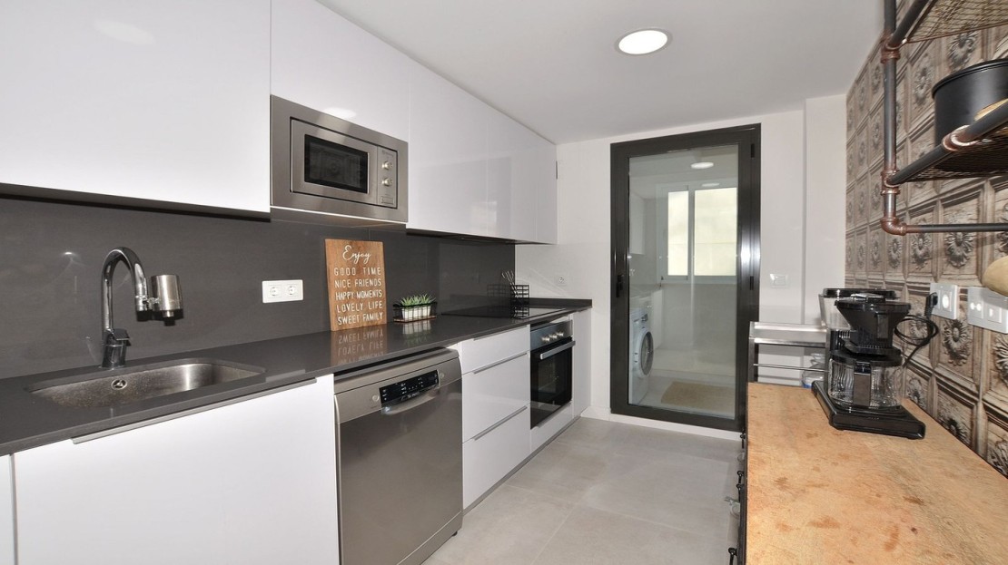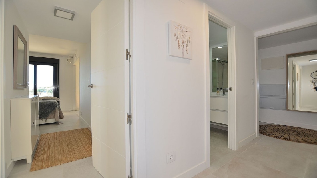 Hall, living room with access to terrace. Back to the hall, kitchen with laundry room, corridor, 3rd bedroom, bathroom, 2nd bedroom and master bedroom with en-suite bathroom. From the master bedroom there is direct access to the terrace.