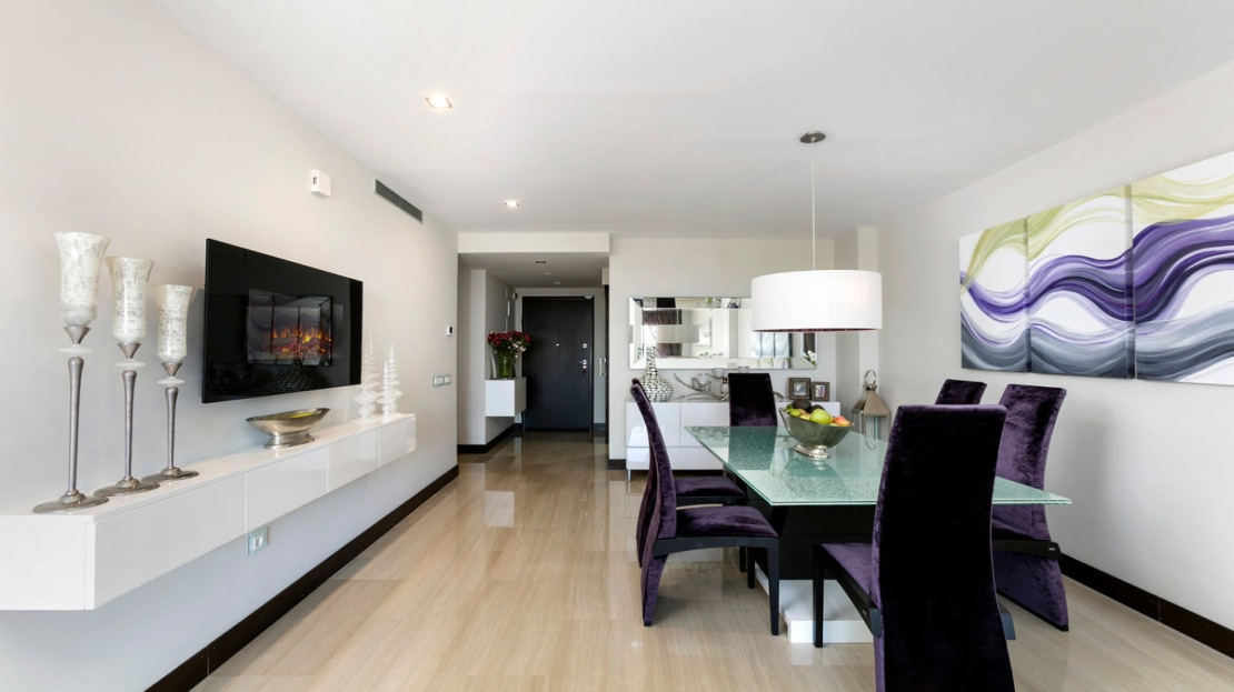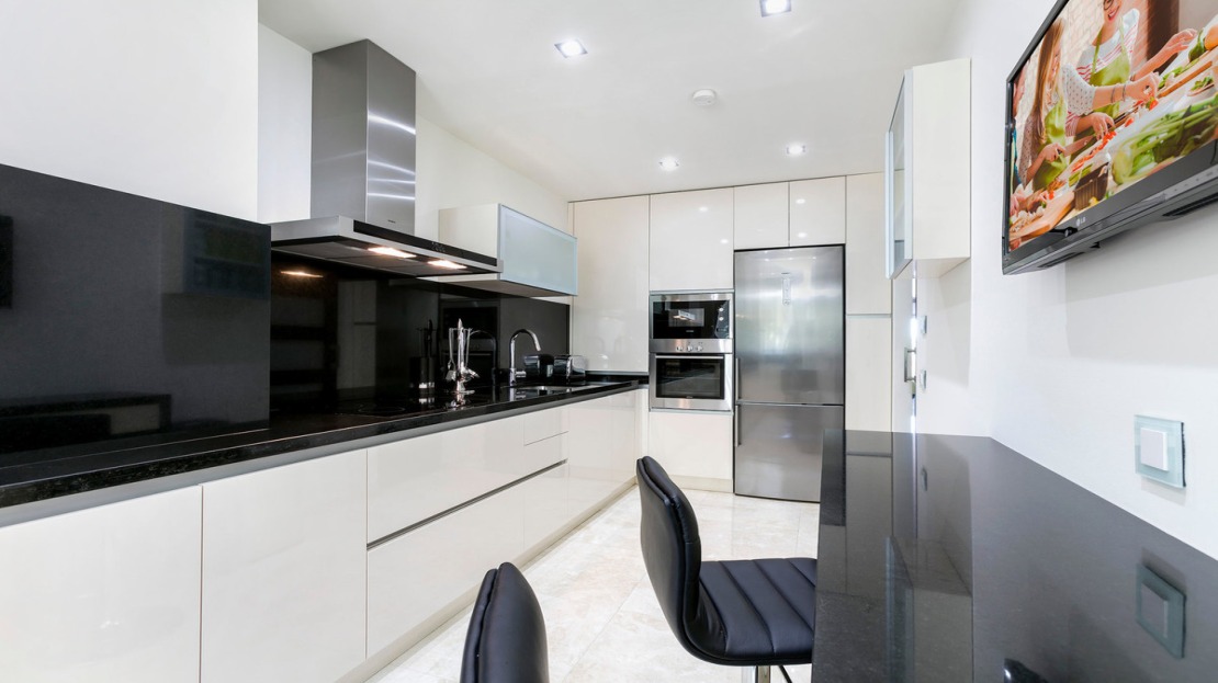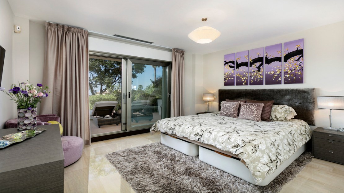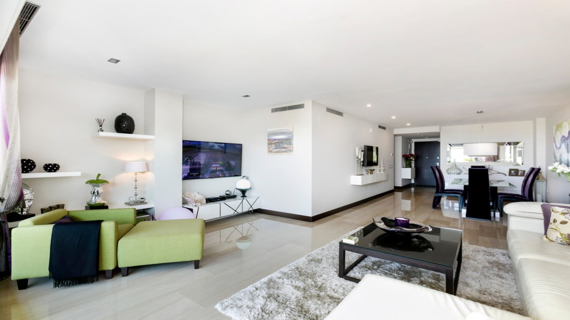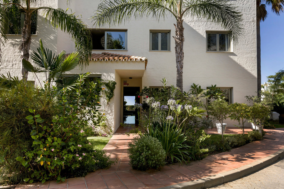 Luxurious three bedroom, south facing corner apartment in the sought after complex La Azalia, in Benahavis with stunning sea and golf views. The community has 24hr security, beautifully maintained gardens and two swimming pools; as well as being just a five minute drive to San Pedro Town and a short walk to the small village of La Heredia. The apartment has an open plan living and dining area with French doors leading out to the private sunny terrace; fully fitted kitchen with breakfast area; master suite with a walk-in wardrobe and direct access to the terrace; a guest suite; and guest bedroom and bathroom. All the bathrooms have recently been upgraded and have under floor heating. Other features include an alarm system, air-conditioning, two underground parkings and a large storage room.