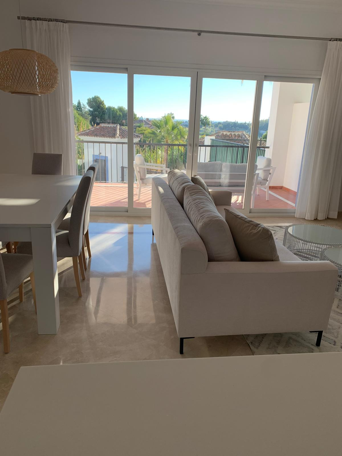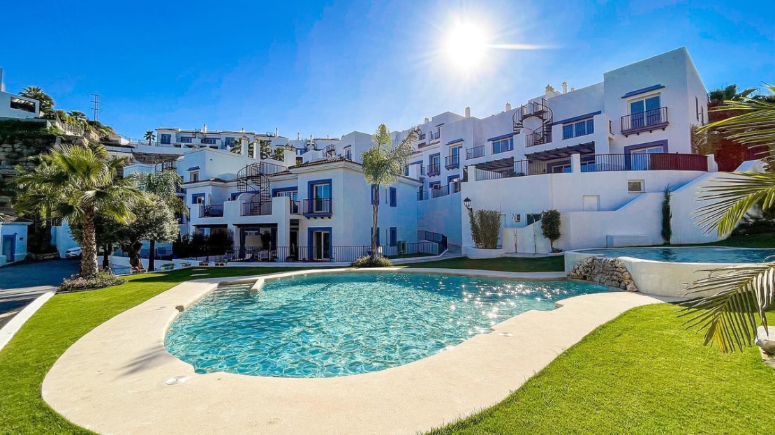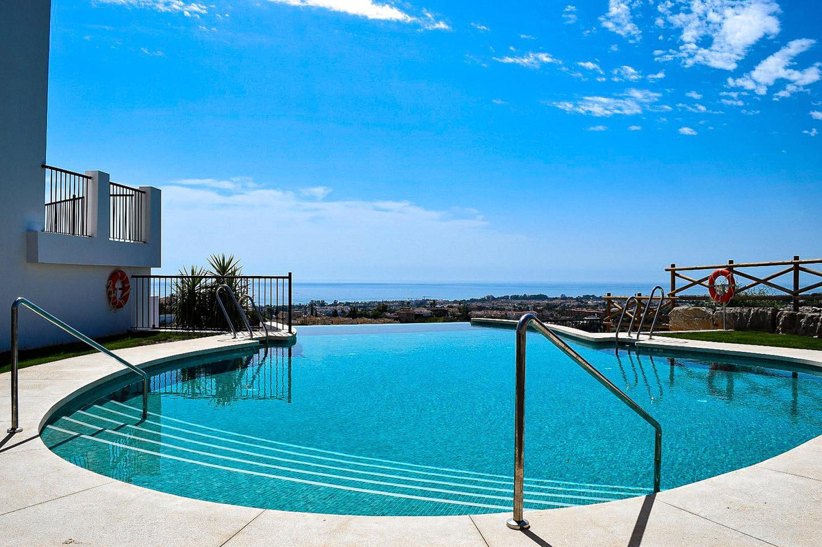 Apartment for sale in , Benahavis with 3 bedrooms, 2 bathrooms, 1 on suite bathroom, 1 toilet and with orientation south/west, with communal swimming pool, private garage and private garden. Regarding property dimensions, it has 109.41 m² built, 19.96 m² plot, 95.47 m² interior and 27.05 m² terrace. Has the following facilities air conditioning, fully fitted kitchen, fireplace, marble floors, jacuzzi, sauna, guest room, storage room, gym, solarium, security entrance, double glazing, barbeque, security service 24h, telephone, private terrace, living room, sea view, mountain view, golf view, indoor pool, heated pool, automatic irrigation system, internet – wi-fi, covered terrace, 24h service, fitted wardrobes, gated community, panoramic view, doorman, unfurnished, close to children playground, close to sea / beach, close to golf, uncovered terrace, games room, glass doors, balcony, spa, turkish bath, recently renovated / refurbished, saltwater swimming pool, close to schools, surveillance cameras, inside golf resort and pets allowed.